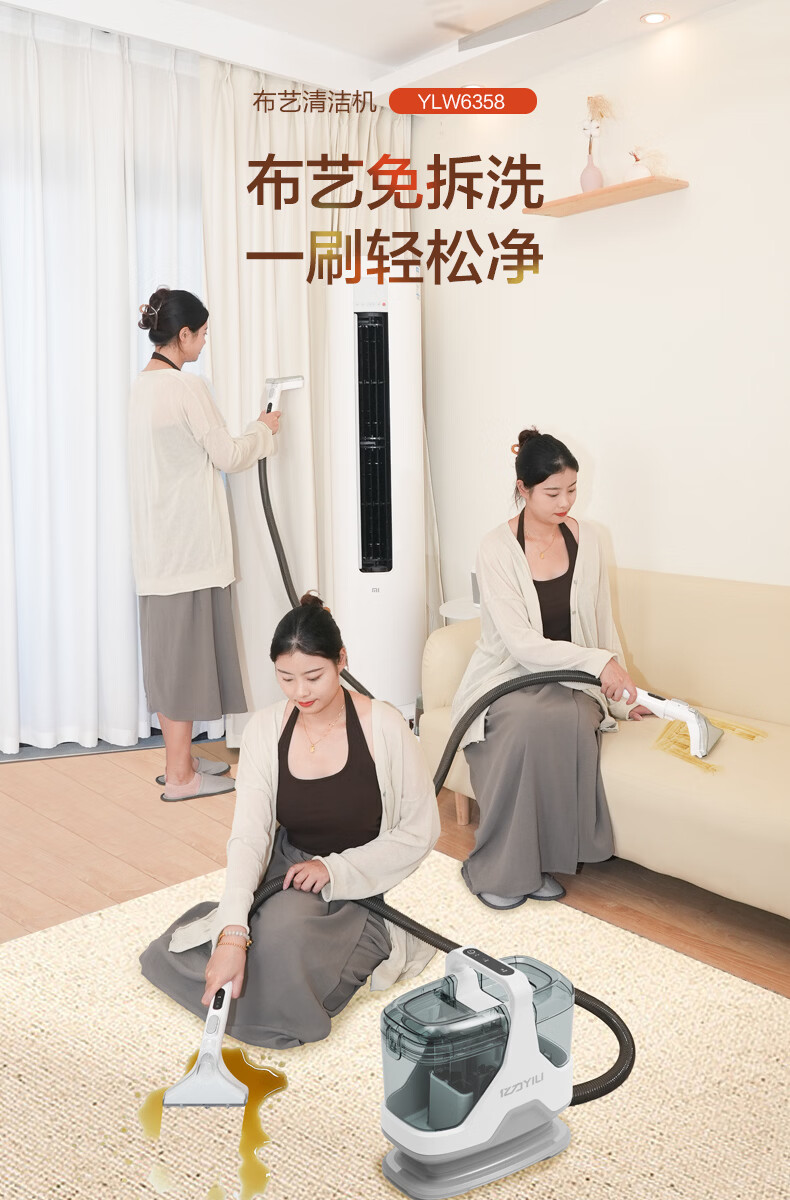 Yili multifunctional fabric cleaning machine washes curtains, sofas, carpets, mattresses, blankets, curtains, pet vacuum cleaners, washing and suction all-in-one home cleaning household appliances cleaning machine 6358 YLW6358 fabric cleaning machine