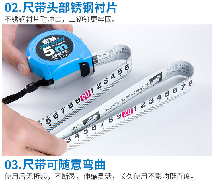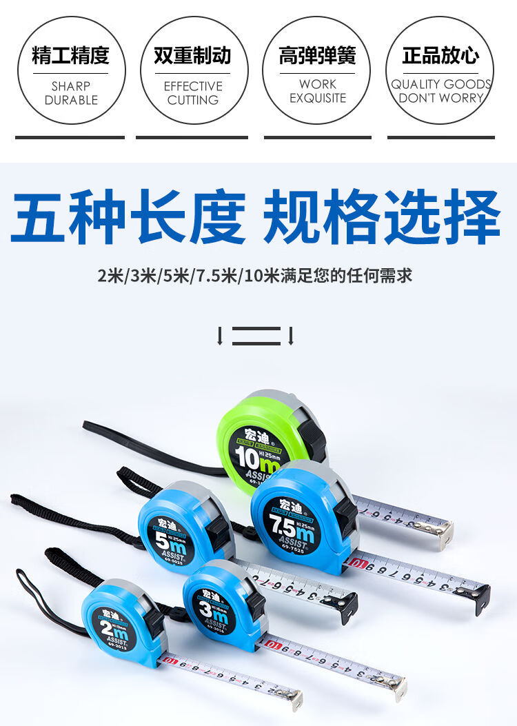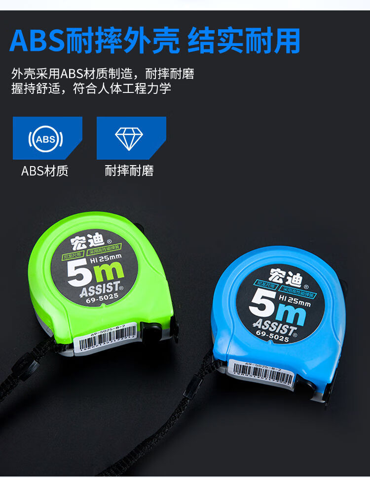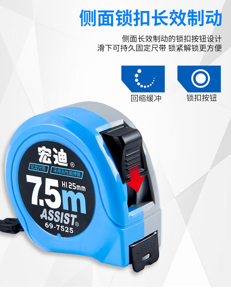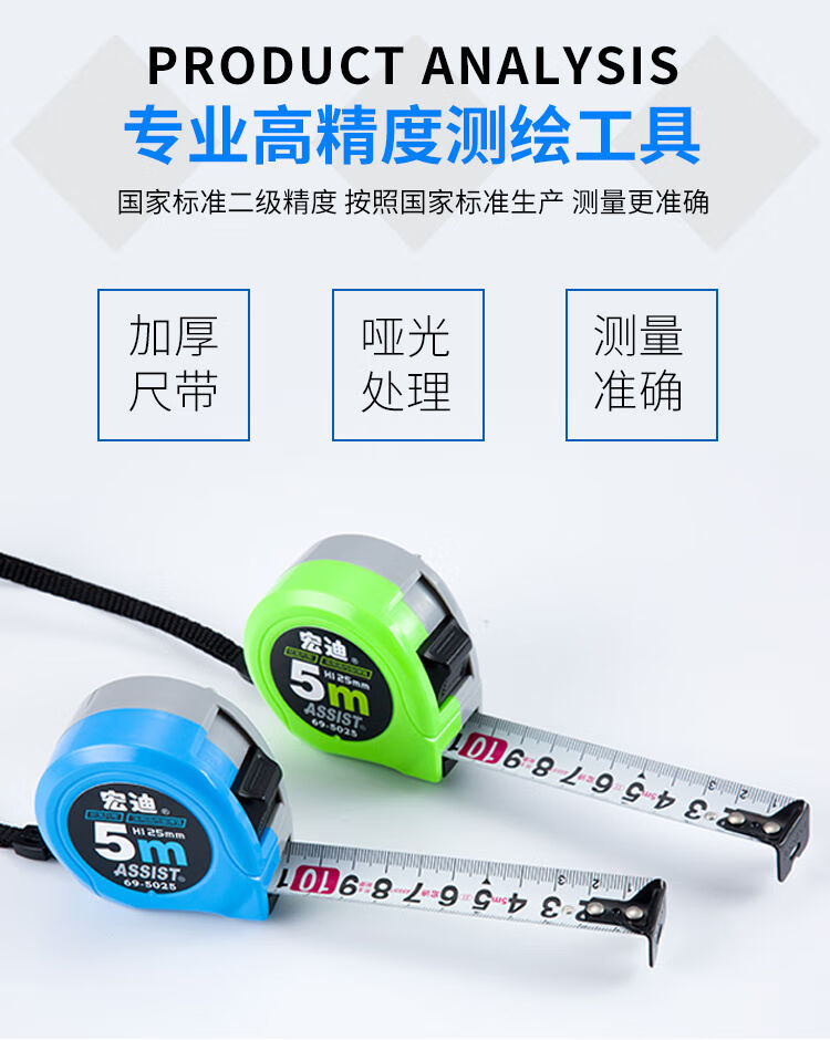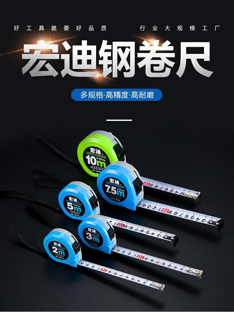 Hongdi 69 model tape measure nylon thickened waterproof and wear-resistant high-precision 5m/7.5m anti-fall woodworking measuring tape 69 model 7.5m 25 wide 1 pack (blue and green randomly sent)