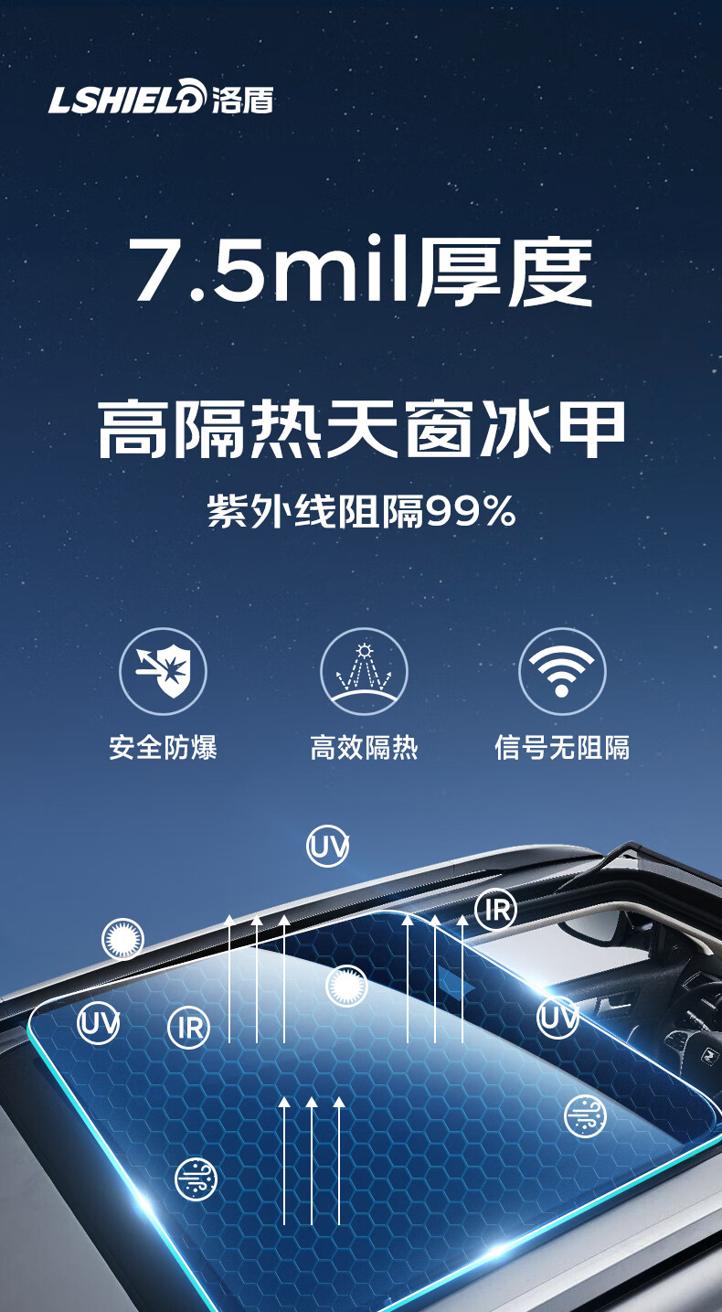 Luodun TPU sunroof ice armor film panoramic sunroof roof insulation sun protection explosion-proof car glass film protective film skylight sunroof TPU sunroof ice armor