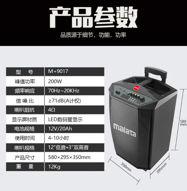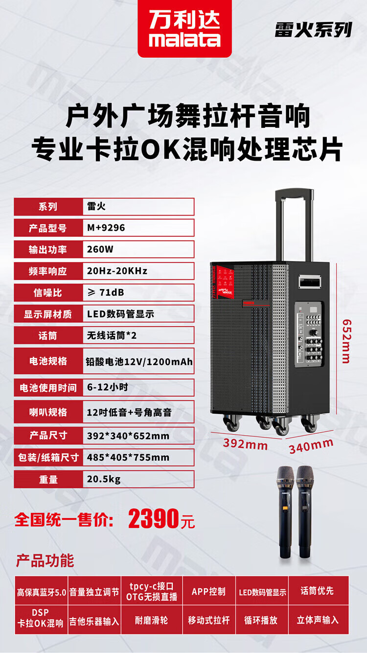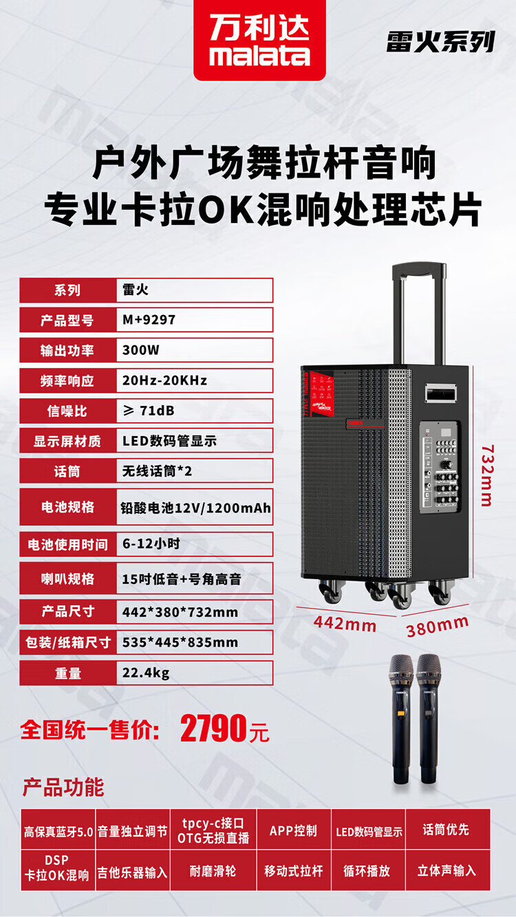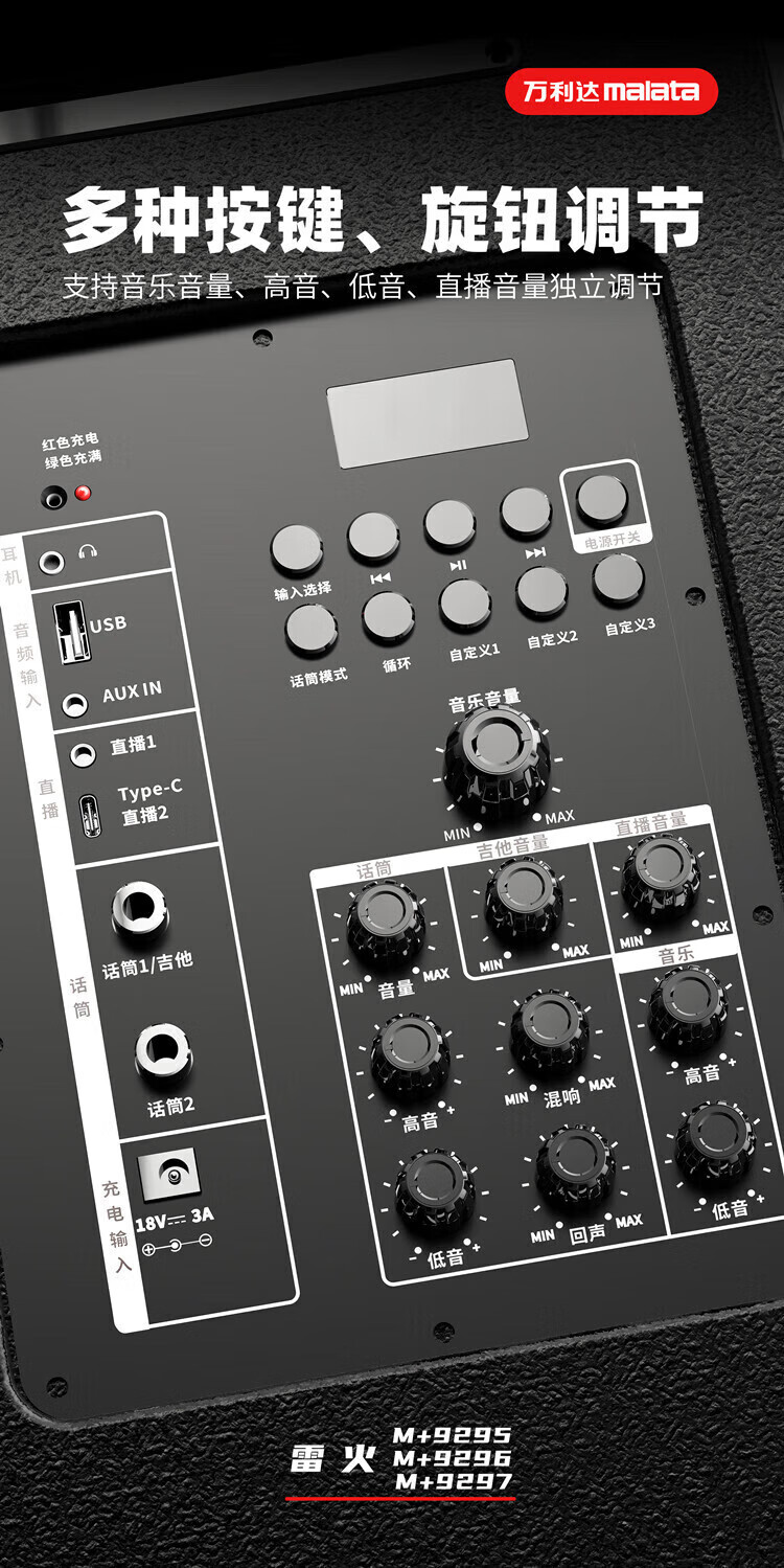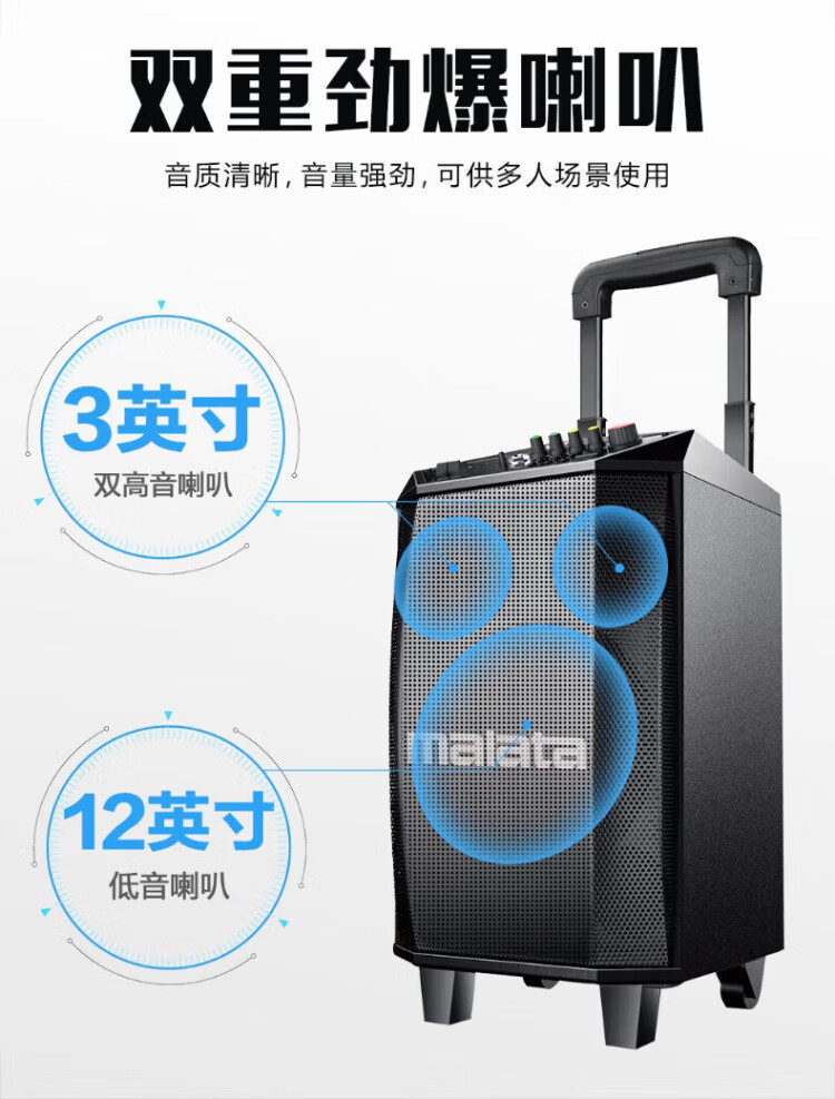 Malida Square Dance Audio 2025 New Wooden Bluetooth Speaker Home Karaoke TV Projector Outdoor Karaoke Trolley Subwoofer Guitar Store Street Stall Amplifier 15-inch Juding New M+9052E+2 Microphones+U