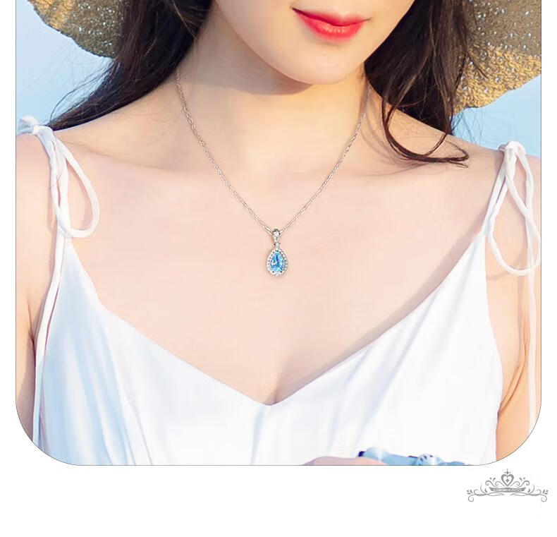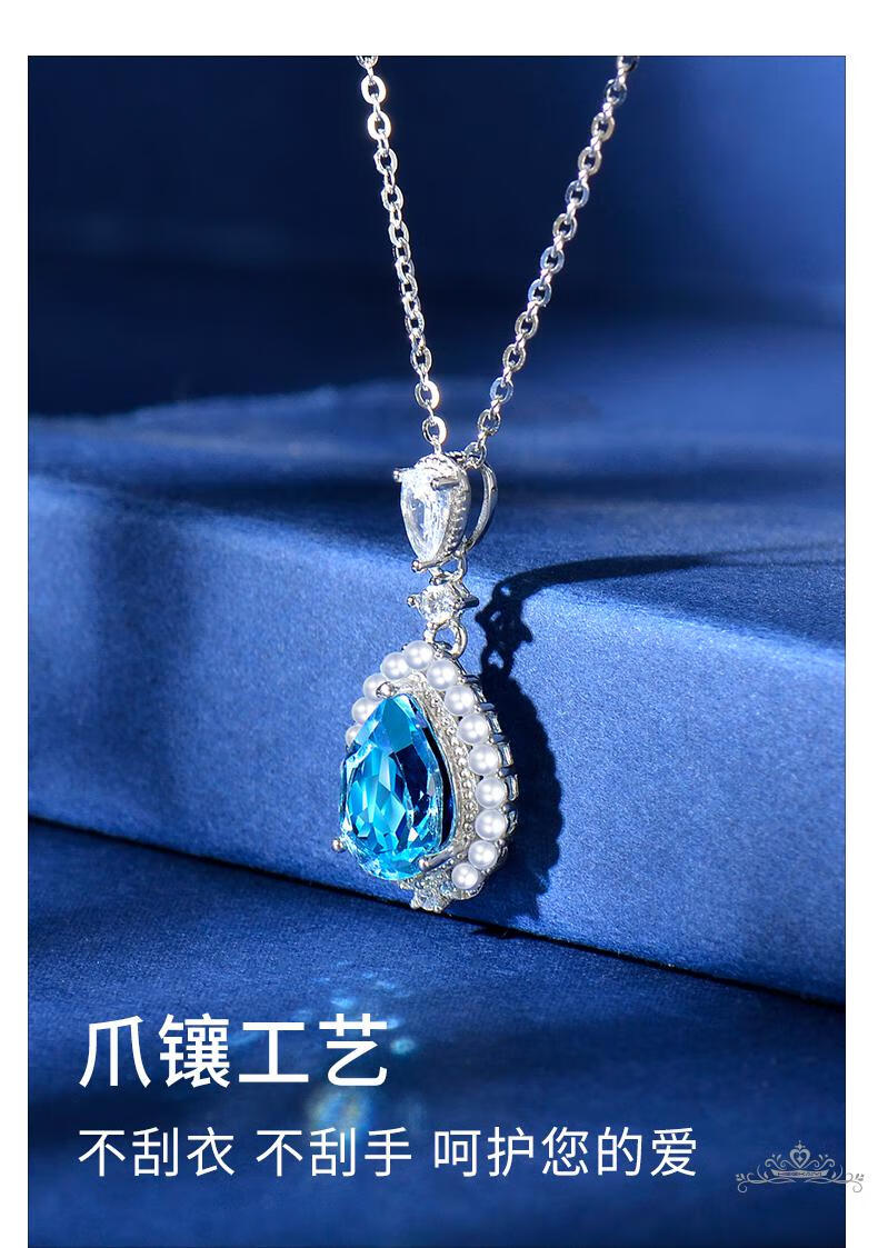 Haikai necklace women's topaz pendant gemstone necklace luxury jewelry Chinese Valentine's Day birthday gift for the elderly Swiss blue topaz necklace one thing one certificate