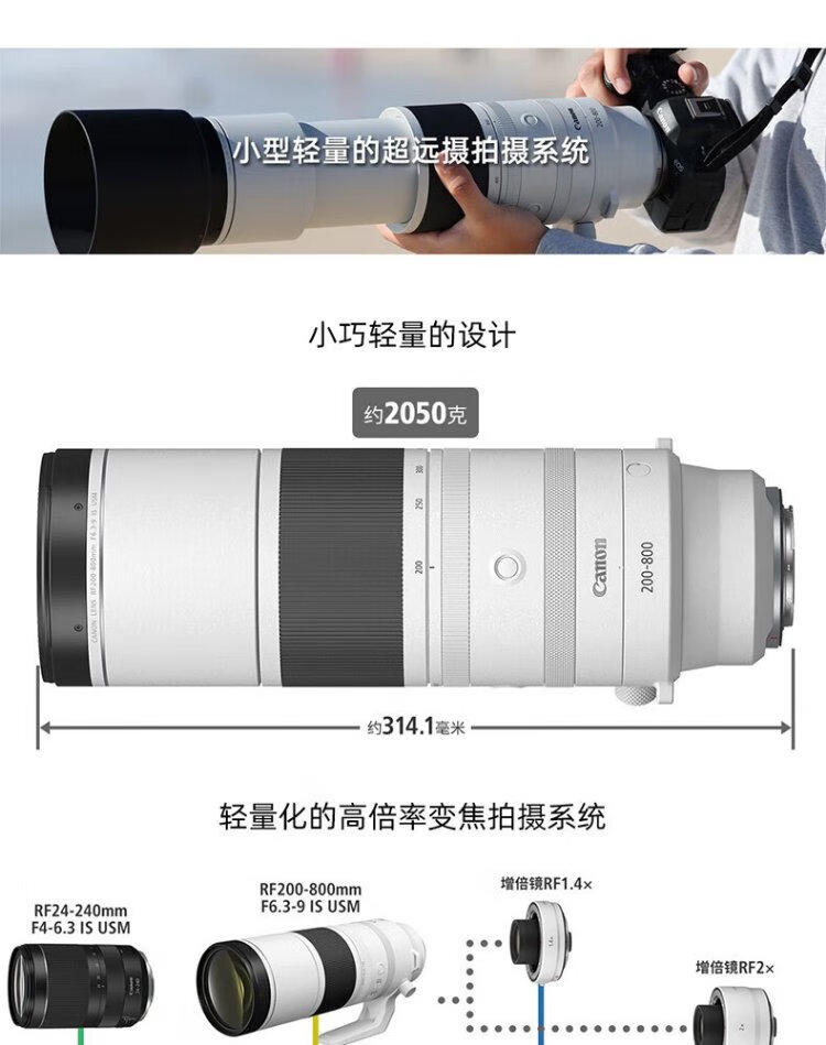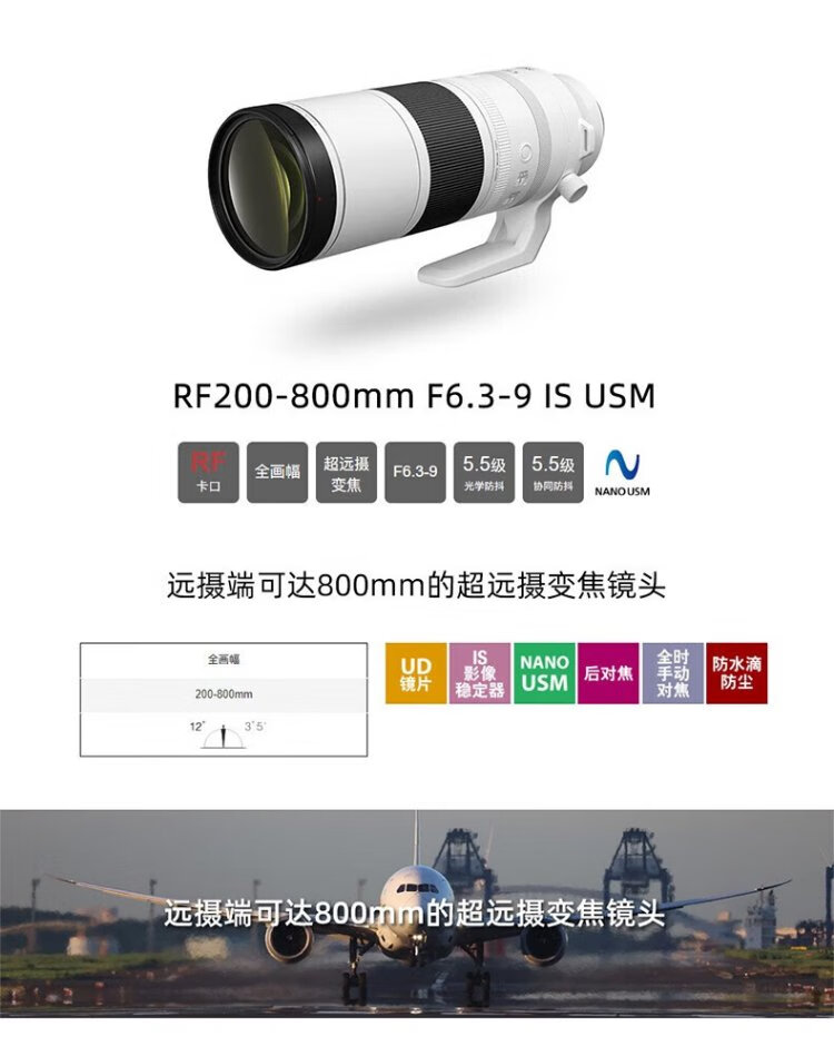 Canon RF200-800mm F6.3-9 IS USM mirrorless full-frame super telephoto zoom lens RF200-800mm F6.3-9 IS USM Official standard configuration One-year nationwide warranty It is recommended to purchase a package