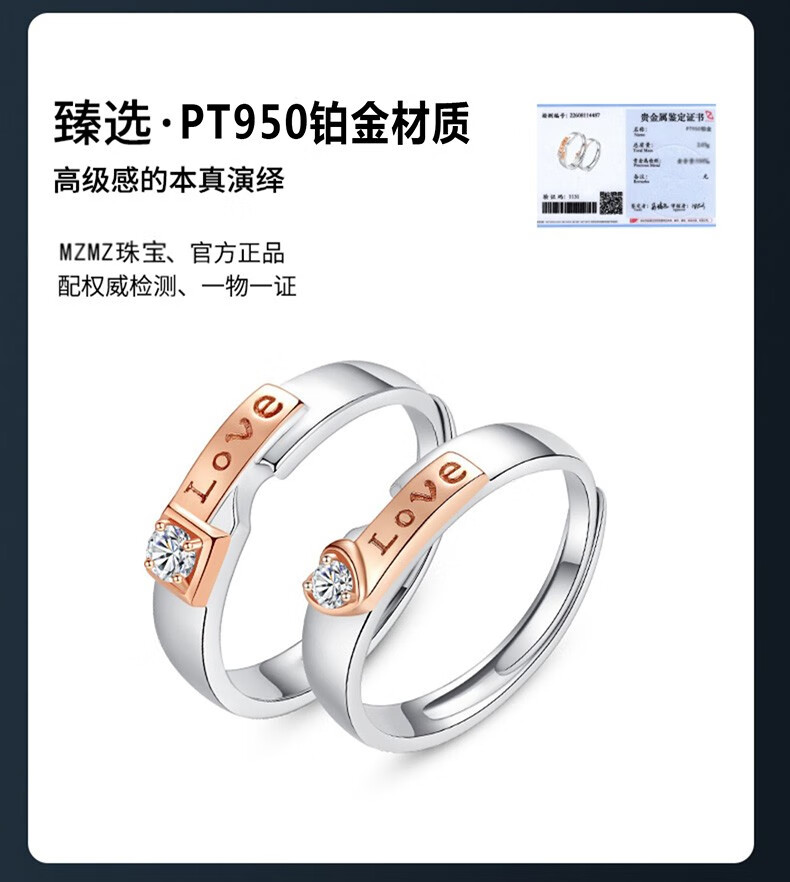 MZMZPT950 platinum ring for a couple, platinum wedding ring, Chinese Valentine's Day gift for girlfriend, light luxury model - eternal love ring - free engraving, exquisite gift box