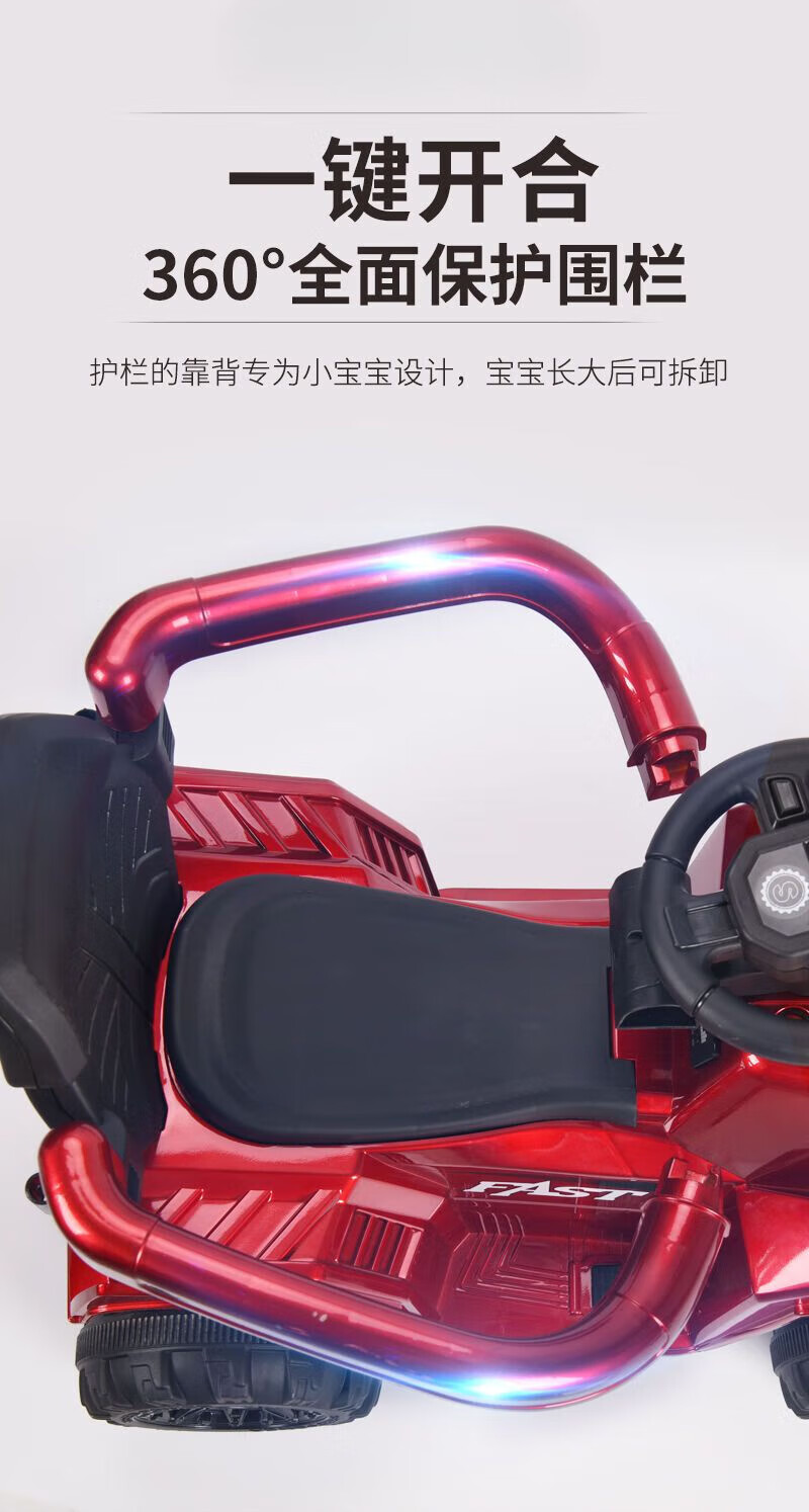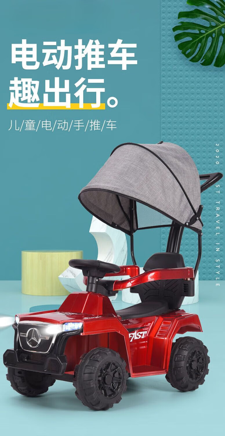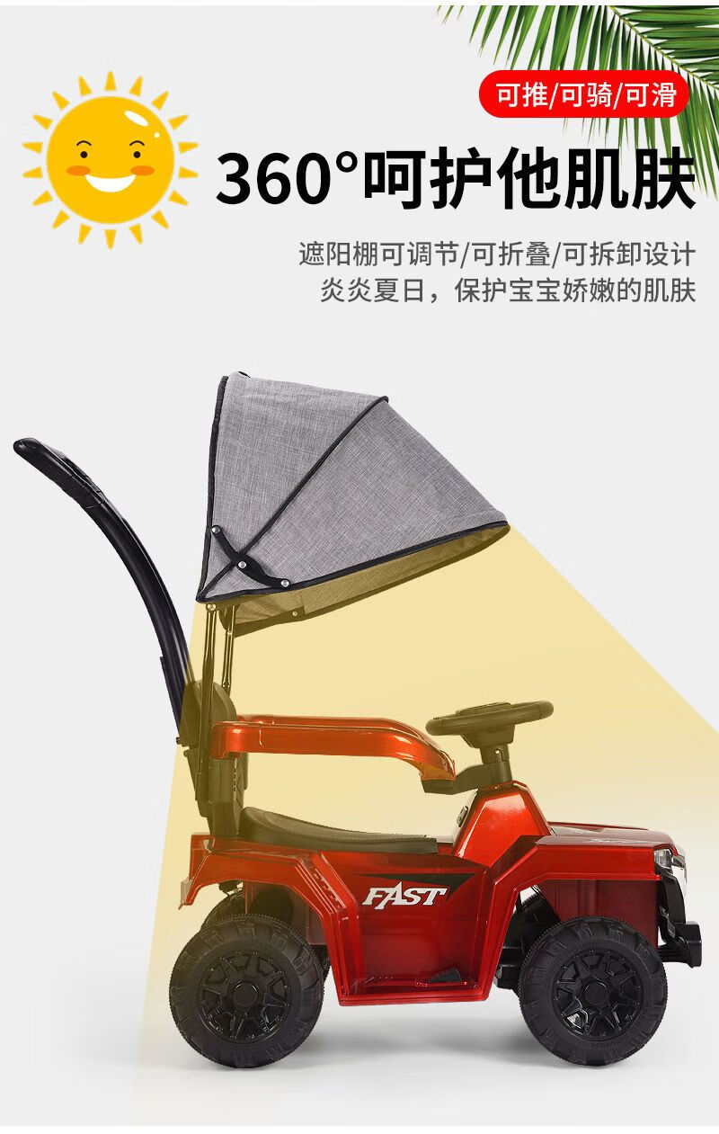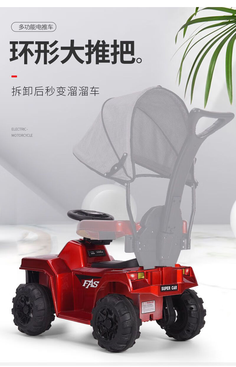 Babypure shine children's electric car four-wheel push car charging remote control off-road vehicle child male and female baby toy car luxury paint red with push rod + remote control