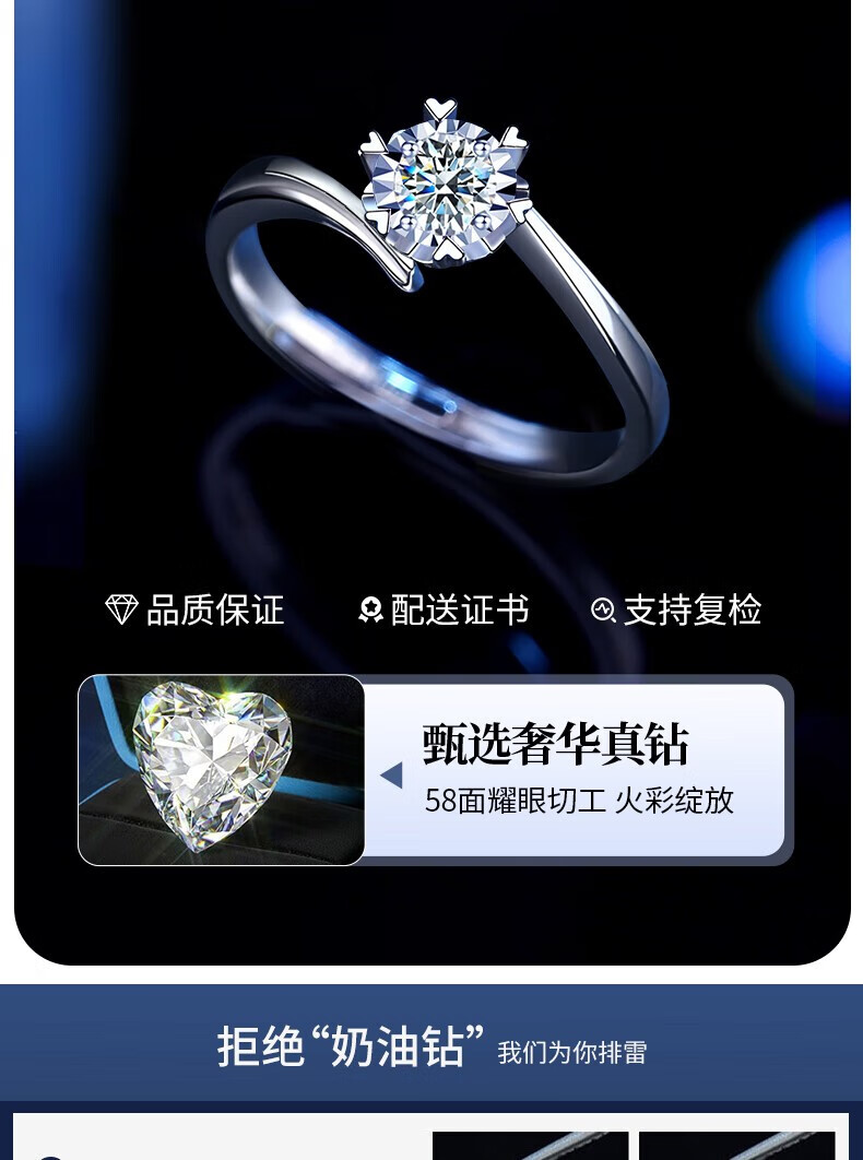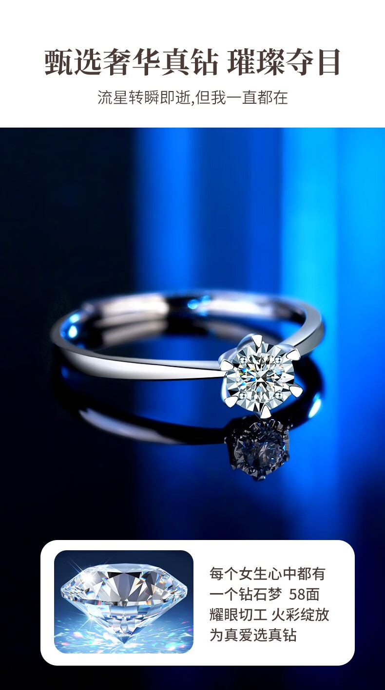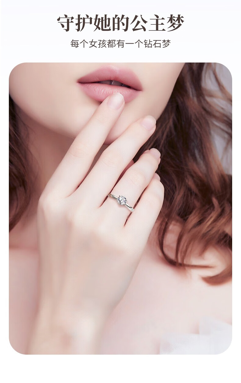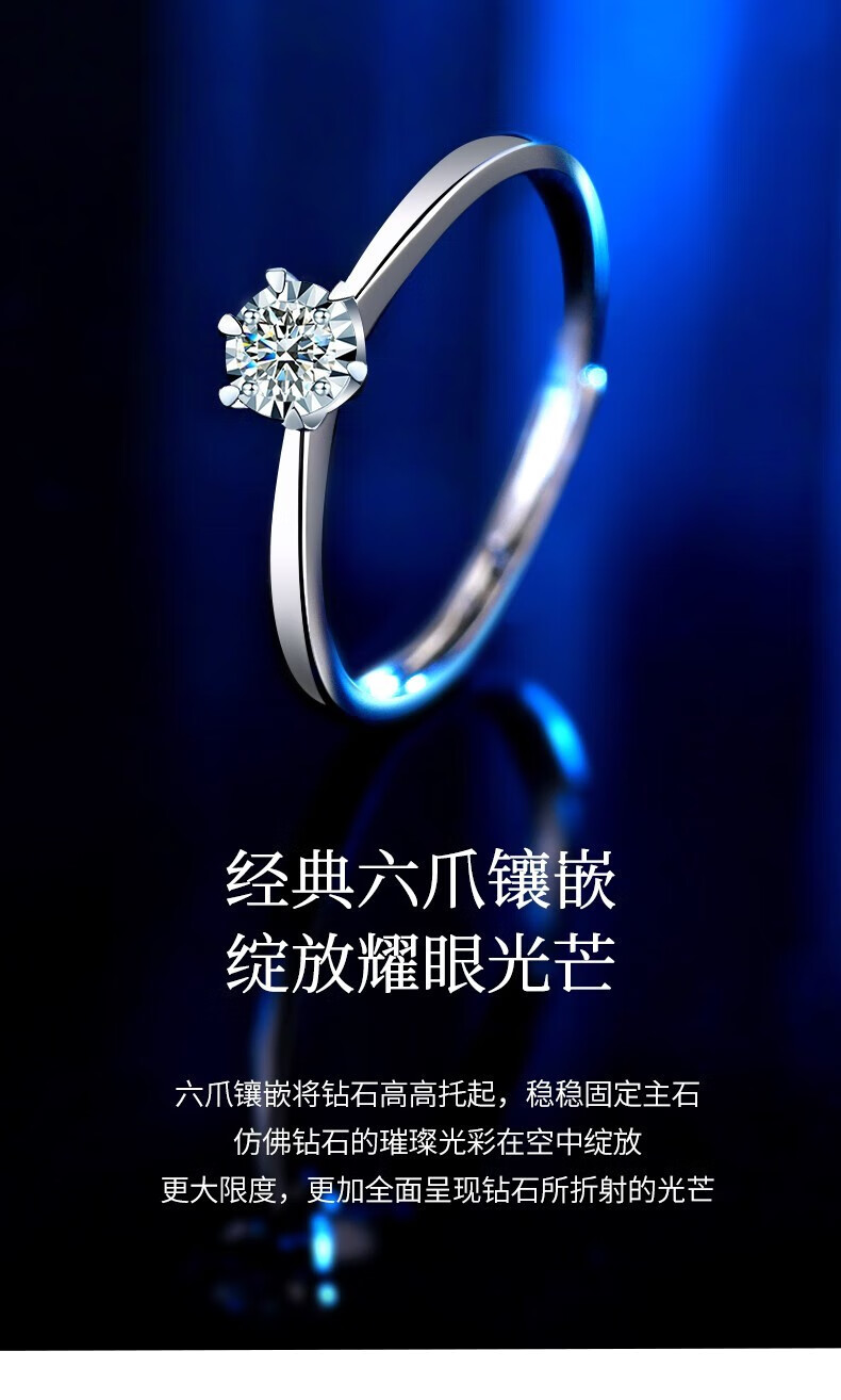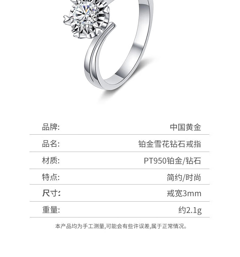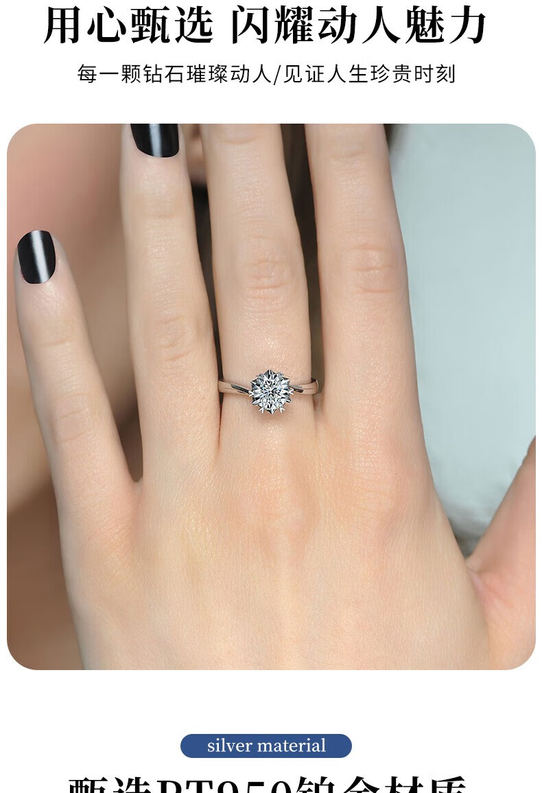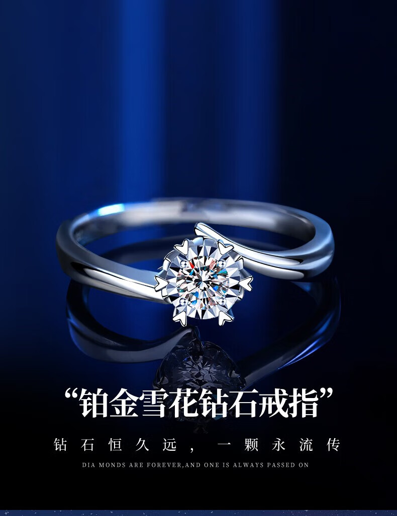 Chinese gold dazzling real diamond inlaid diamond silver ring women's engagement ring jewelry birthday gift for girlfriend and wife's birthday platinum platinum snowflake diamond ring-3 points diamond