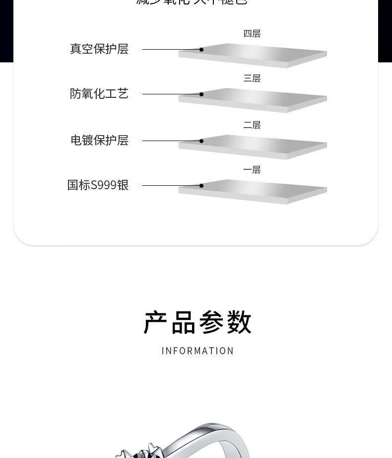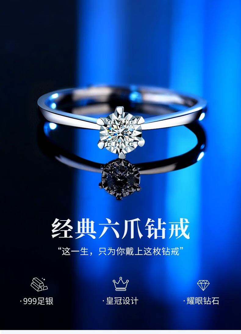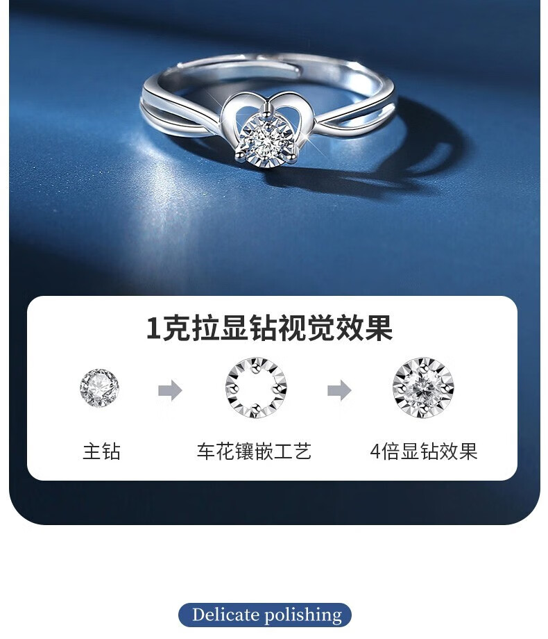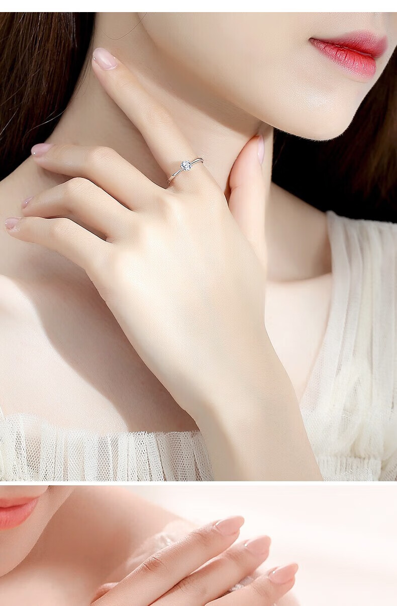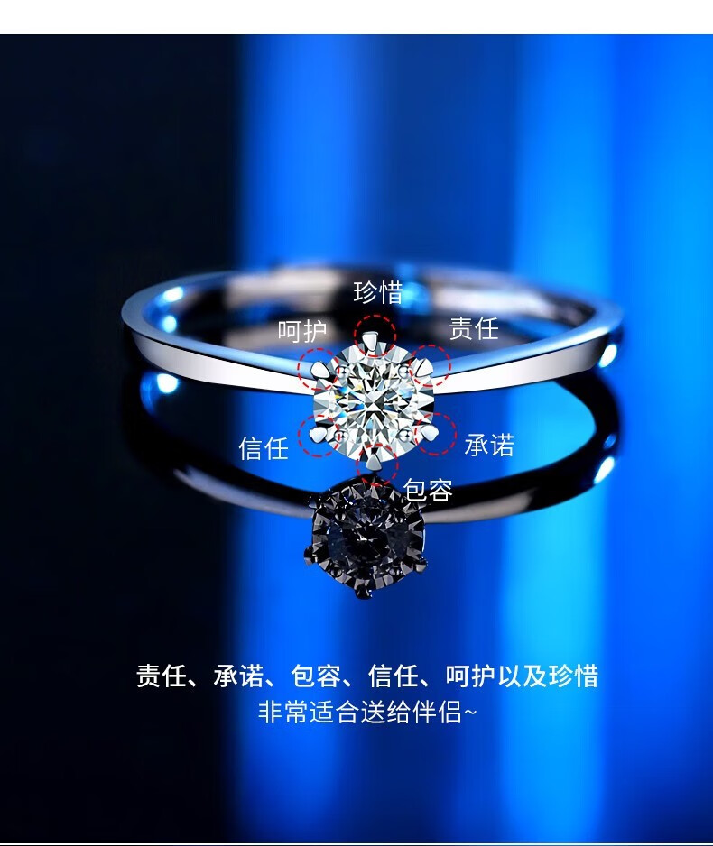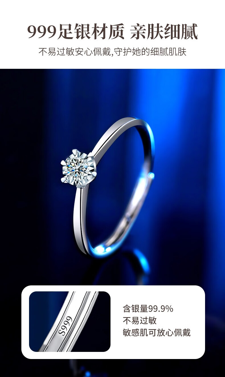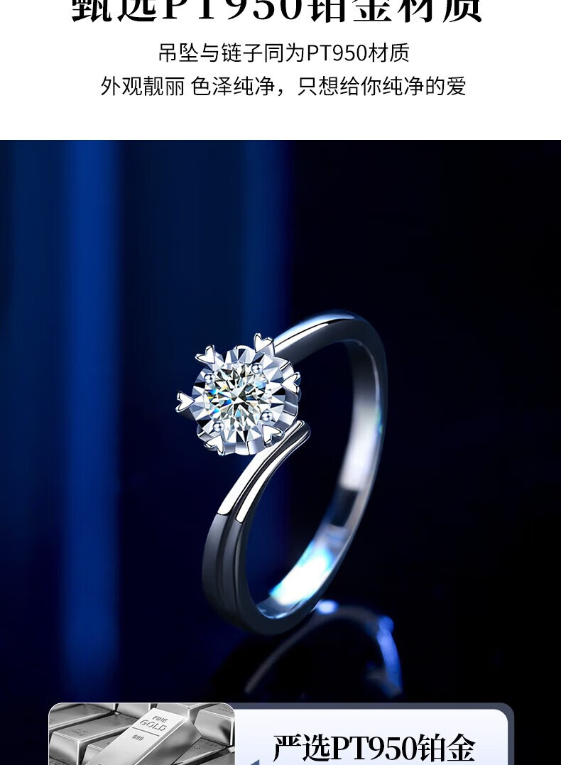 Chinese gold dazzling real diamond inlaid diamond silver ring women's engagement ring jewelry birthday gift for girlfriend and wife's birthday platinum platinum snowflake diamond ring-3 points diamond