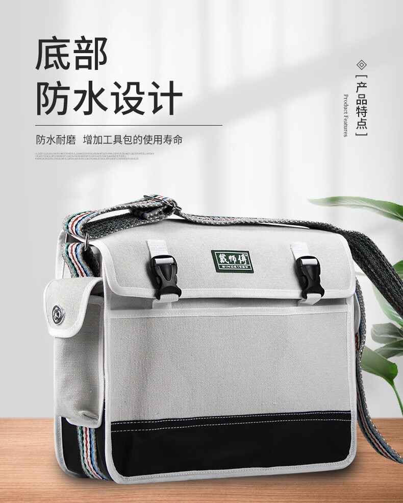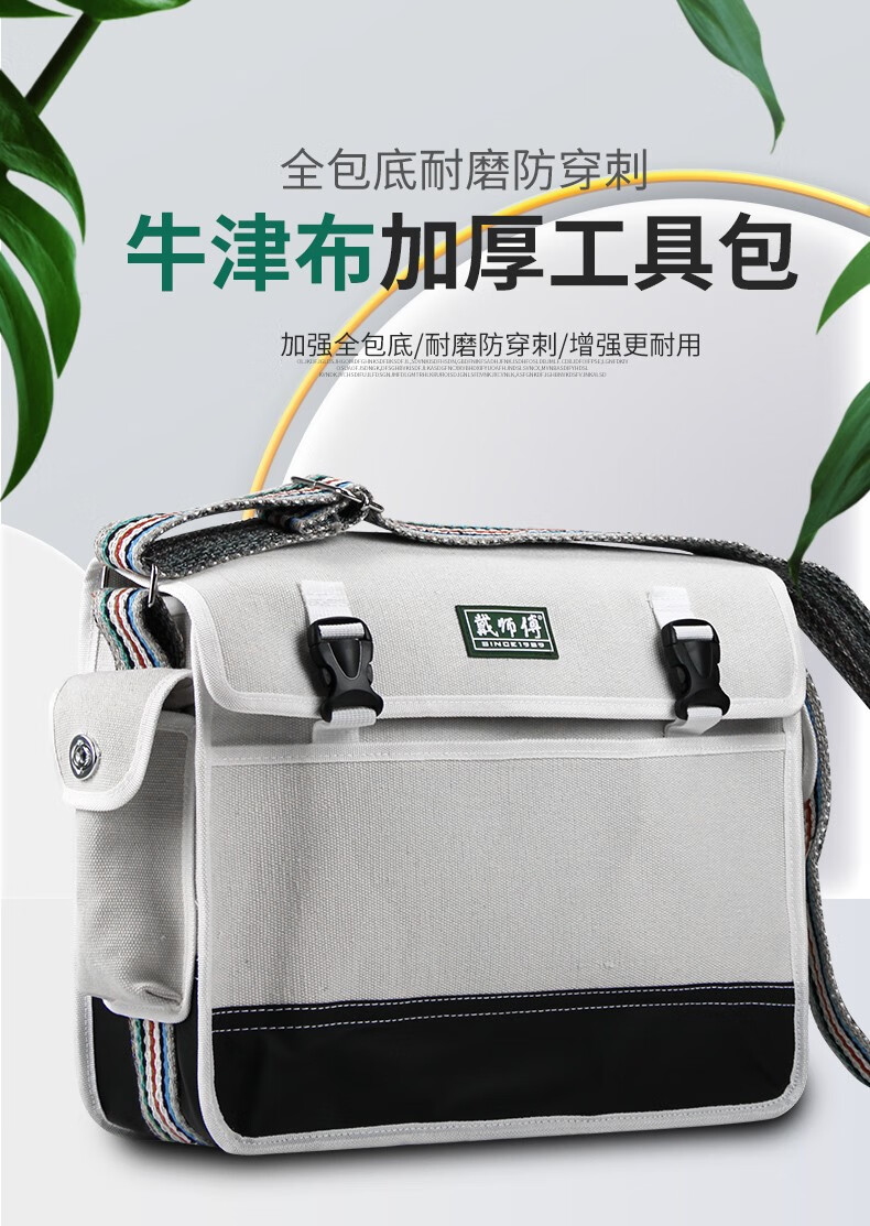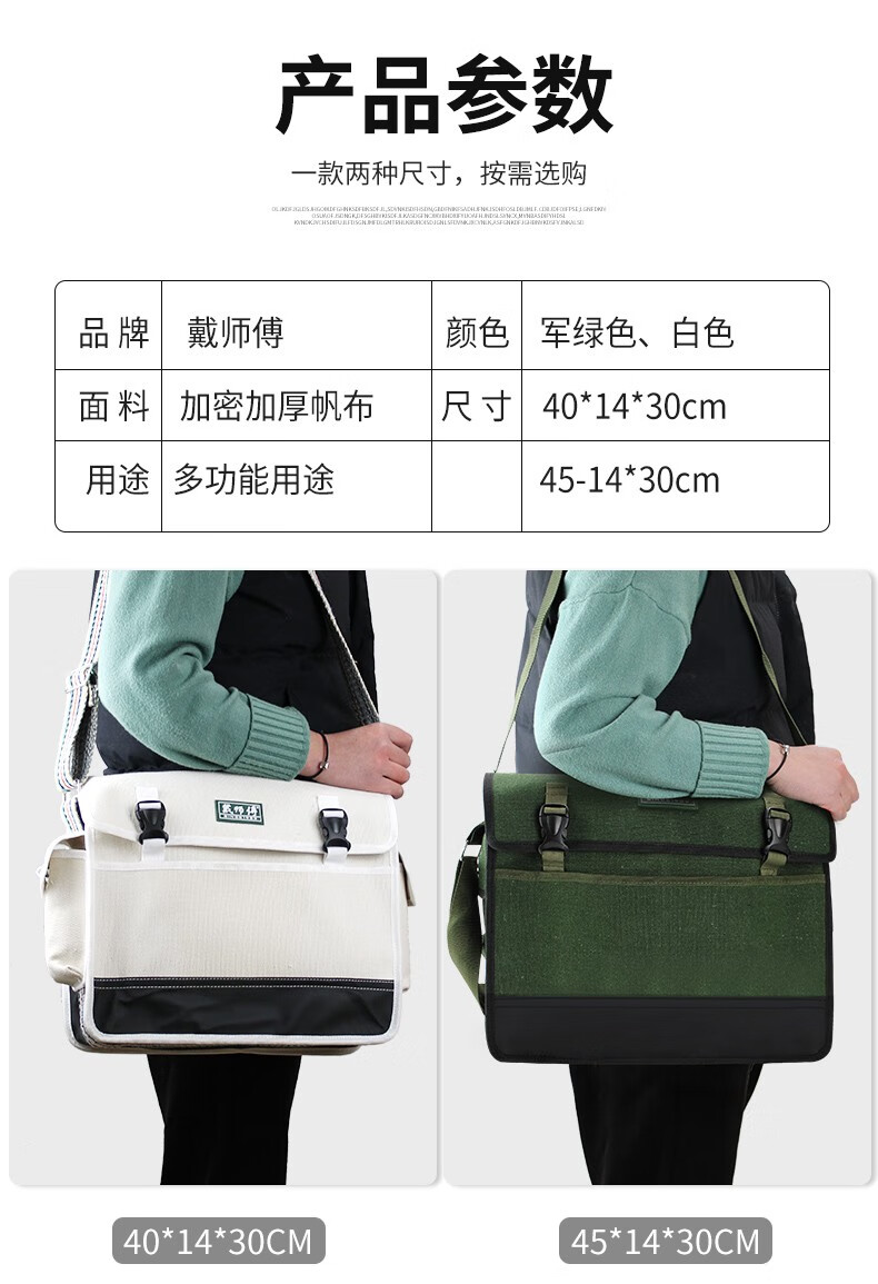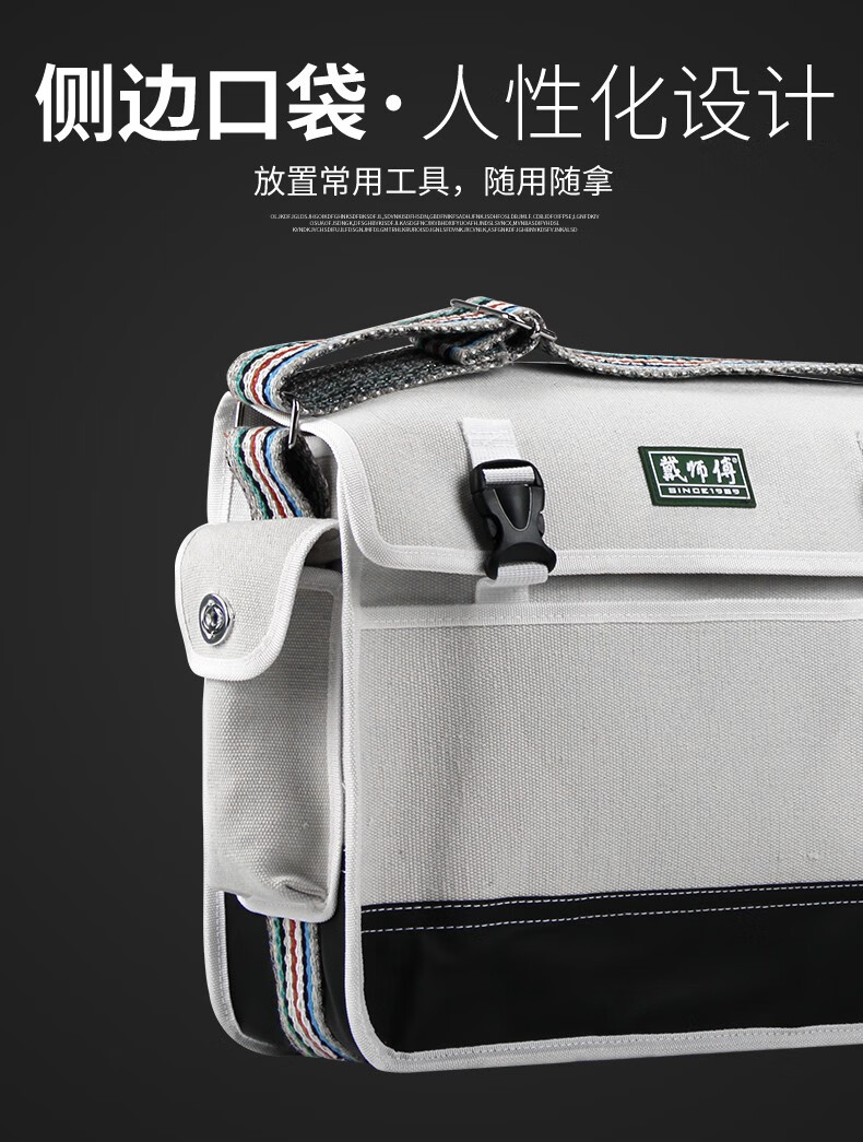 Master Dai Canvas Tool Bag Electrician Tool Storage Bag Large Multifunctional Shoulder Electrician Bag Hardware Tool Bag DSF001-White (40*15*30cm)