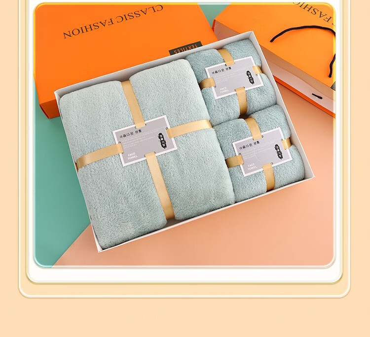 Haojinhui Coral Velvet Towel Gift Box Set Thickened Coral Velvet Bath Towel Three-piece Gift Box Set Company Gift Companion Color Matching Thickened Towel Two Boxes