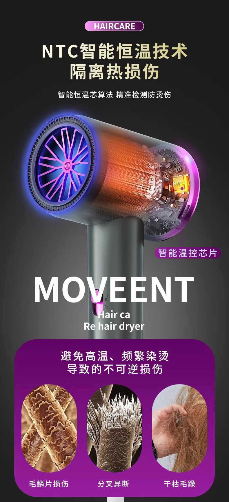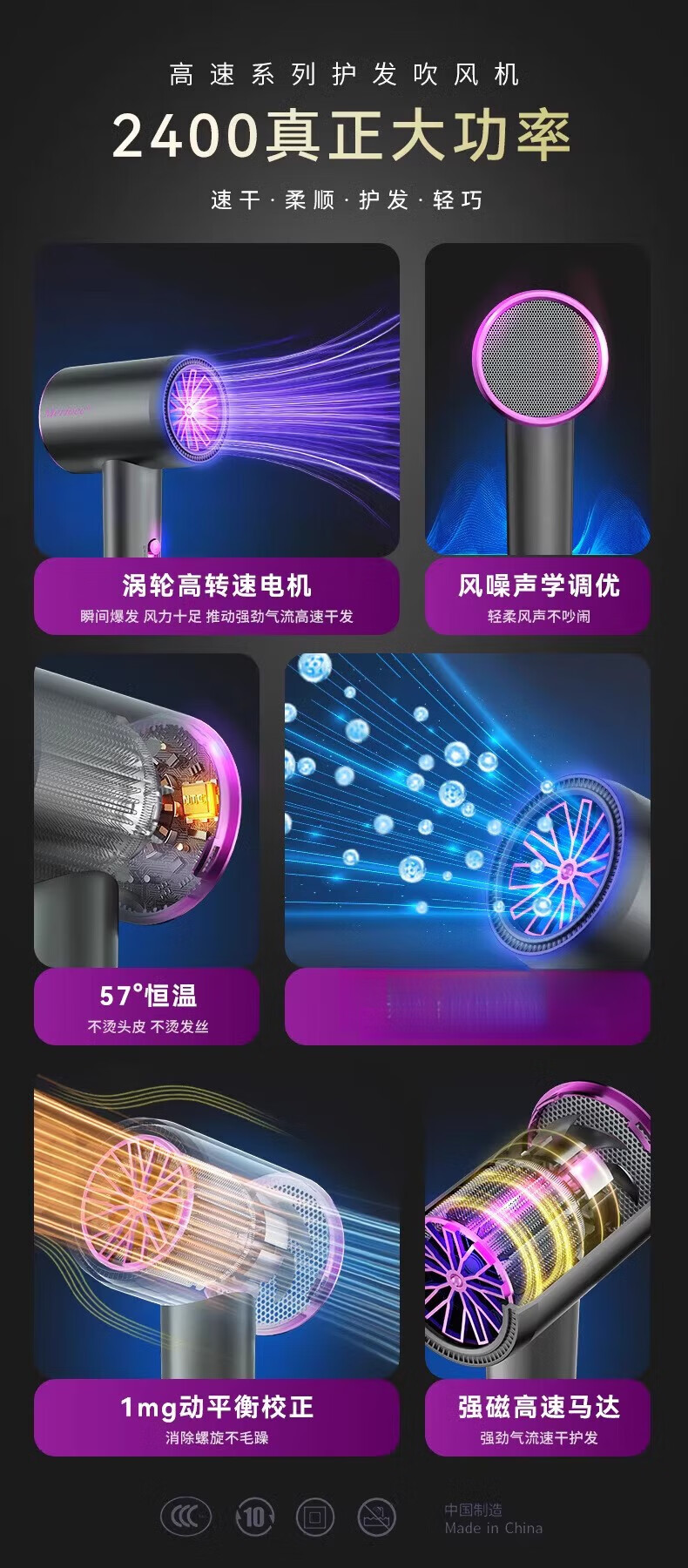 100w+ positive reviews Philips (PHlLlPS) same style hair dryer for home silent negative ion high power does not damage hair high-speed hair dryer barber shop special hair dryer platinum gray-high-speed hair dryer-hairdresser