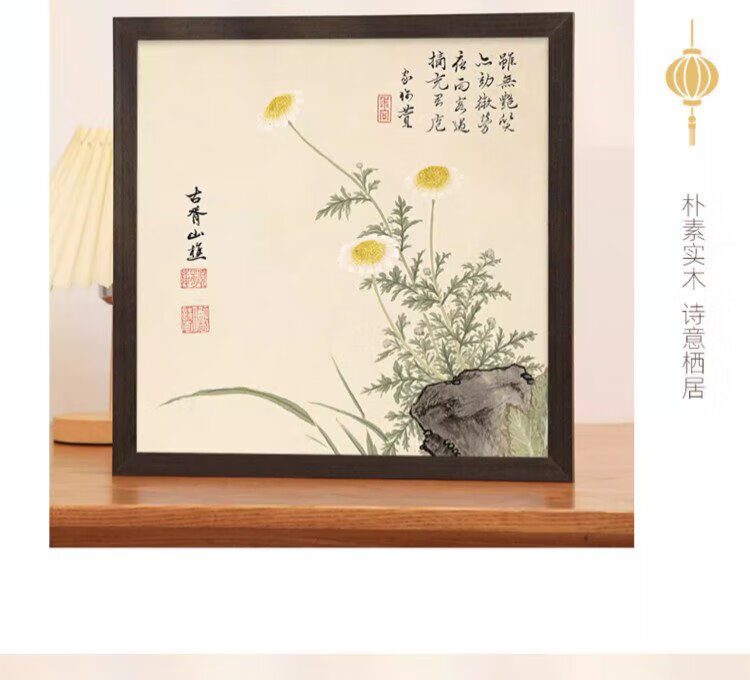 Yimo new Chinese style traditional Chinese painting photo frame frame empty frame wall hanging solid wood square custom table frame wooden oil painting frame solid wood color 30*30cm