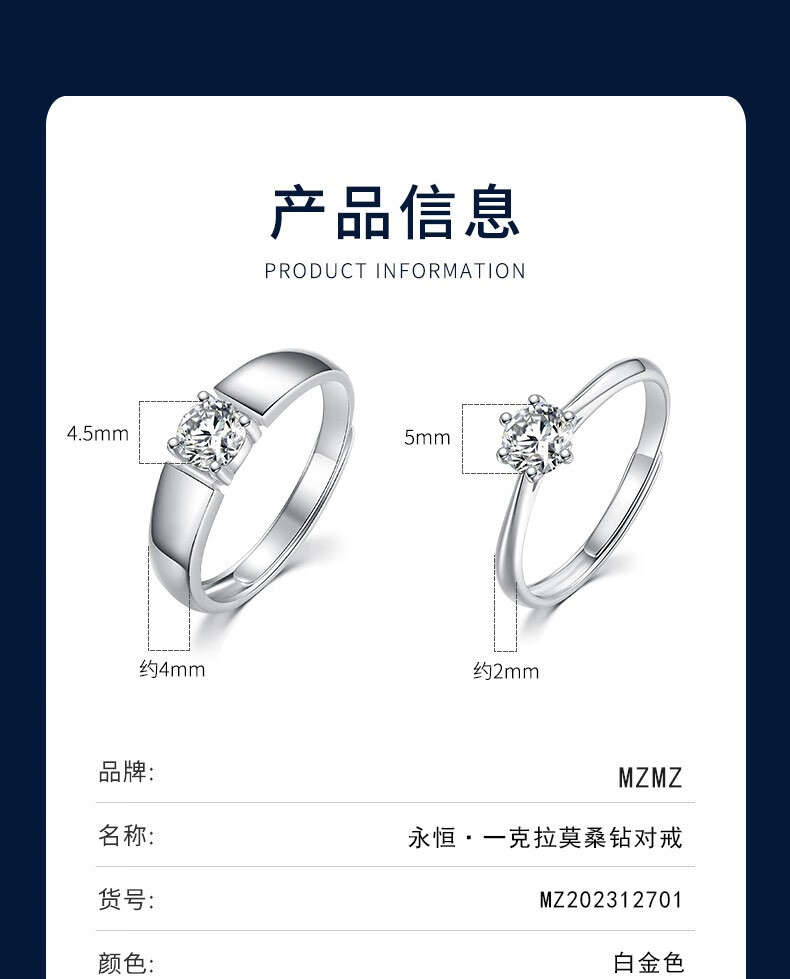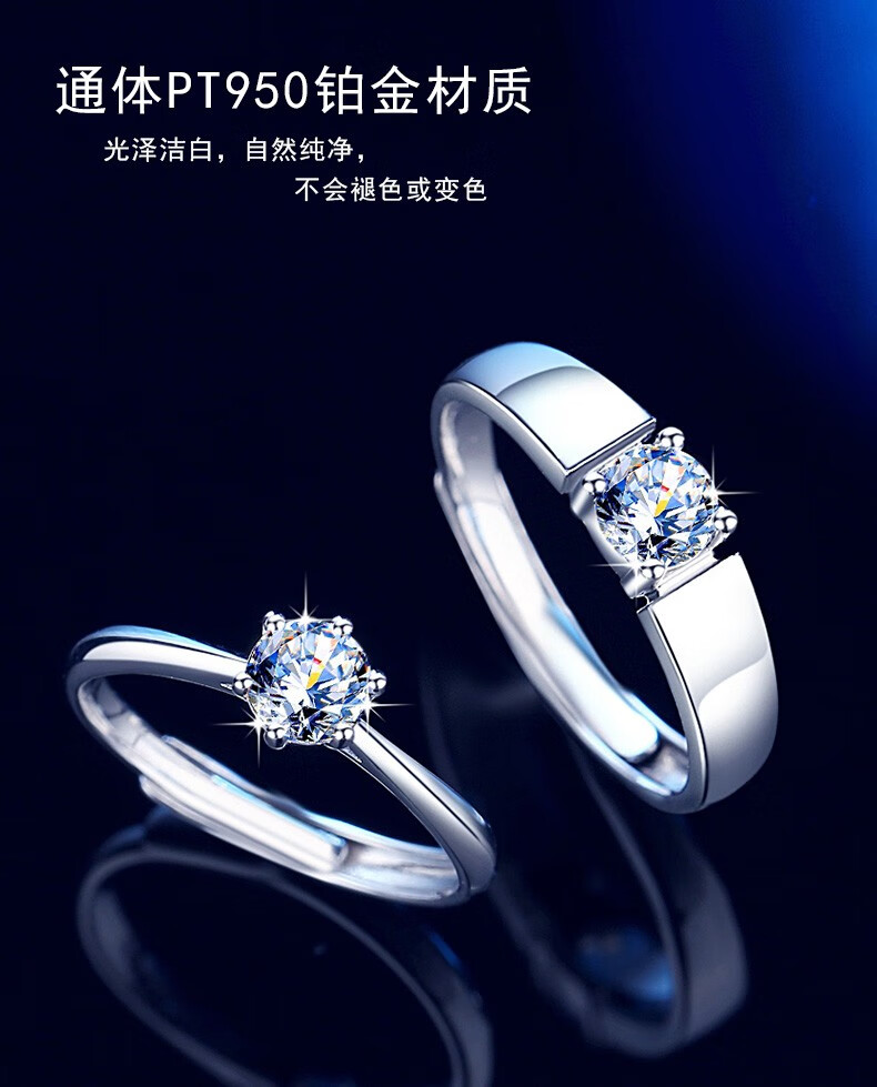 MZMZpt950 platinum one carat moissanite couple ring platinum pair engagement wedding birthday gift for girlfriend light luxury model - one carat moissanite diamond ring (pair) - free engraving exquisite gift box