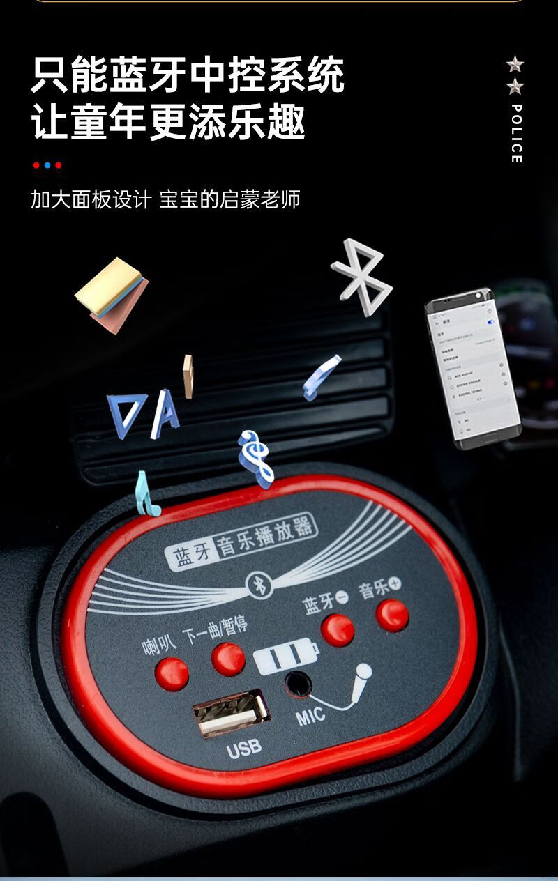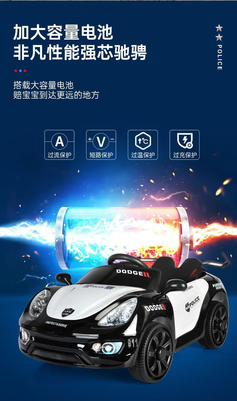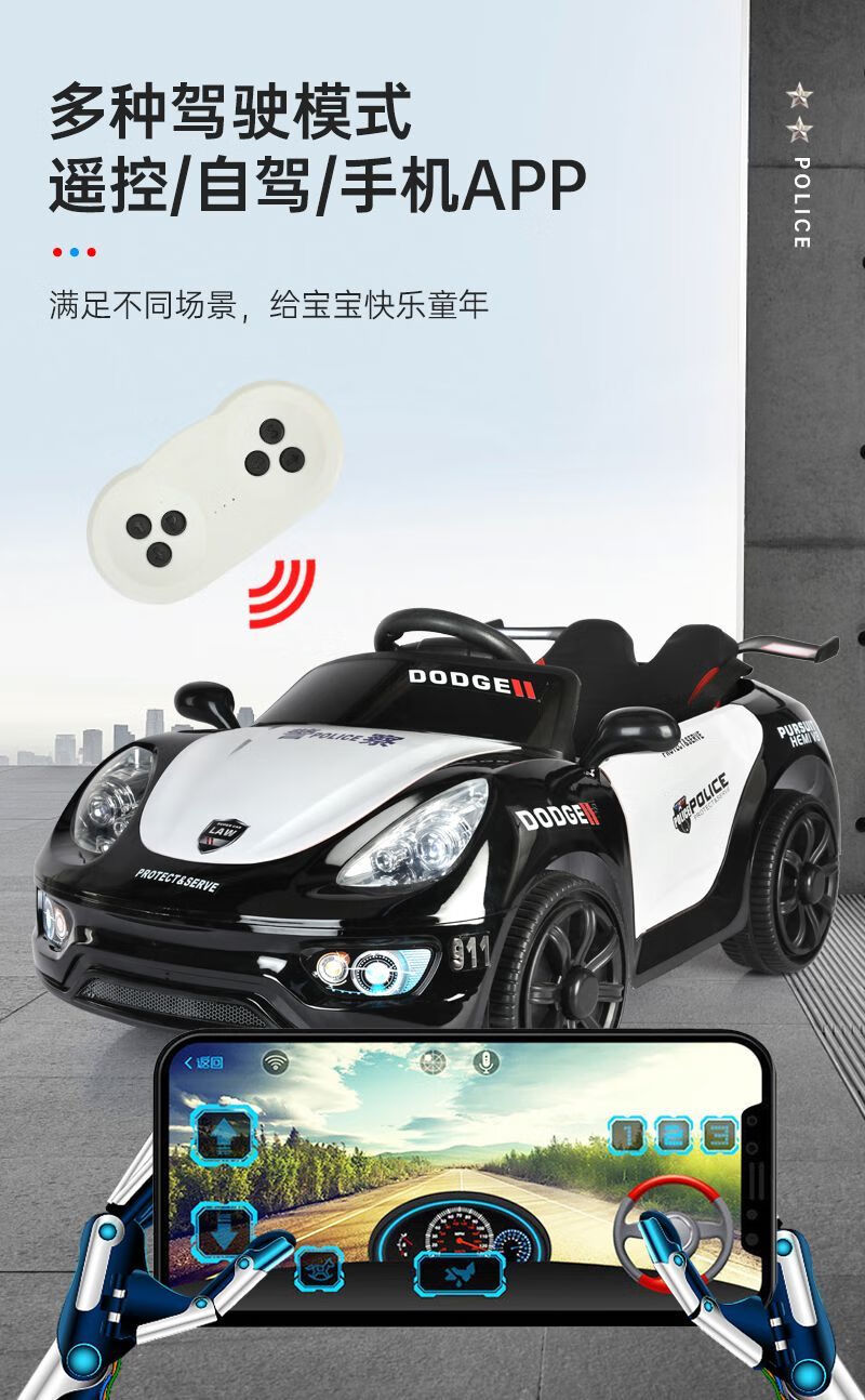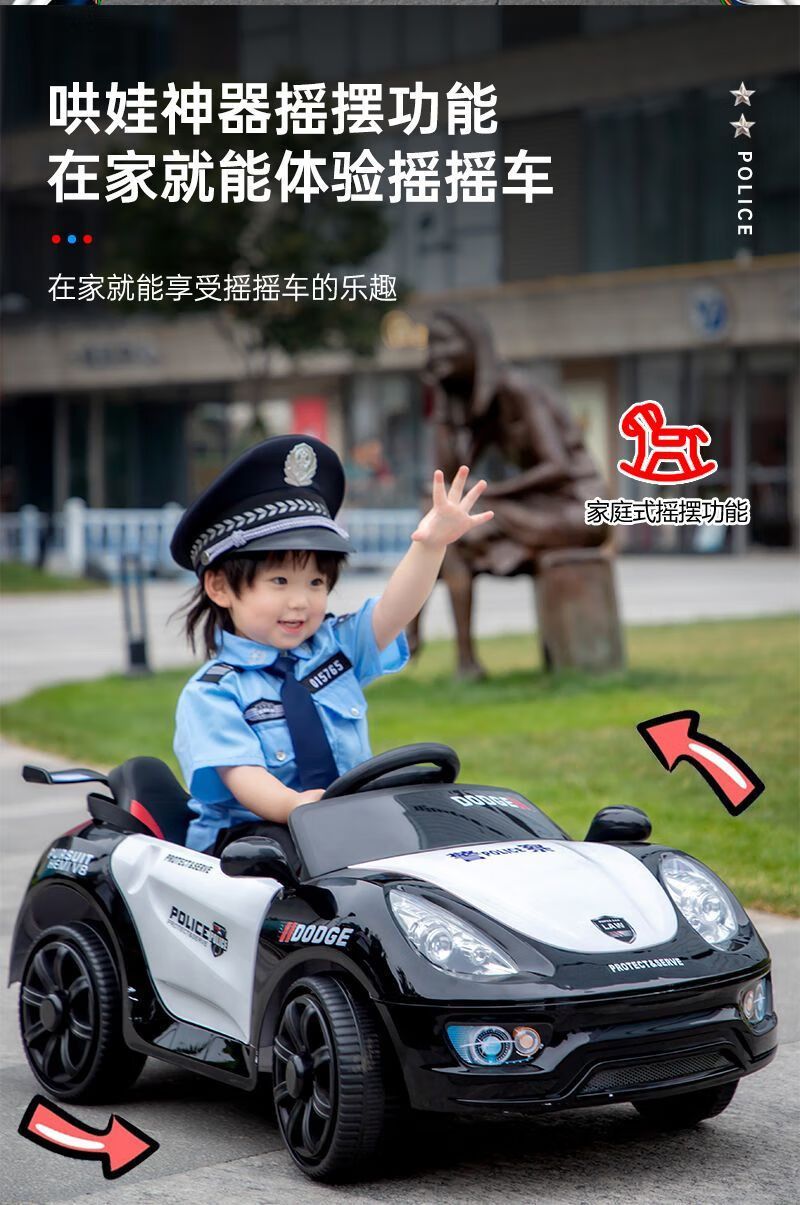 Babypure shine children's electric car baby police car stroller four-wheel four-wheel drive car for men and women with remote control toy car that can sit on people luxury equipped with dual drive black + remote control swing + Bluetooth 12v