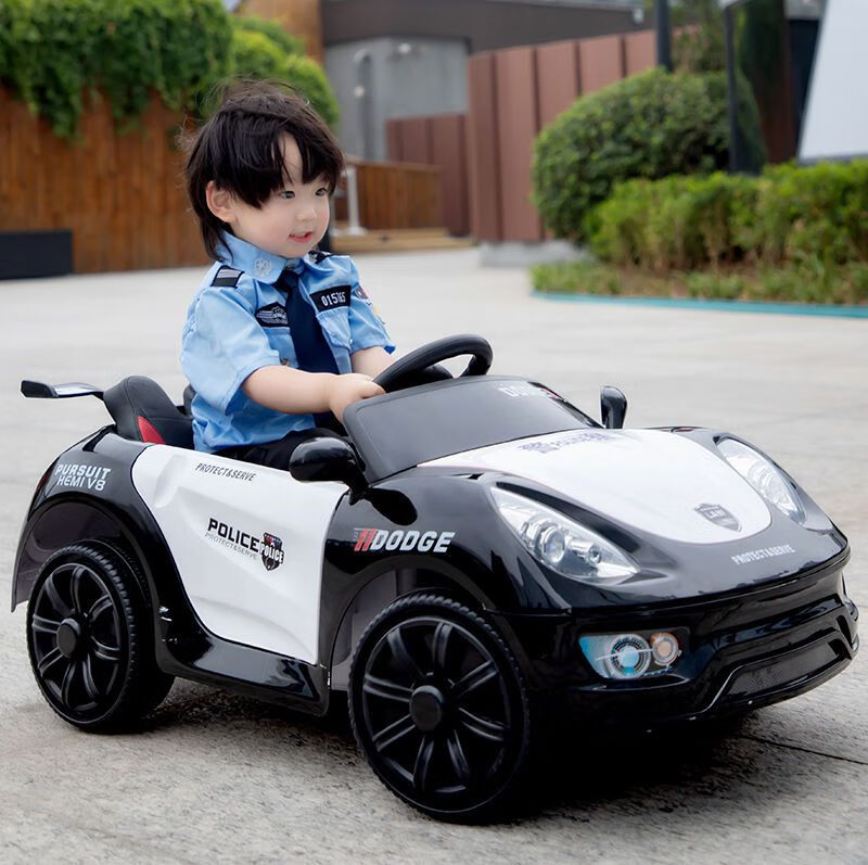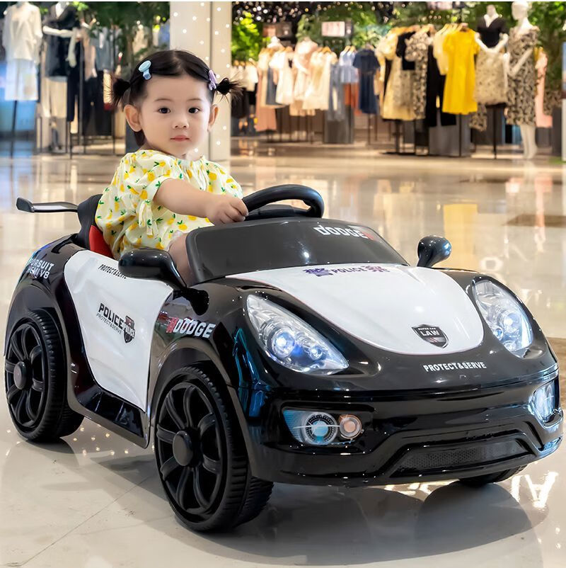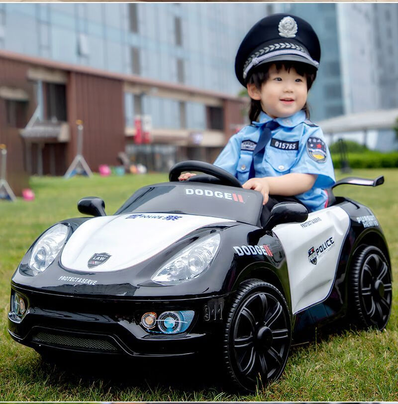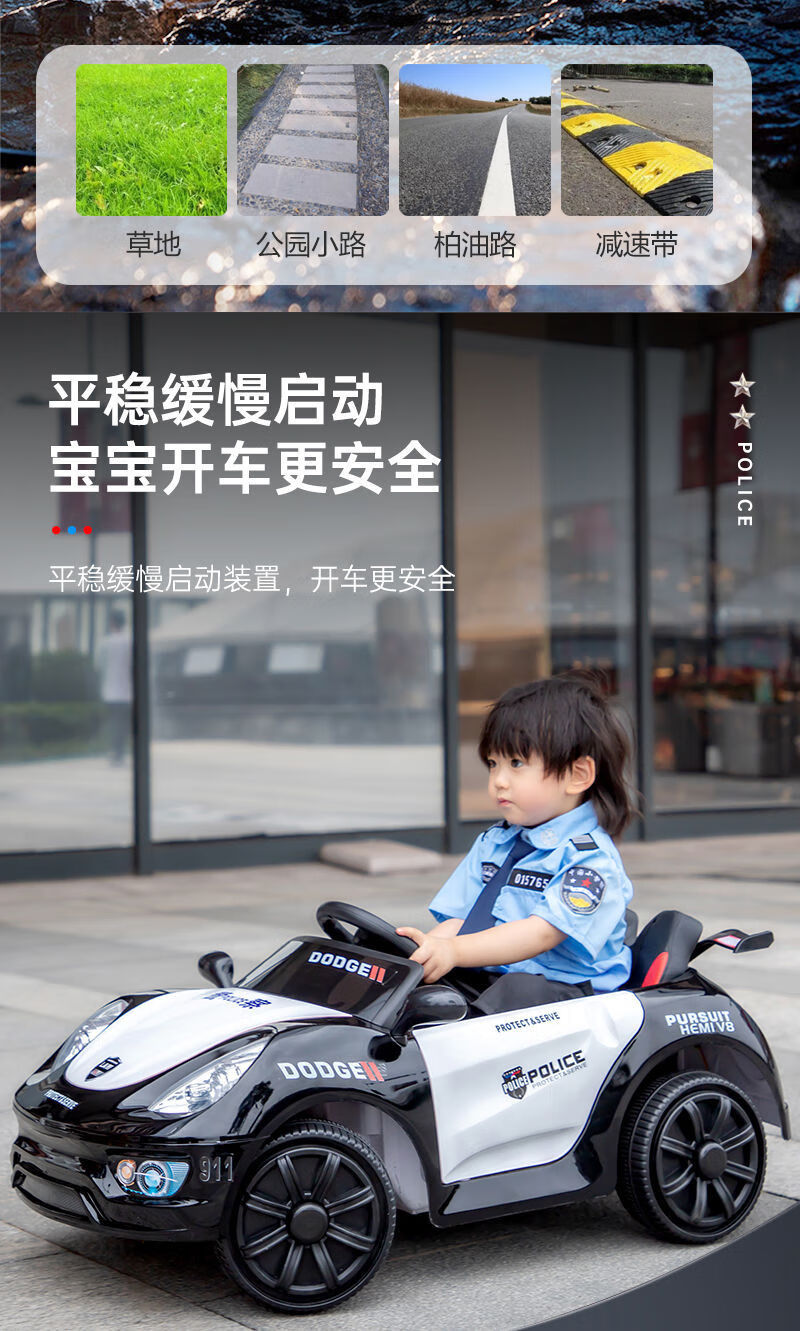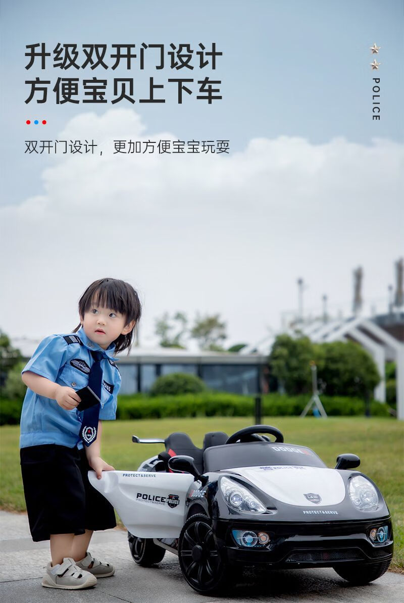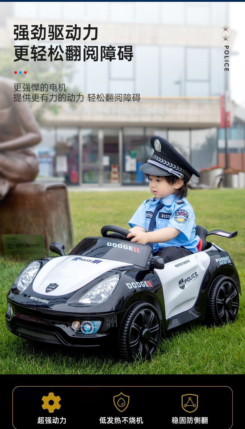 Babypure shine children's electric car baby police car stroller four-wheel four-wheel drive car for men and women with remote control toy car that can sit on people luxury equipped with dual drive black + remote control swing + Bluetooth 12v
