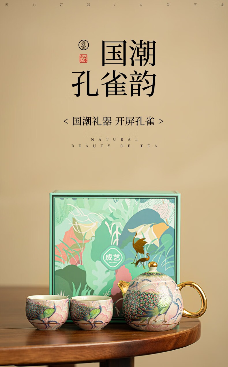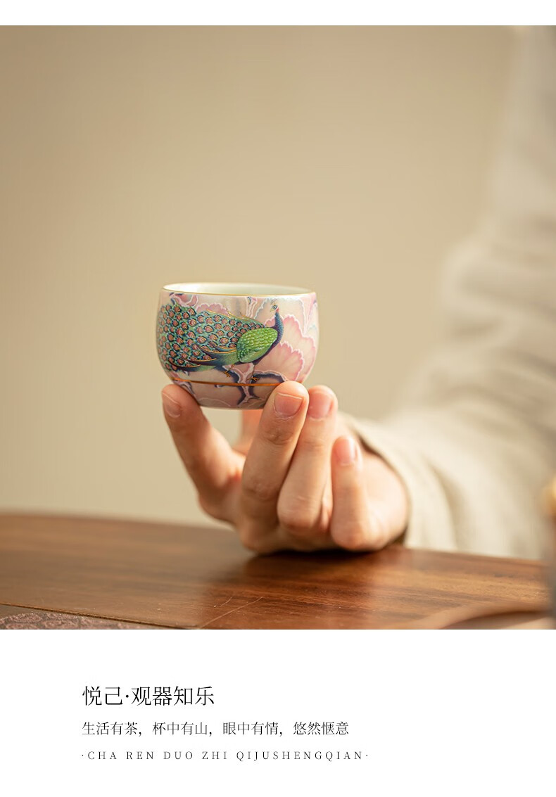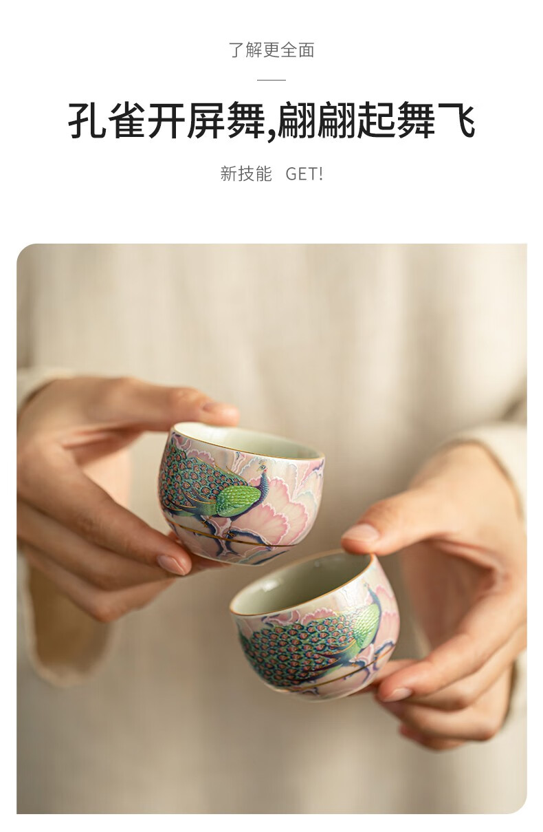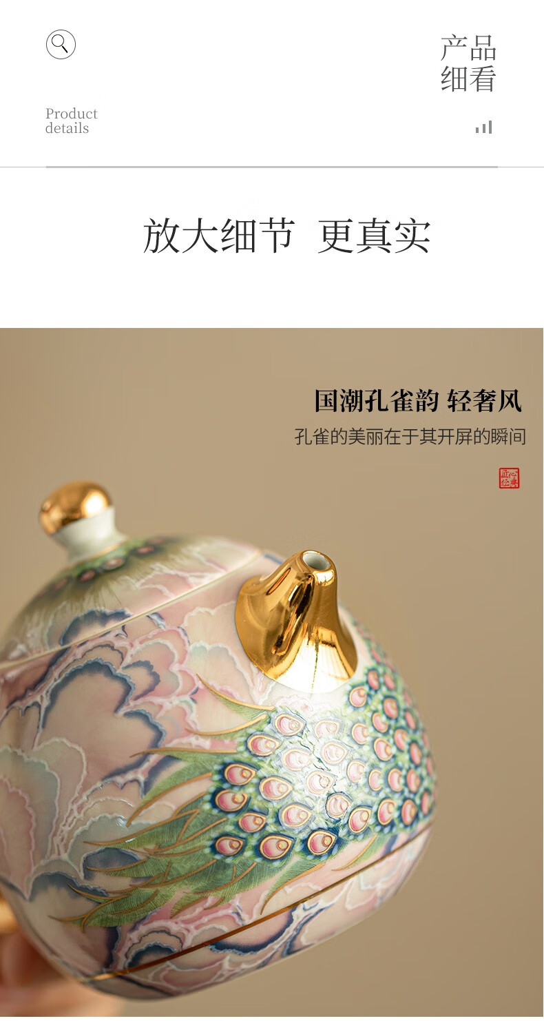 Pottery feather enamel color national trend peacock kung fu tea set one pot two cups household teapot ceramic small set tea set tea set national trend peacock rhyme Longdan teapot 3 pieces