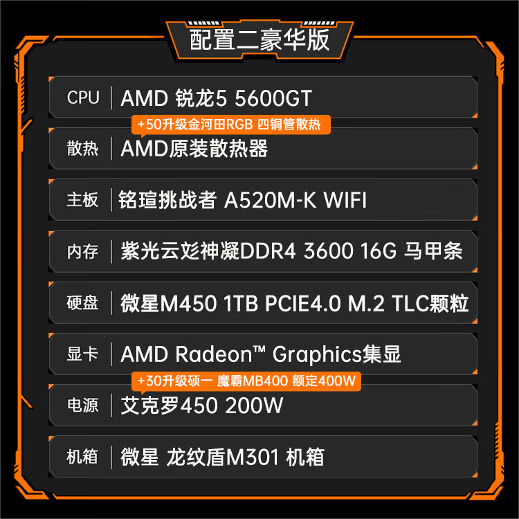 AMD Ryzen R5 5600GT host 5700G 8700G assembled computer home office core display desktop computer host DIY assembly machine configuration two upgraded version R5 5600GT+16G+500G