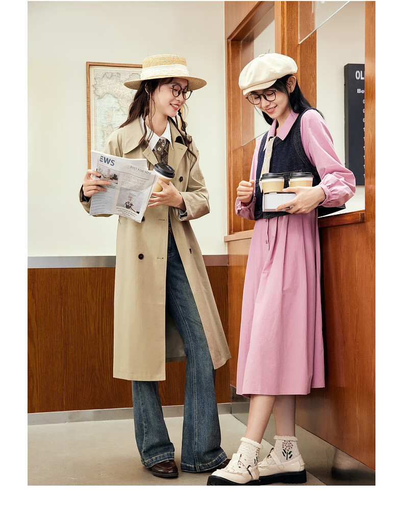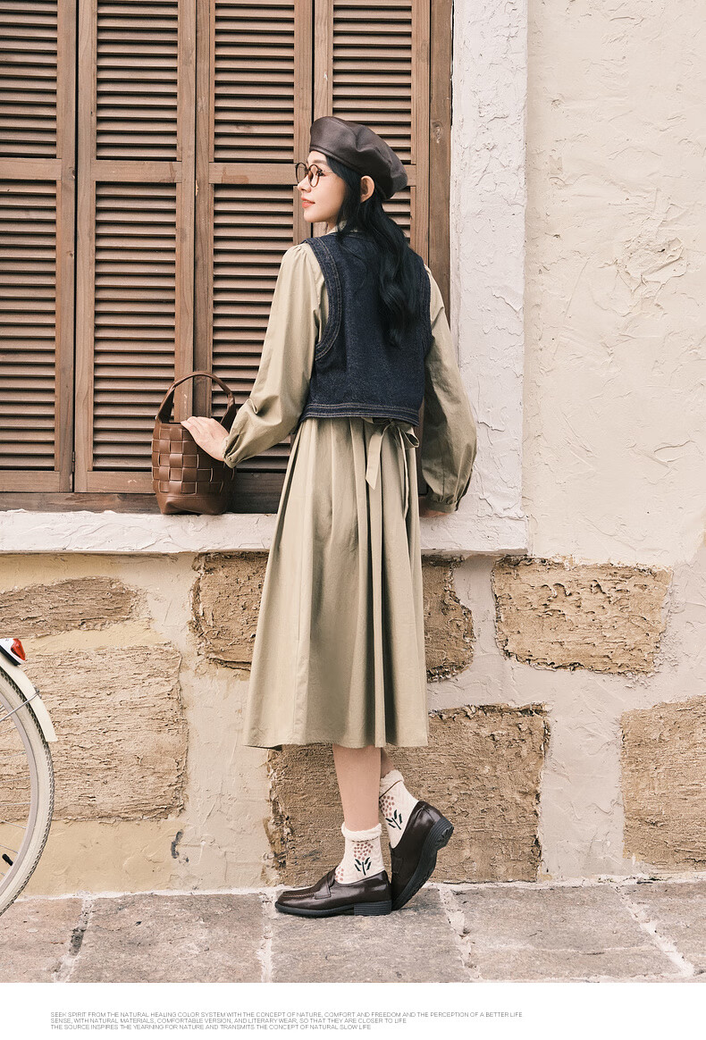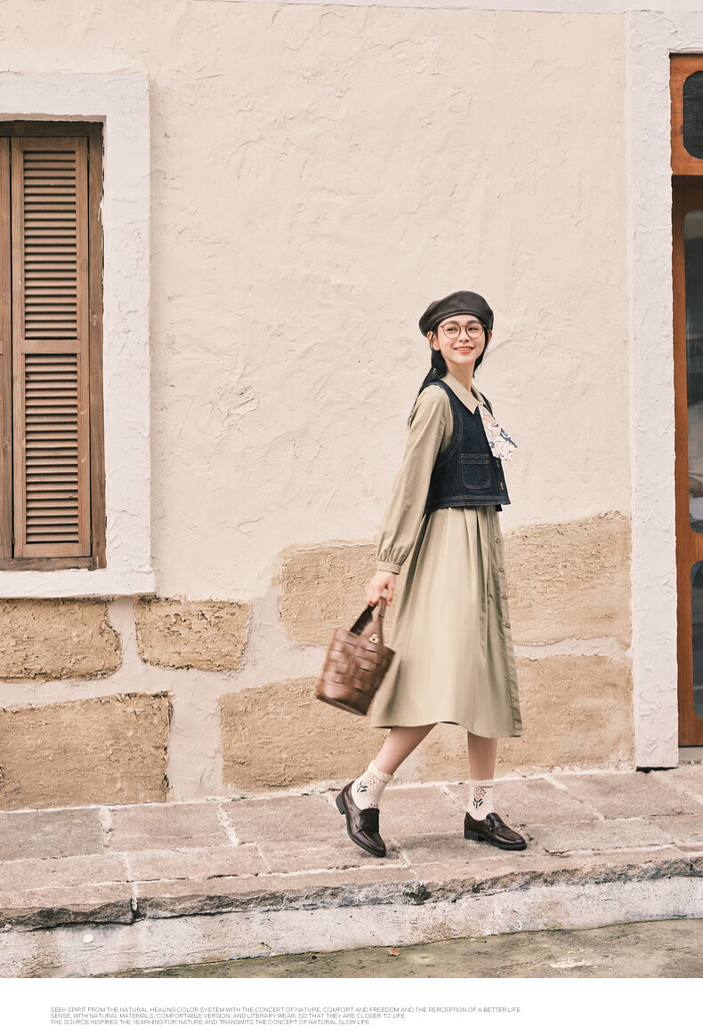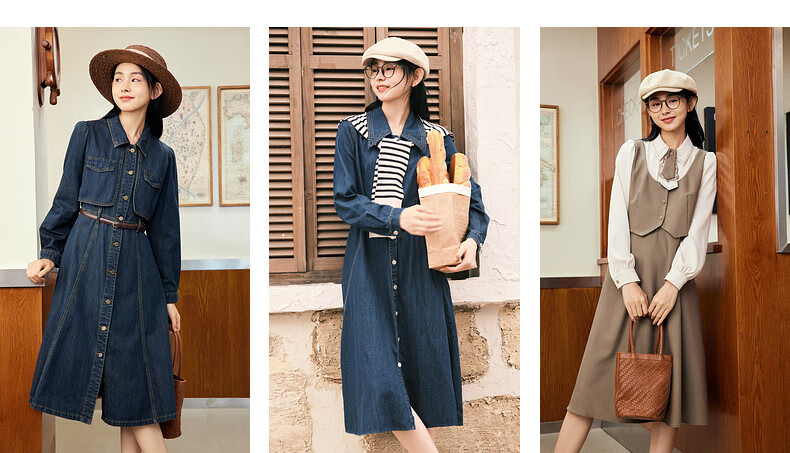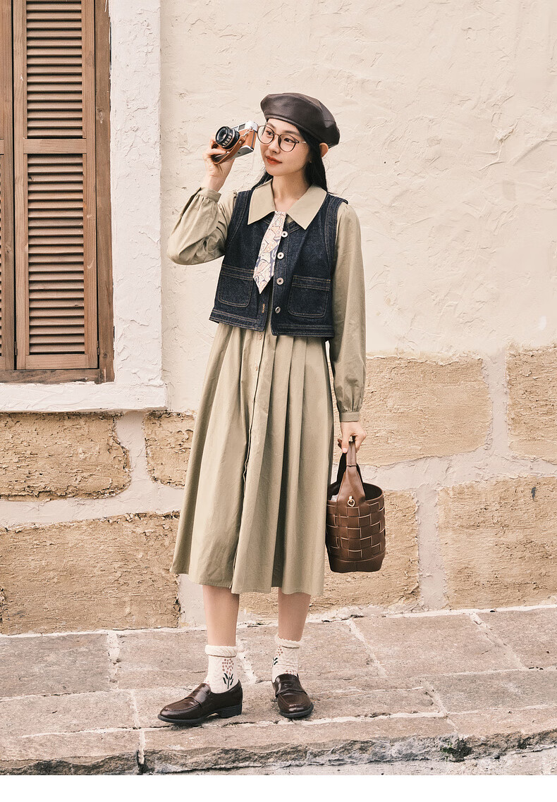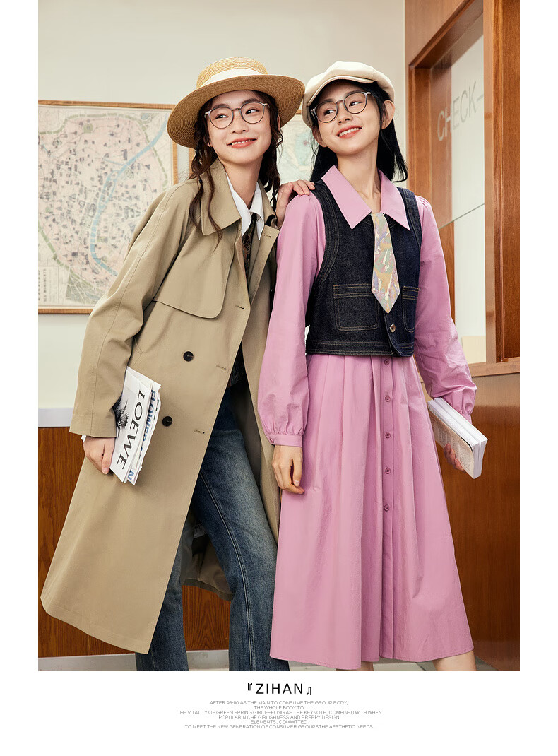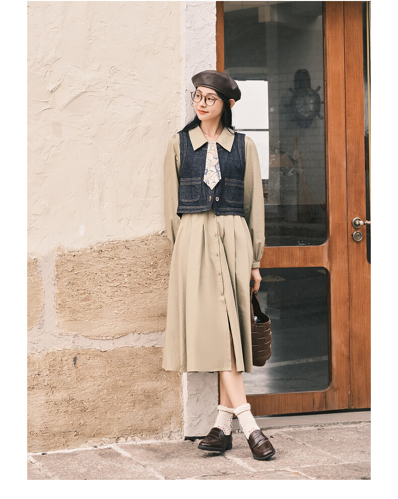 Zihan (ZIHAN) Zihan retro denim vest + pink mid-length shirt dress fashion suit spring raspberry pink XS