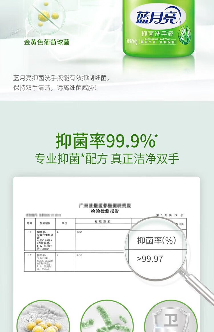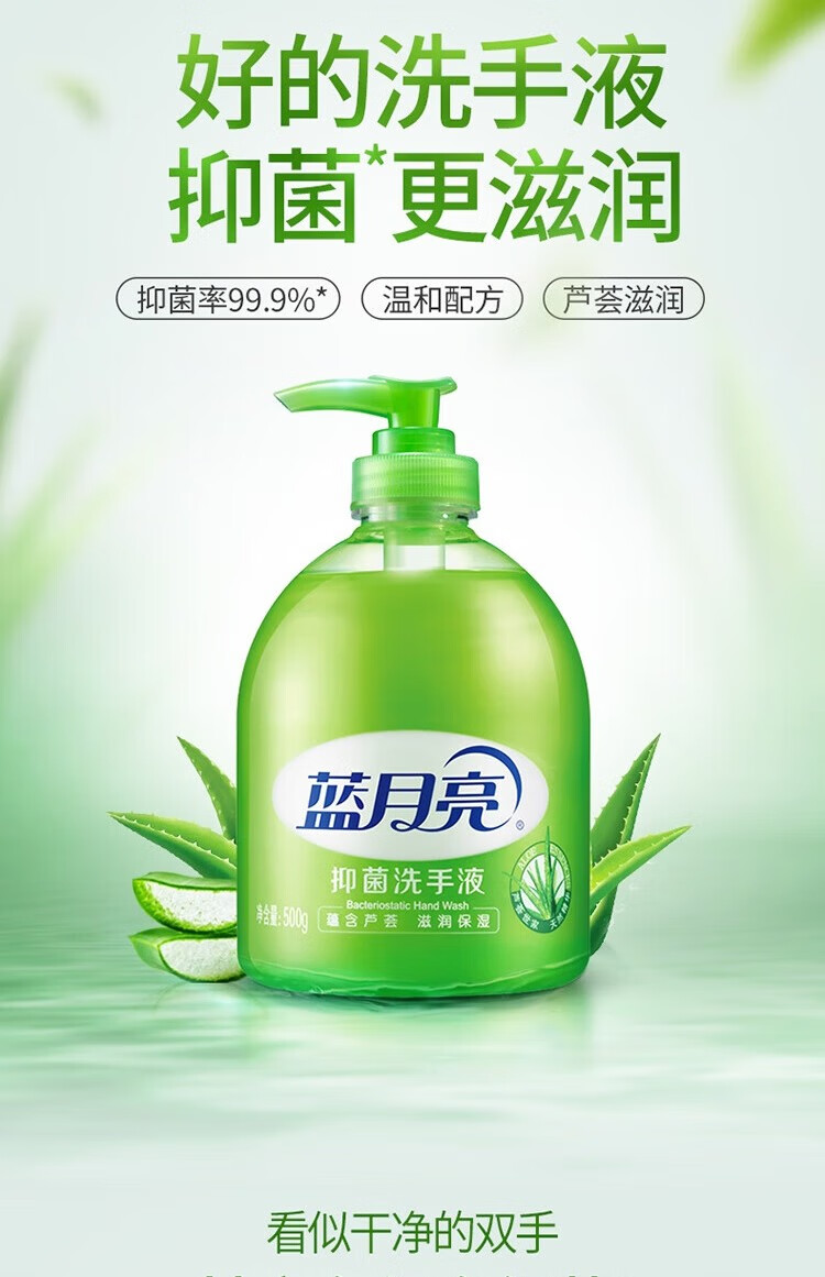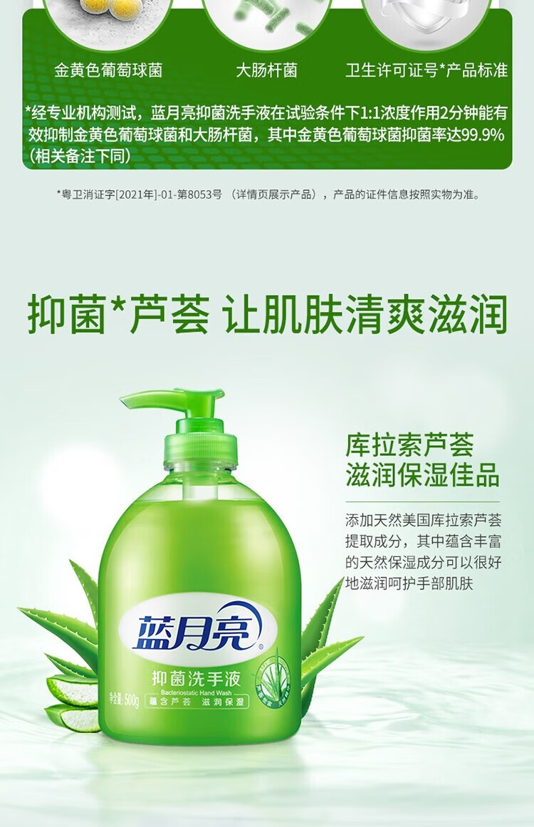 Blue Moon Aloe Vera Antibacterial Hand Sanitizer 500g Bottle Pump Head Refill Bottle Antibacterial 99.9% Rich Foam Bottle Refill 500g*2 Bottles
