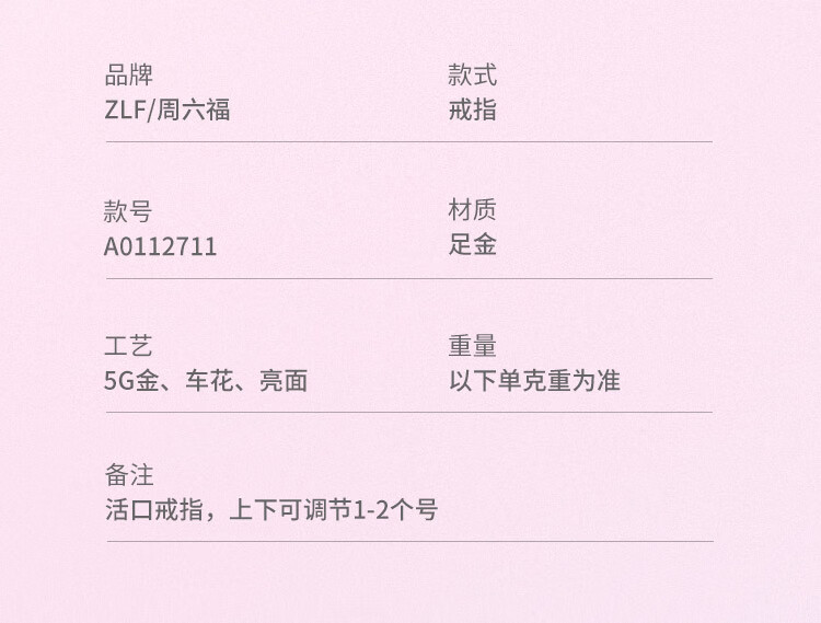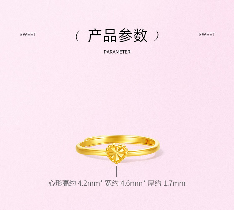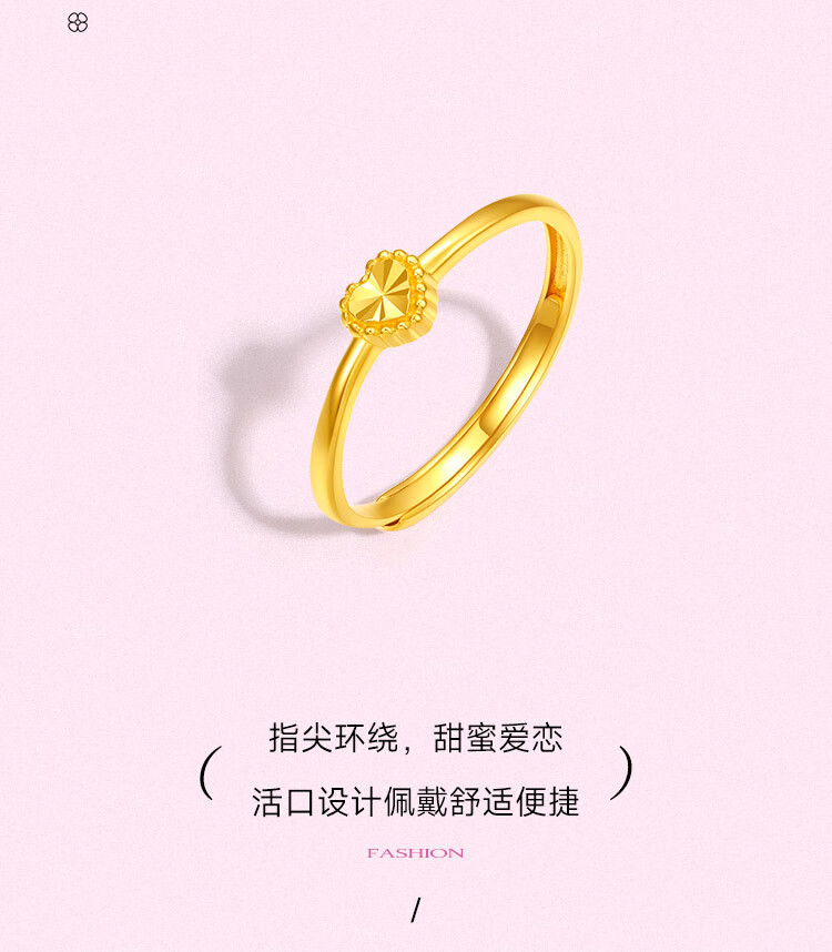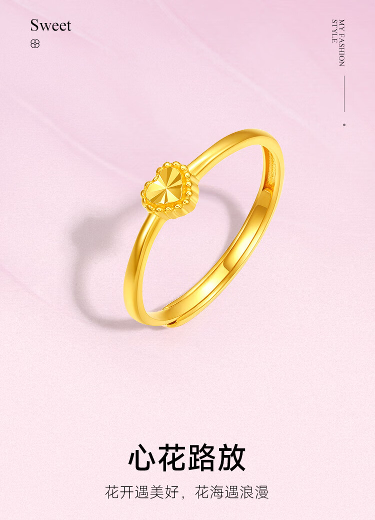 Saturday Fortune (ZLF) Gold Ring Women's Pure Gold 5G Gold Love Ring Heart Flower Road Release Price No. 11 - 1.66g