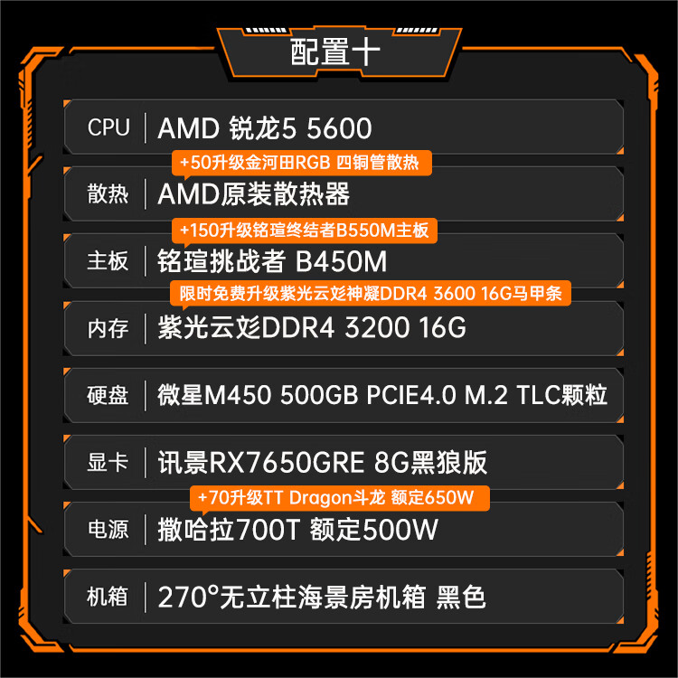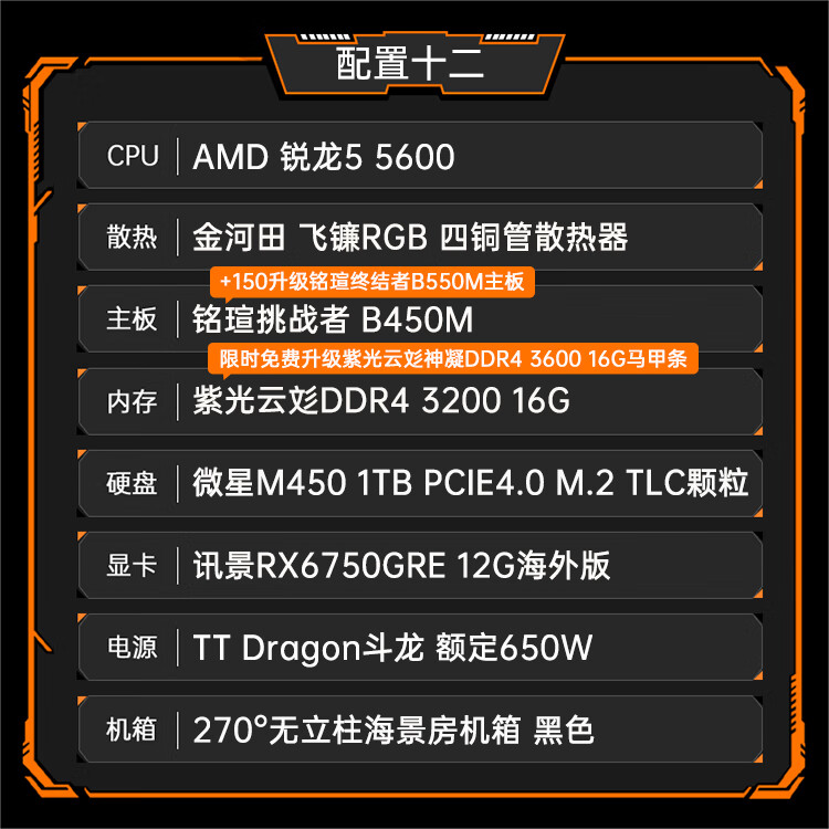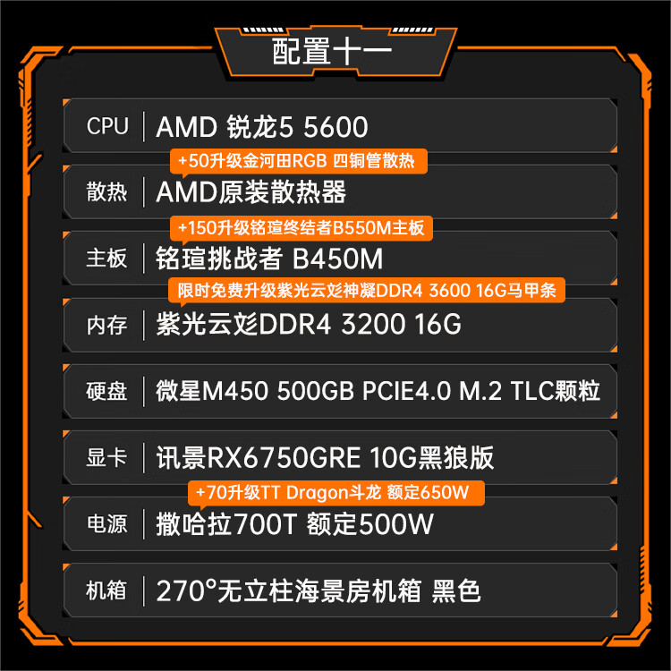 AMD Ryzen R5 5600/7500F/RX6750GRE host RX7800XT 16G graphics card Game live broadcast desktop computer host assembly computer DIY assembly machine configuration twelve R5 5600+RX6750GRE host