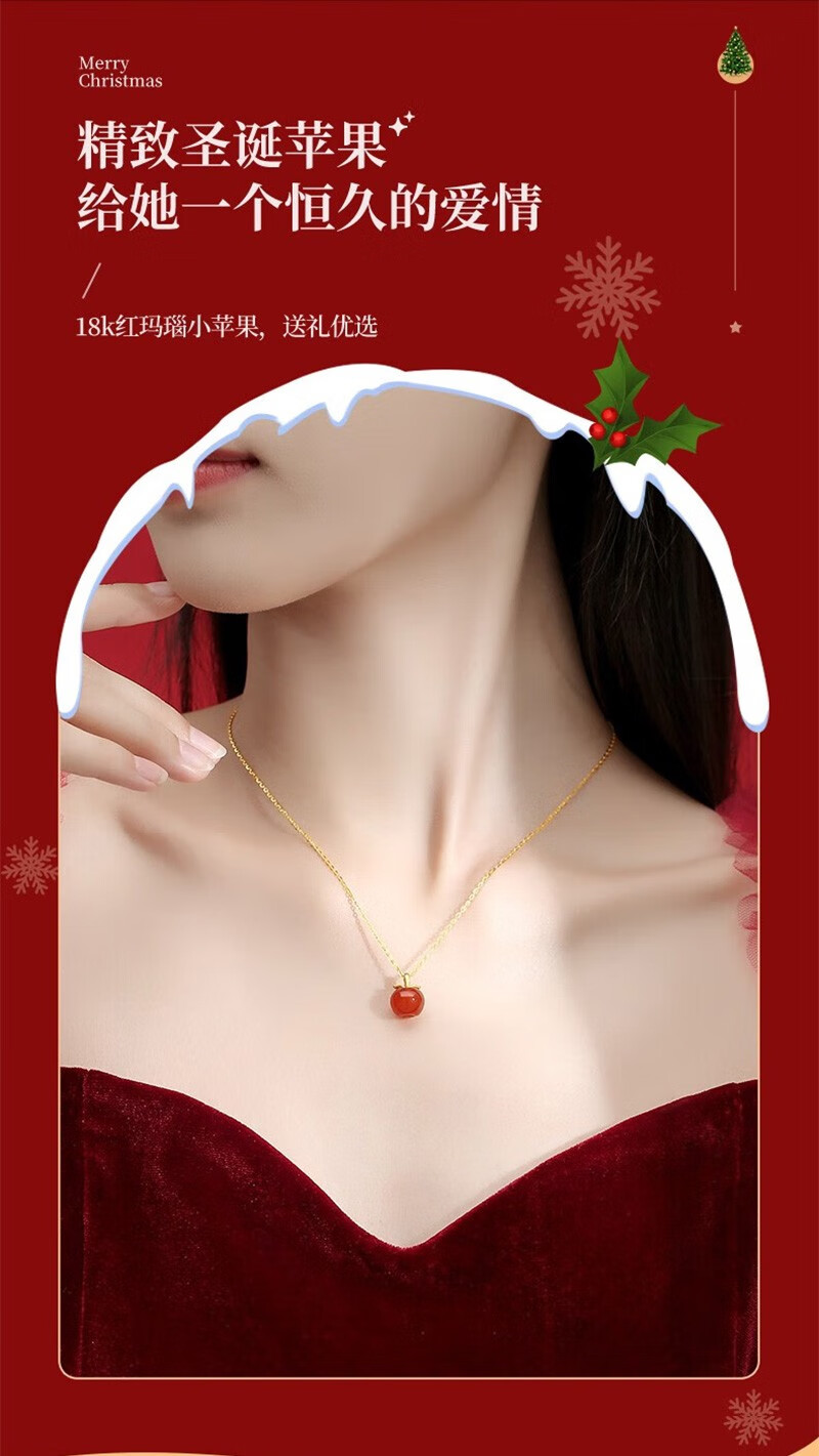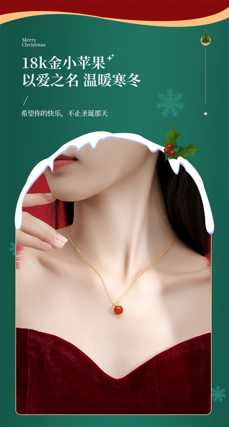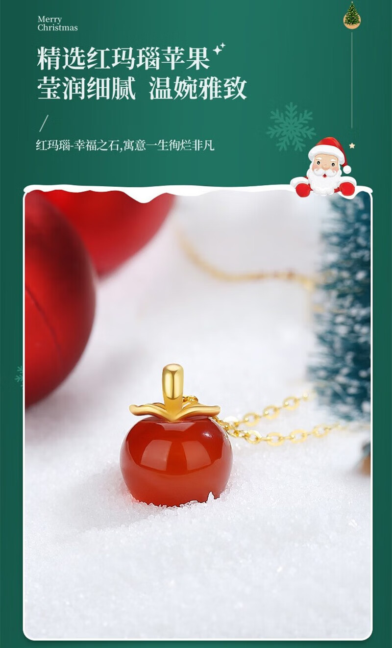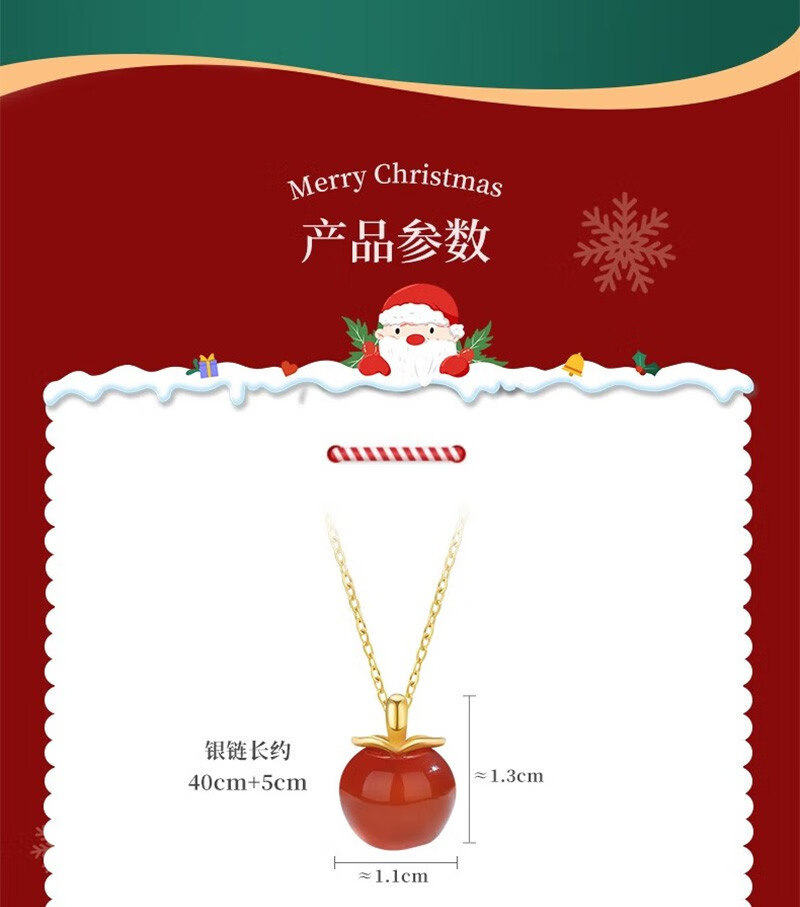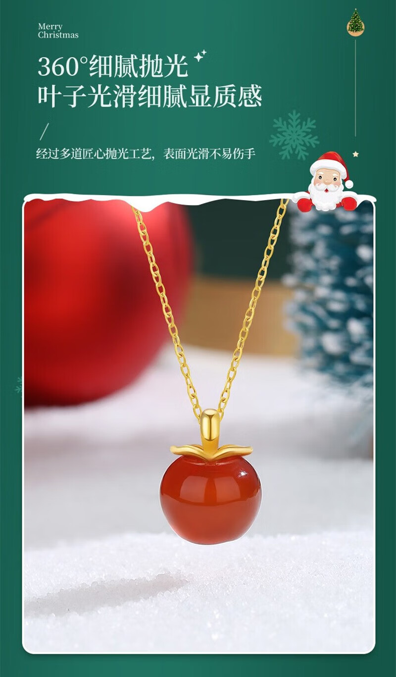 N2it Ping An Apple 18K Color Gold and Red Agate Pendant Necklace Christmas and New Year Gift for Girlfriend and Wife Ping An Fruit 18K Color Gold and Red Agate Necklace with Silver Chain