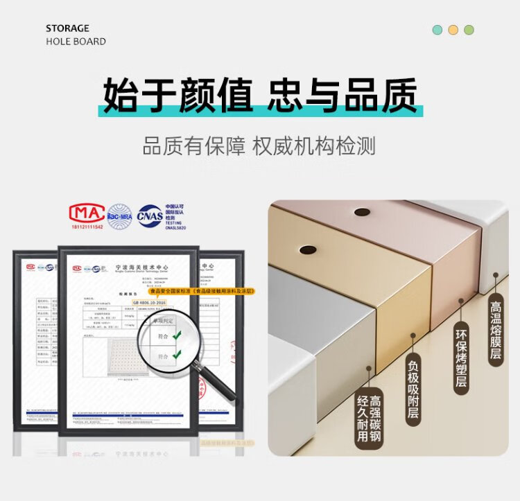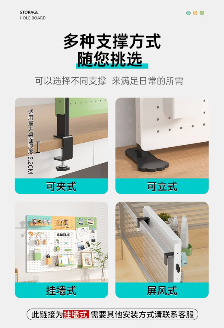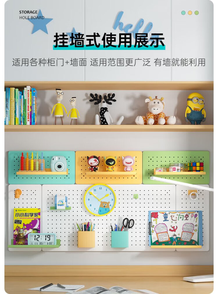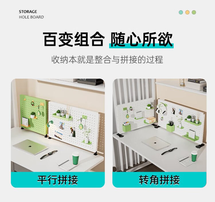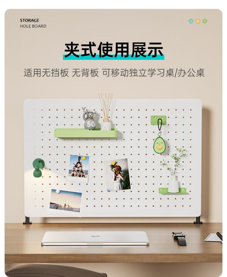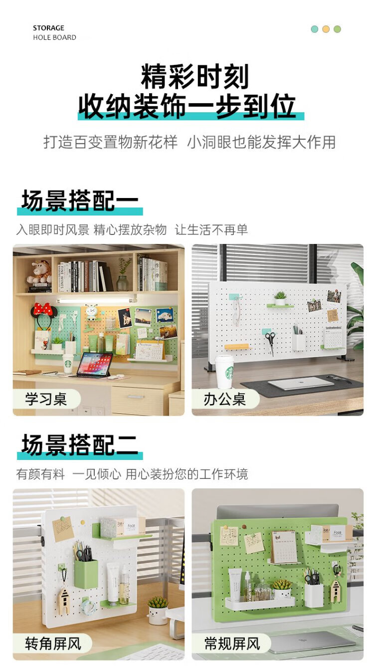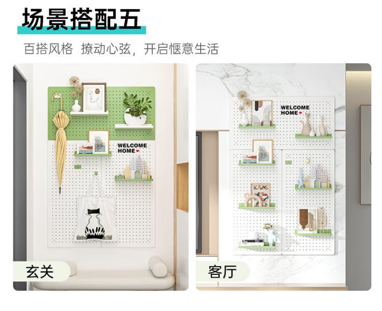 Hundred-character hole board wall metal household storage rack hook accessories punch-free entry entrance desk wall partition milk white small folding edge rack