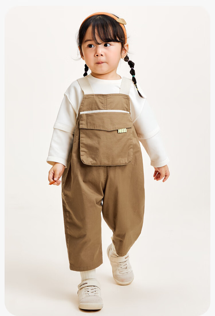 Mini Bala boys and girls trousers Year of the Dragon new pure cotton loose overalls children's trousers earthy gray green 40942 100