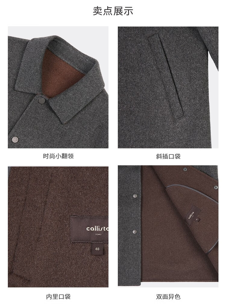 Callisto Callisto double-sided heterogeneous wool autumn and winter woolen jacket men's business casual warm jacket navy blue XL (52 yards)