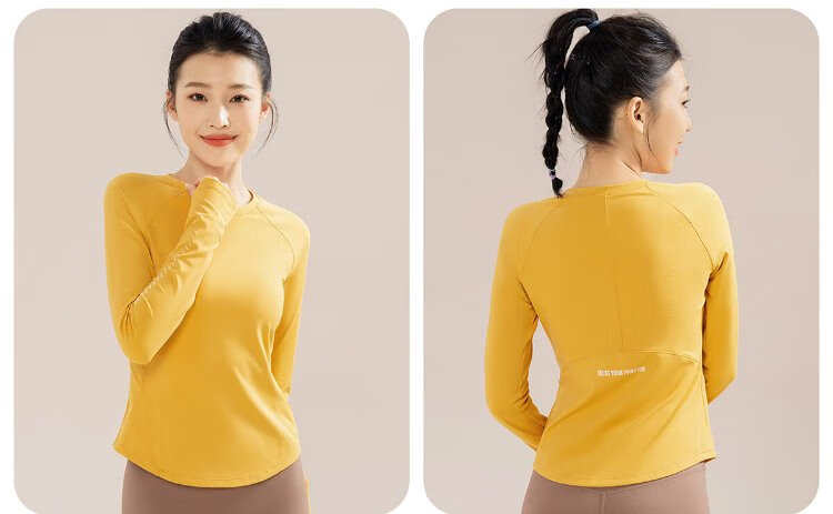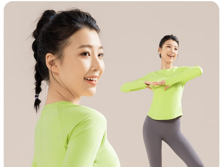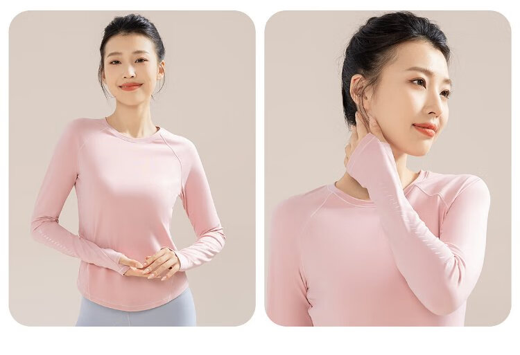 361 Fitness long-sleeved T-shirt for women, autumn and winter running sports top, slim round neck bottoming, Pilates training yoga wear, pink top + dark gray trousers L