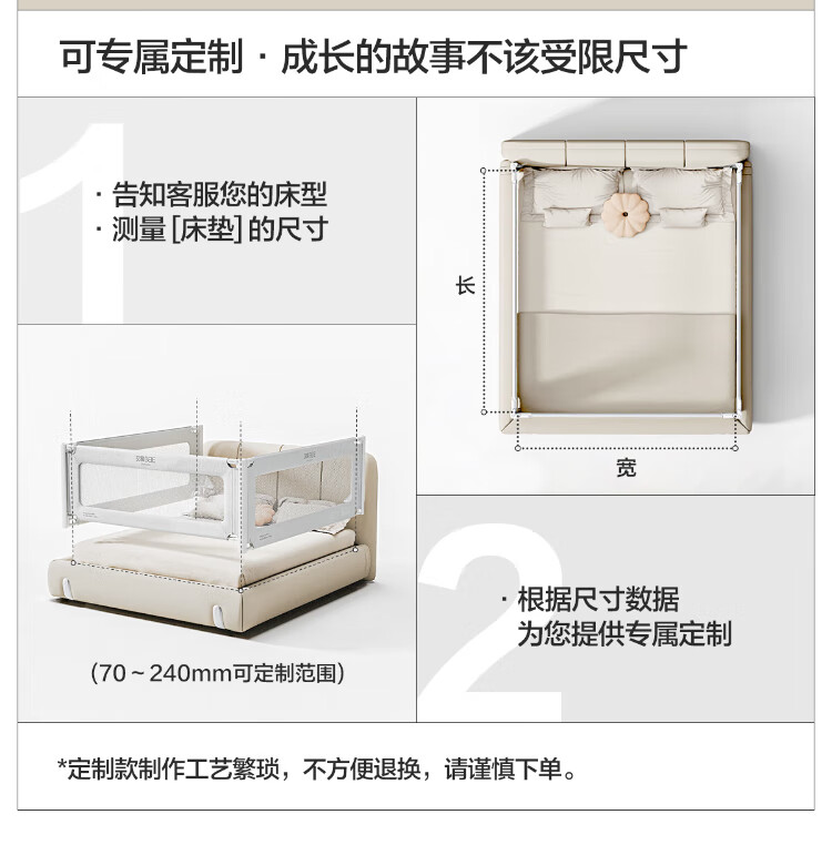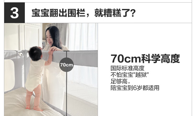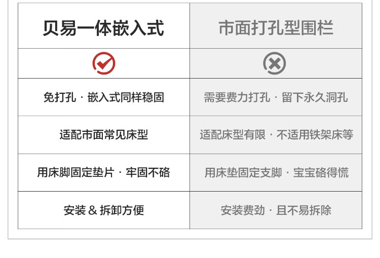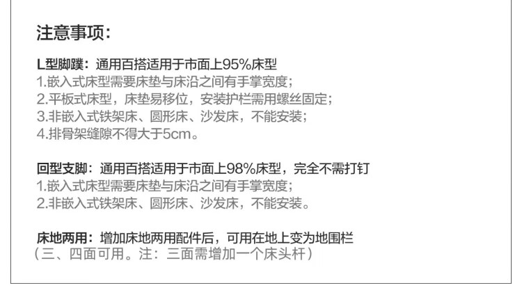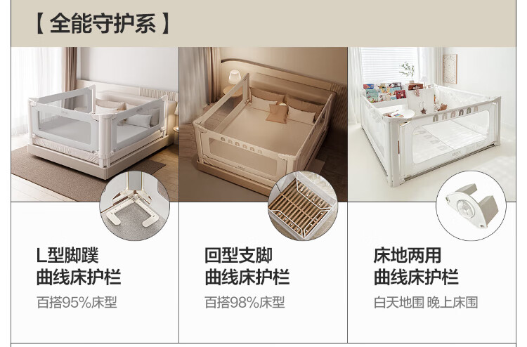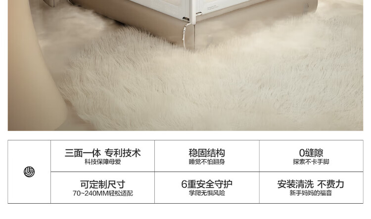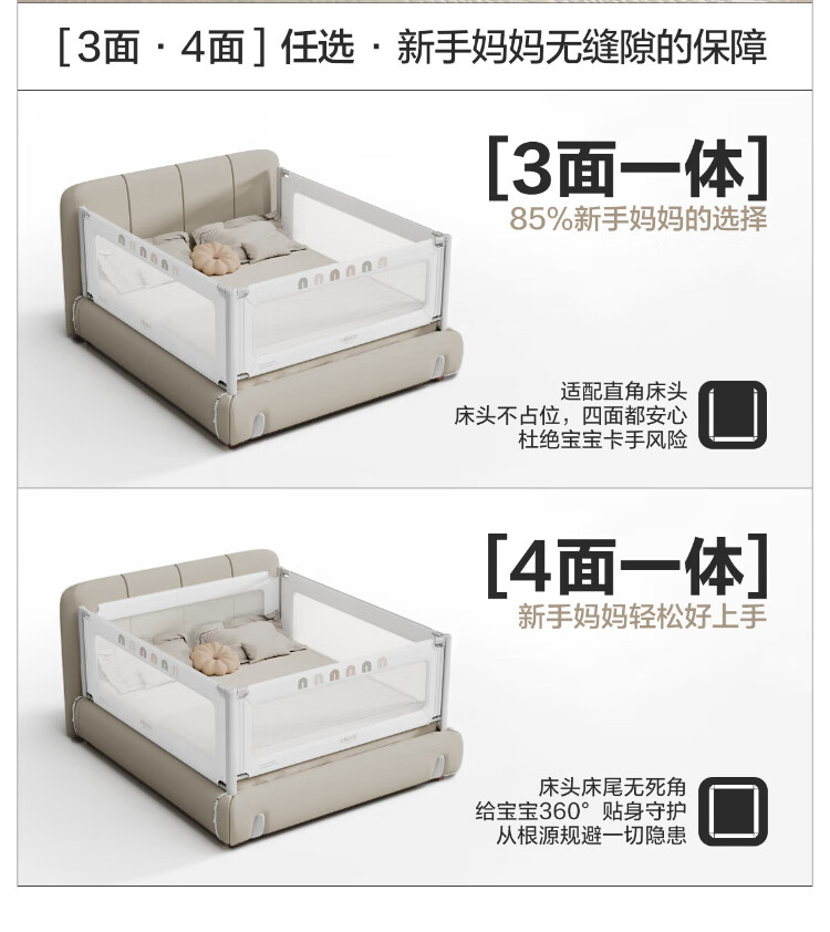 BeiE Rainbow Bed Rail Integrated Baby Baffle Safety Guard Children's Bed Anti-fall Bedside Railing No Punching Three Sides Mount BeiE Rainbow No Nail 1.8m*2.0m 1.8m Bed Type