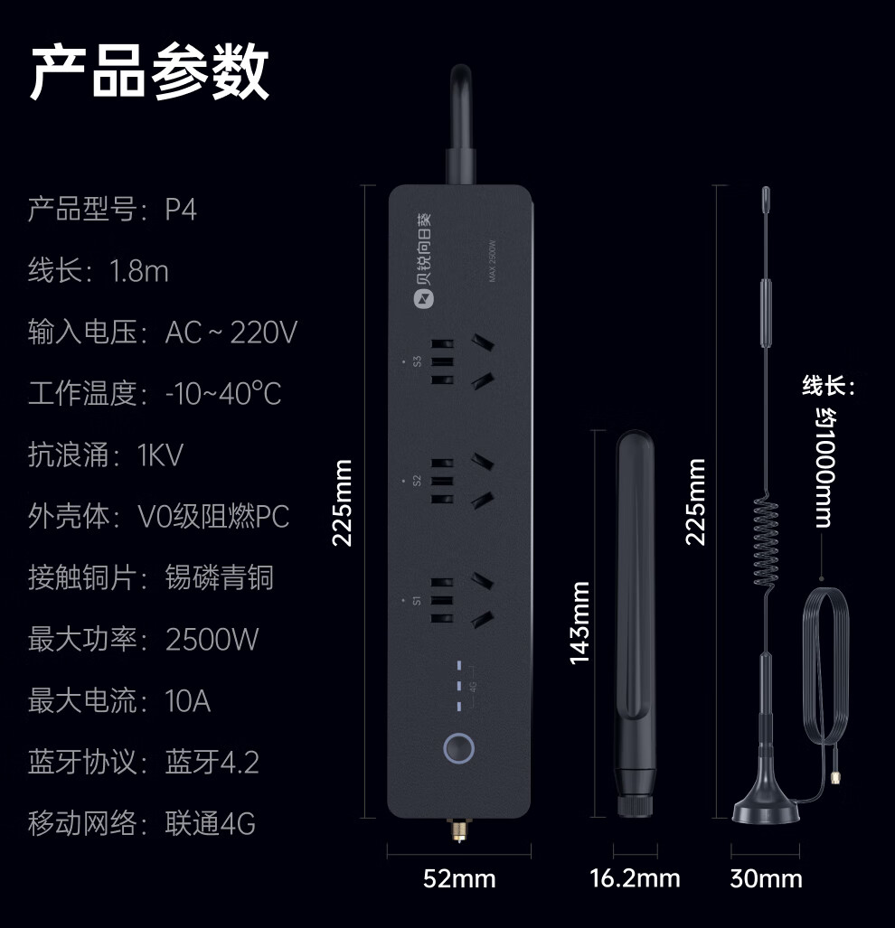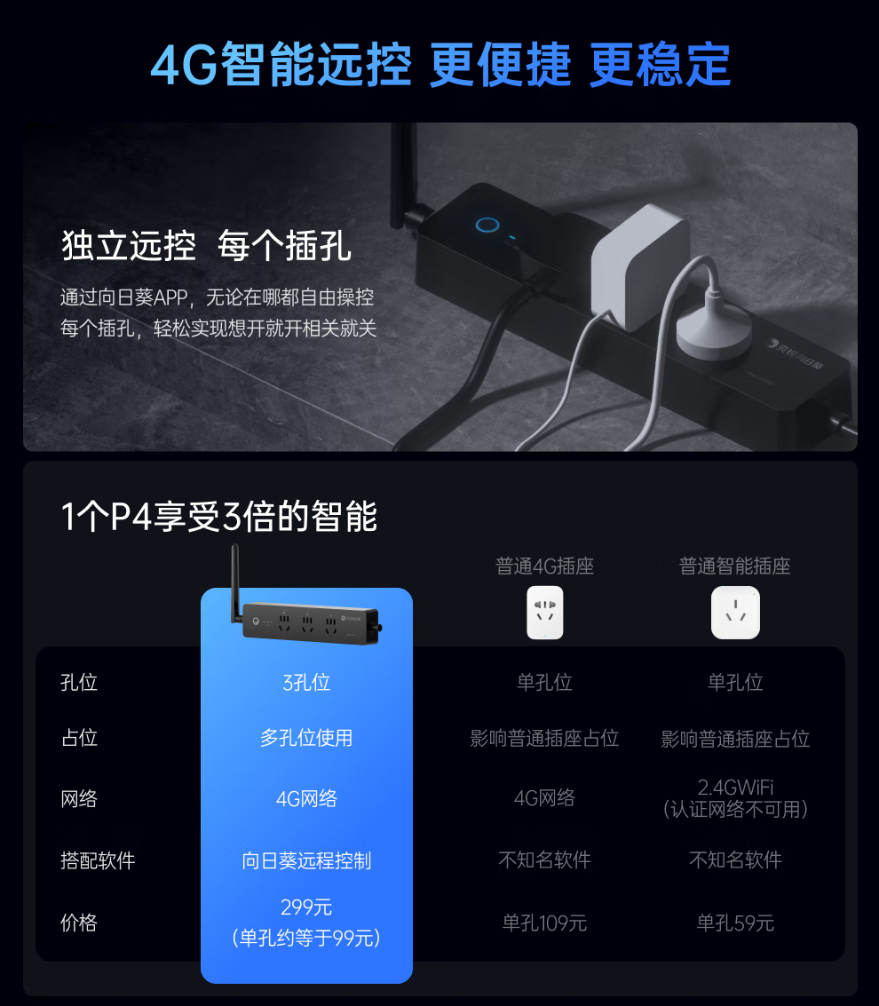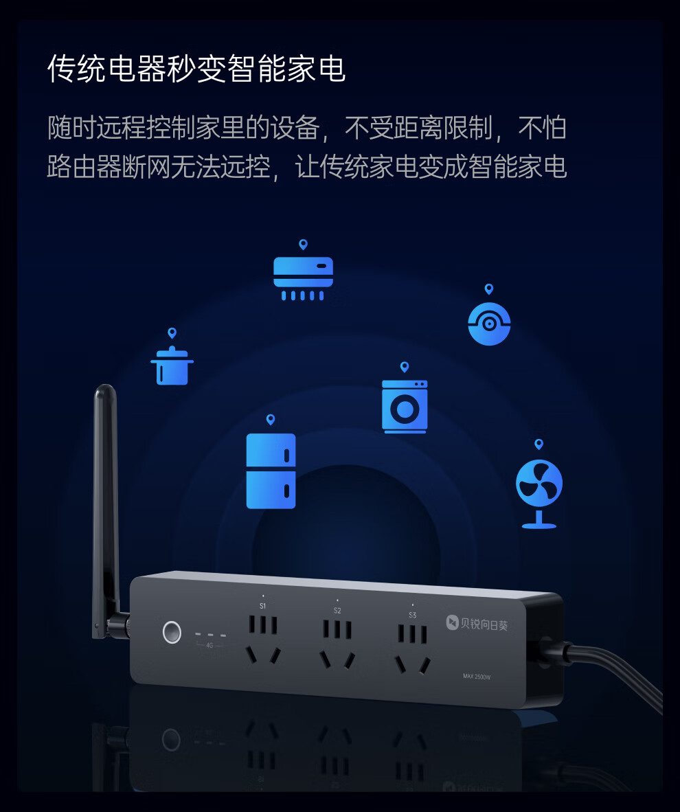 Bei Rui Sunflower 4g smart power strip wifi socket / power strip / power strip / no network remote control outdoor restart computer room router 4g network access sub-control countdown switch power meter P4 4G smart power strip standard model Sunflower P4
