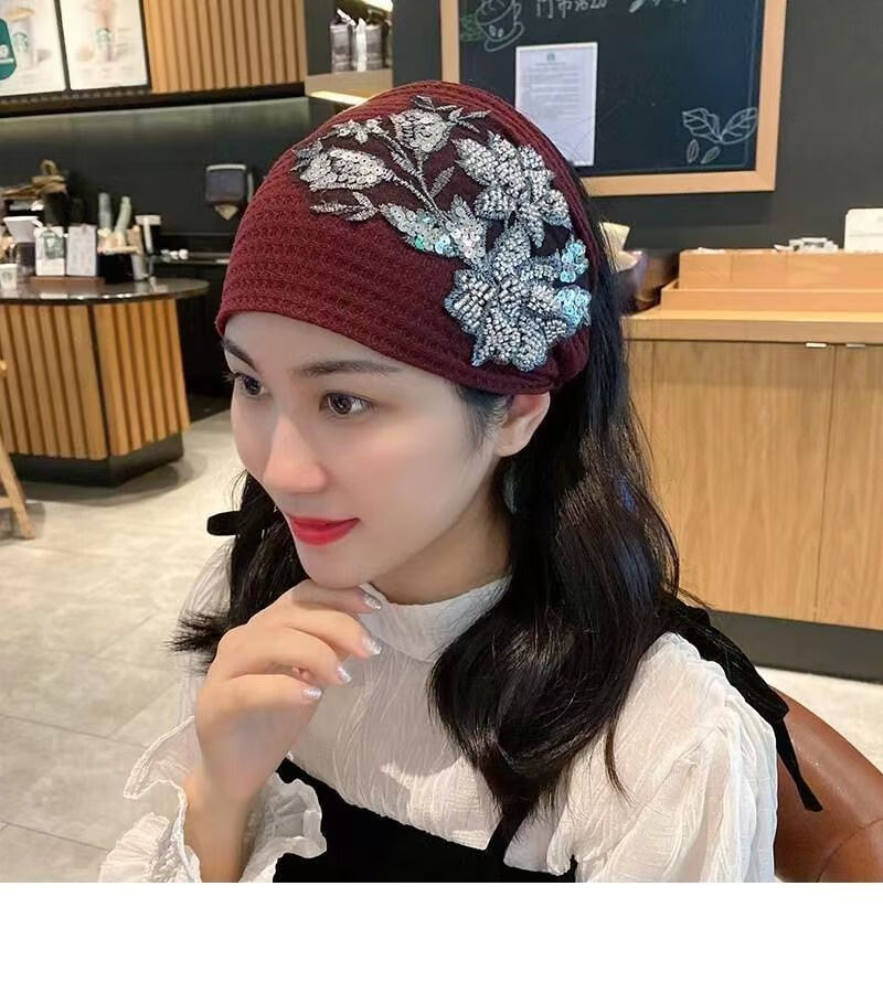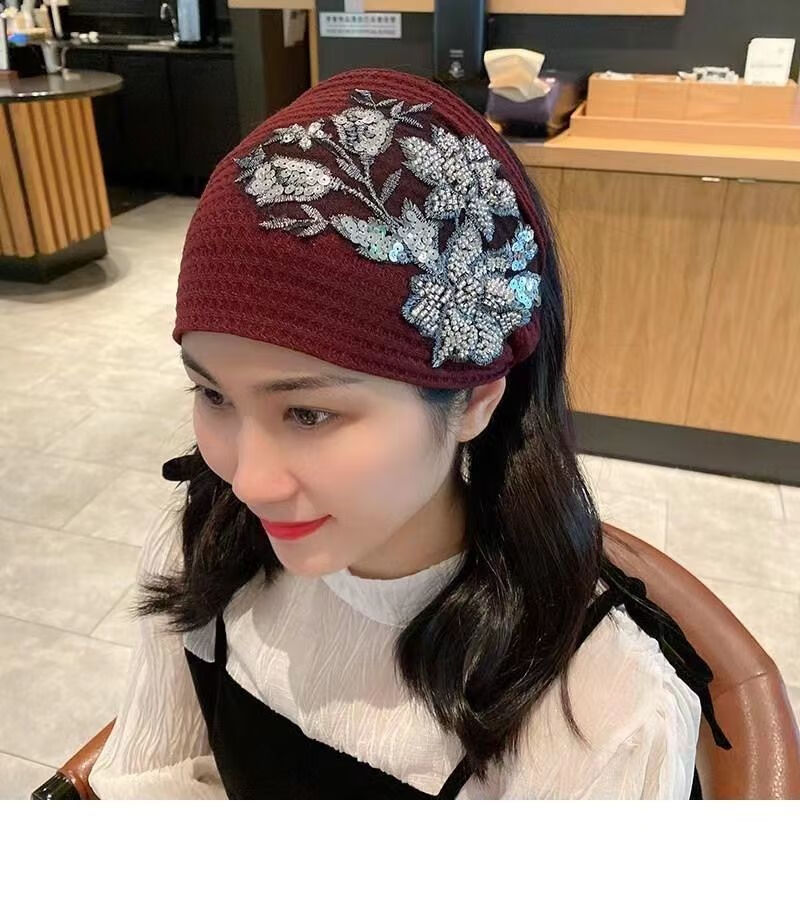 Scarf, hair accessories, woolen knitted headband, wide-brimmed autumn and winter warm headscarf for women, ear protection, headband to cover gray hair, rose-khaki color