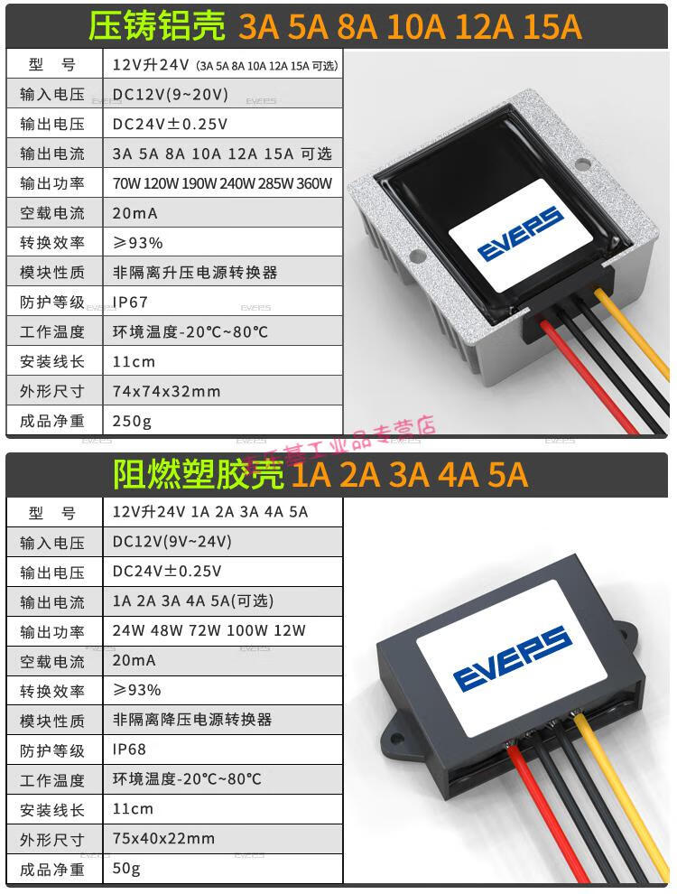 Yiwen Technology EVEPS power supply 12V to 24V converter DC-DC boost conversion DC boost module 12V to 24V10A large aluminum motor dedicated