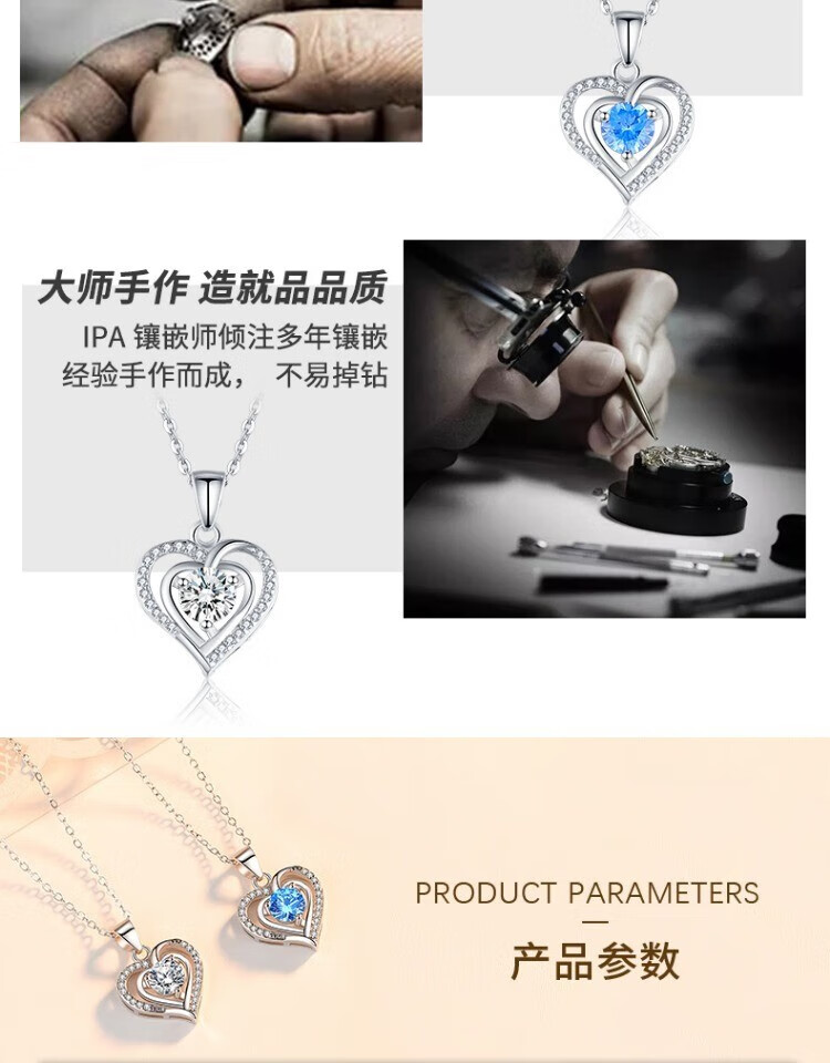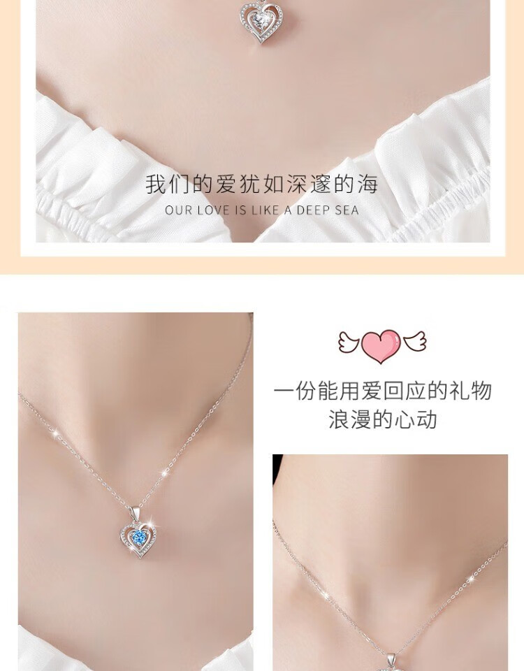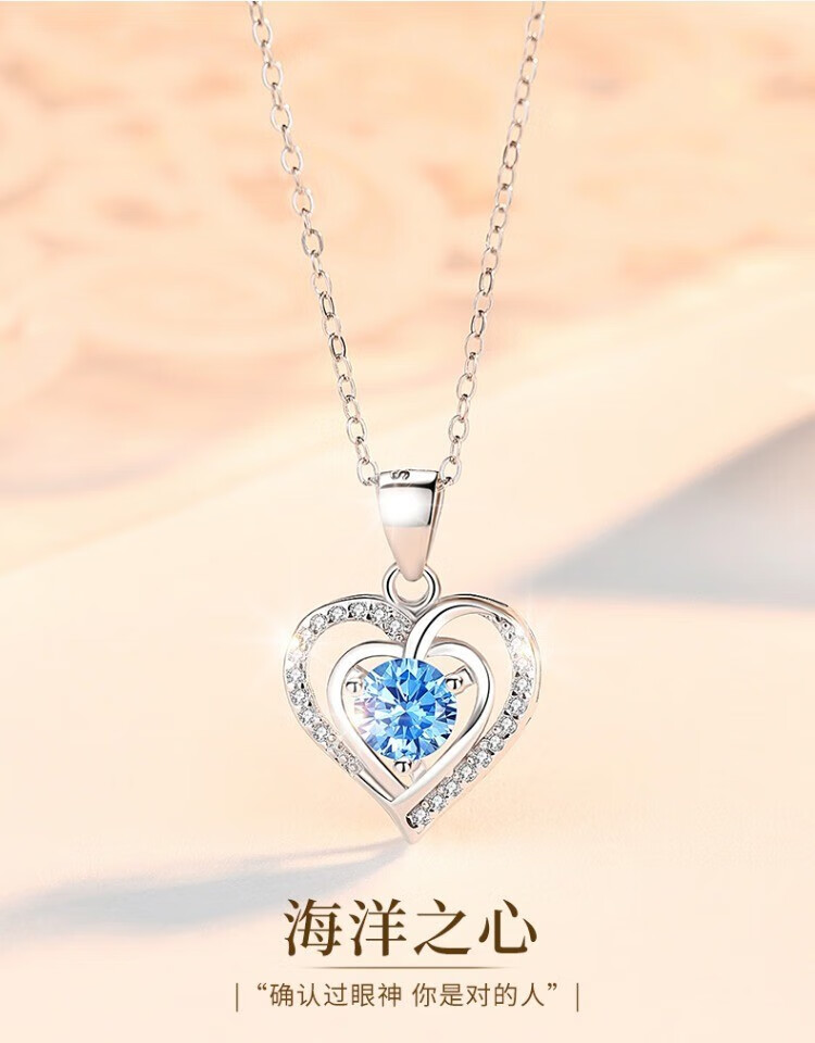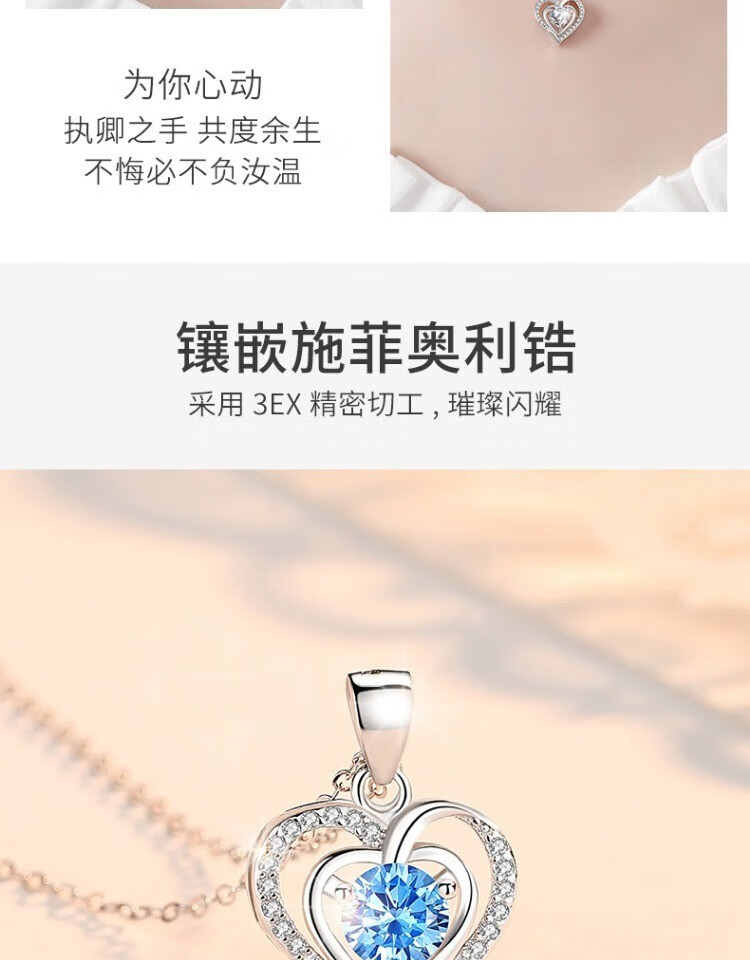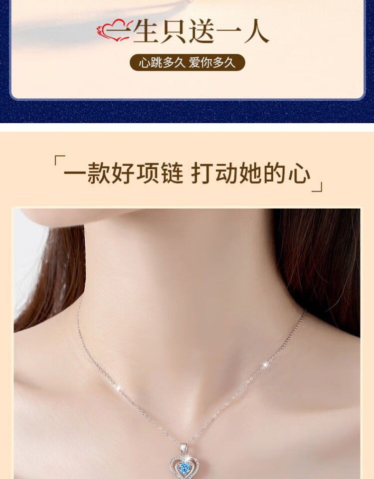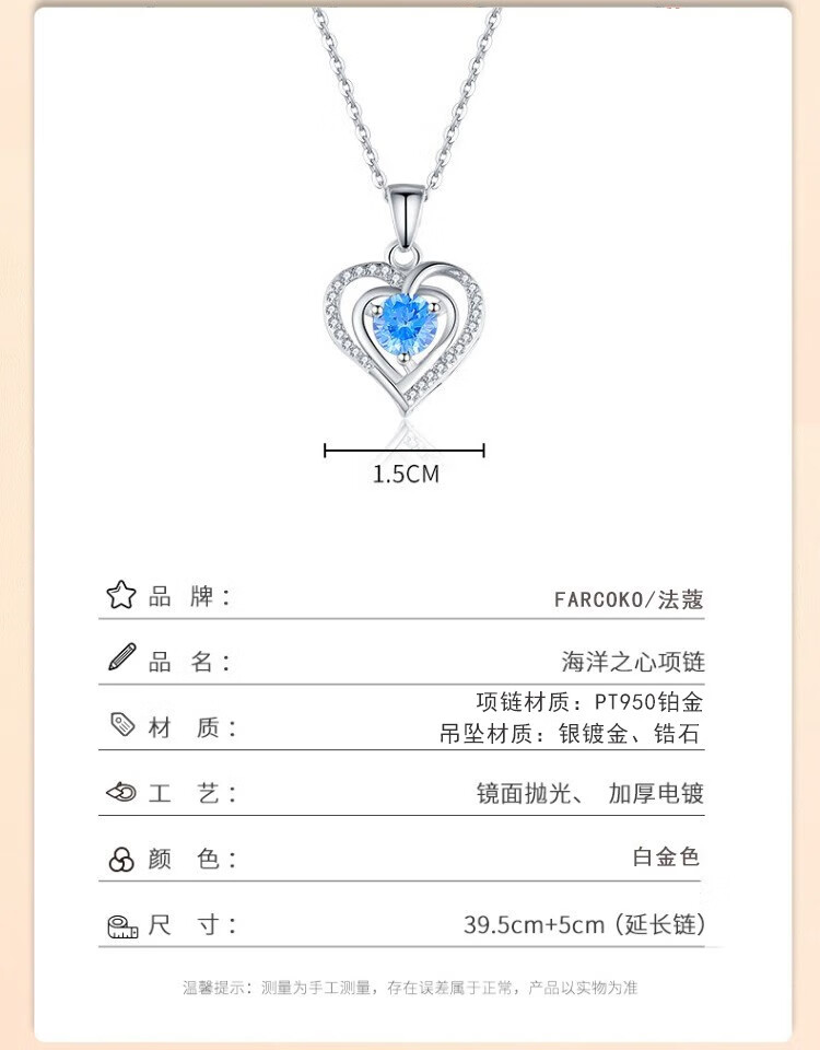 Farcoko platinum necklace for women PT950 clavicle chain platinum jewelry heart-warming birthday Chinese Valentine's Day gift for girlfriend Platinum necklace + sky blue rose gift box