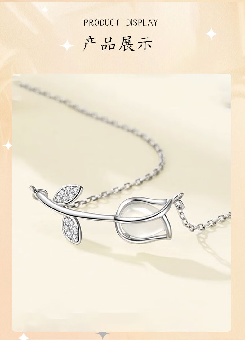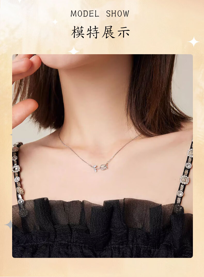 CHINA GOLD S925 Silver Tulip Necklace Women's Flower Pendant Light Luxury Niche Valentine's Day Birthday Gift for Girlfriend and Wife S925 Silver Tulip Necklace