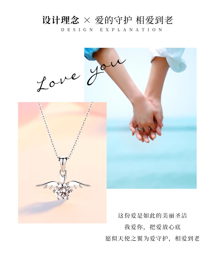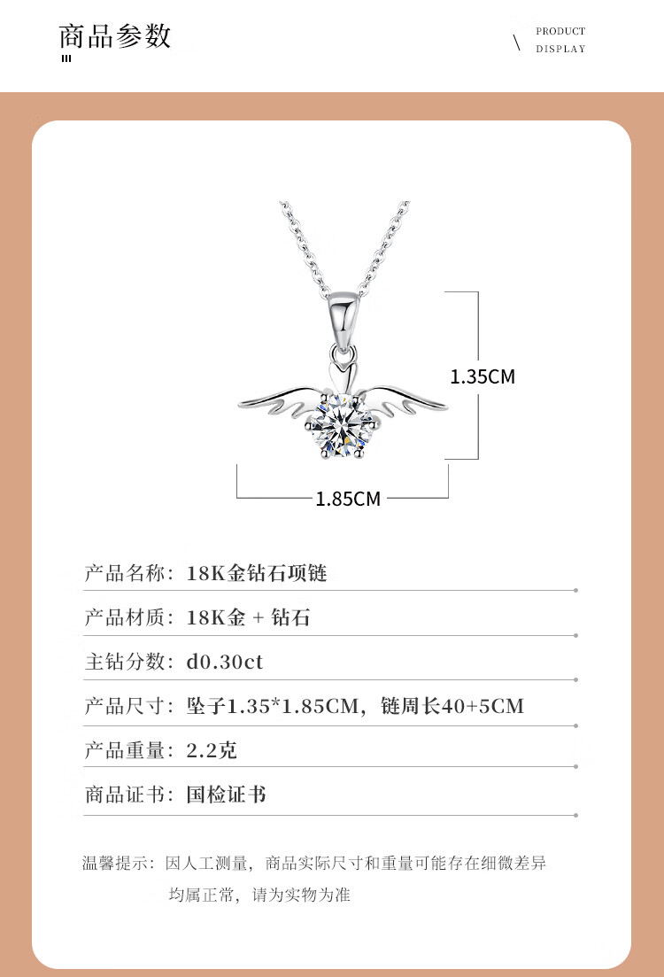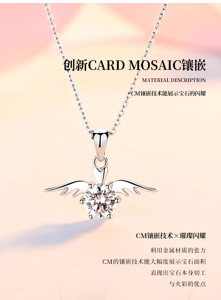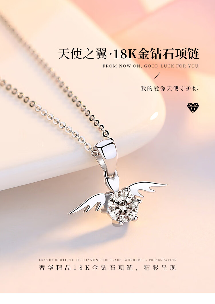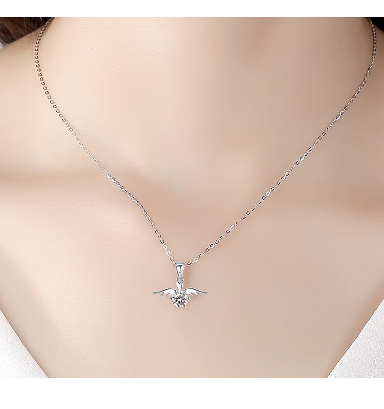 Jingzi PT950 platinum diamond necklace short angel wings clavicle chain temperament pendant as a Valentine's Day gift for your girlfriend 30 points diamond platinum inlay 30