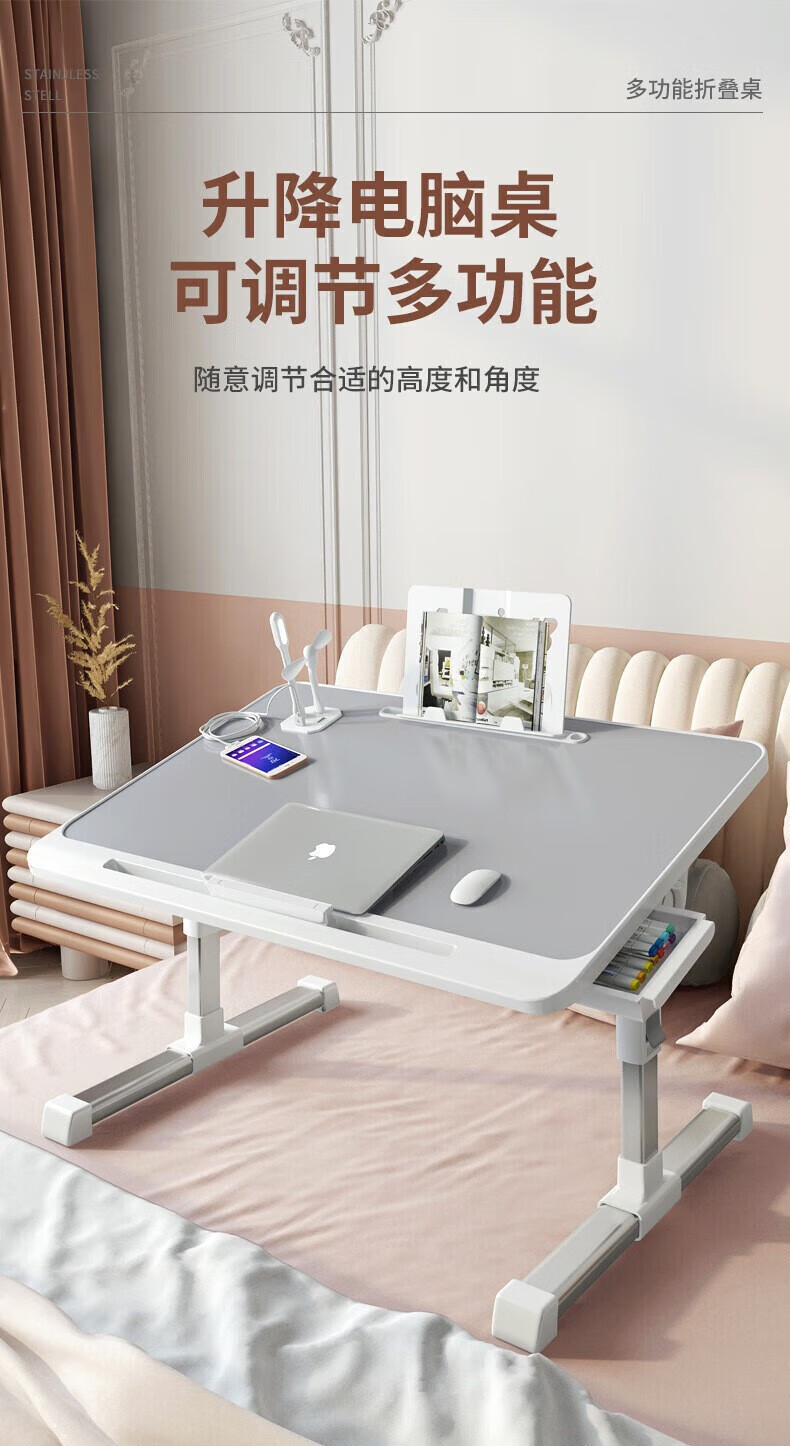 Quanpinwu lifting bed computer table desk foldable study table lazy dormitory bay window table slate gray regular style + card slot + anti-slip tray