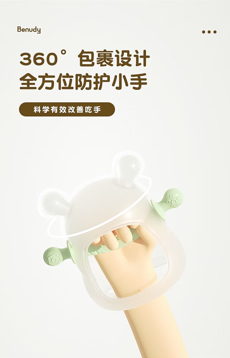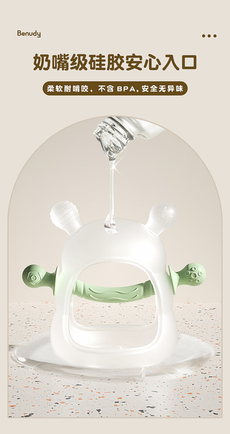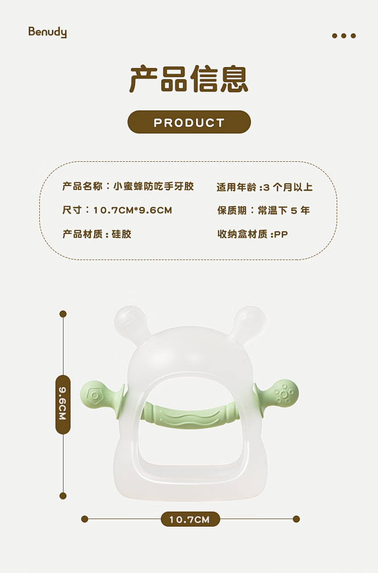 Binodi Little Bee Baby Teether Glove Style Bite Finger Soothing Teether Baby Silicone Toy Anti-eat Hand Morning Green + Storage Box