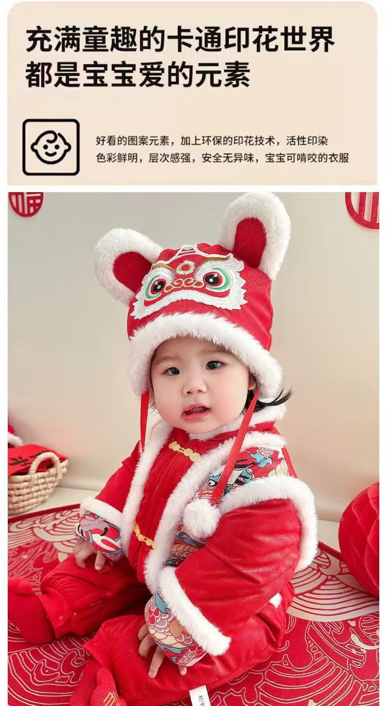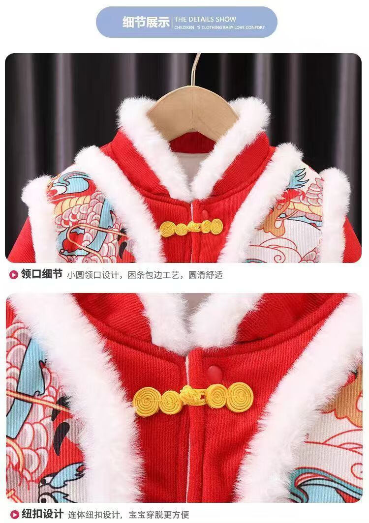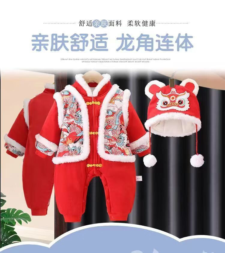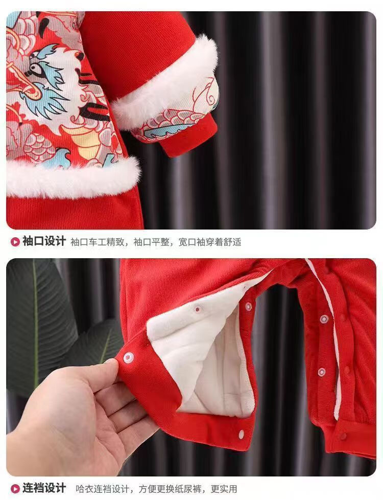 Acacia Tong baby jumpsuit autumn and winter baby New Year's greetings thickened velvet festive one-year-old full-month clothes newborn clothes Xiaolongbao pure cotton thickened and warm 0-15 73 size recommended 3-7 months 15Jin Jin is equal to 0.5 kg.