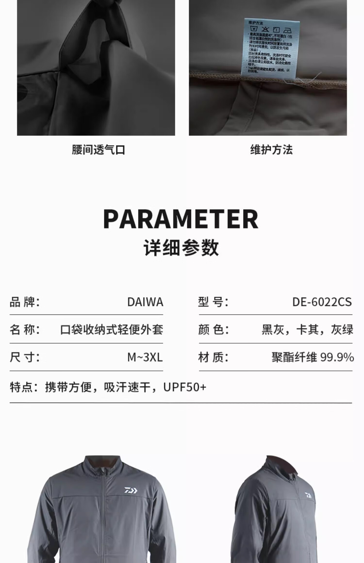 Dayiwa sun protection clothing, fishing clothes, quick-drying lightweight jacket, long-sleeved sun protection clothing, outdoor casual clothing, lightweight Khaki L