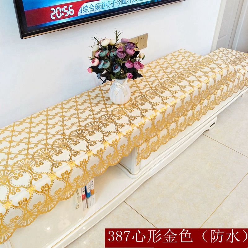 Bo Linglu PVC TV cabinet tablecloth rectangular living room coffee table tablecloth 2023 new waterproof and oil-proof double-layer universal 340 hot stamping (waterproof) 49*241cm (TV cabinet)