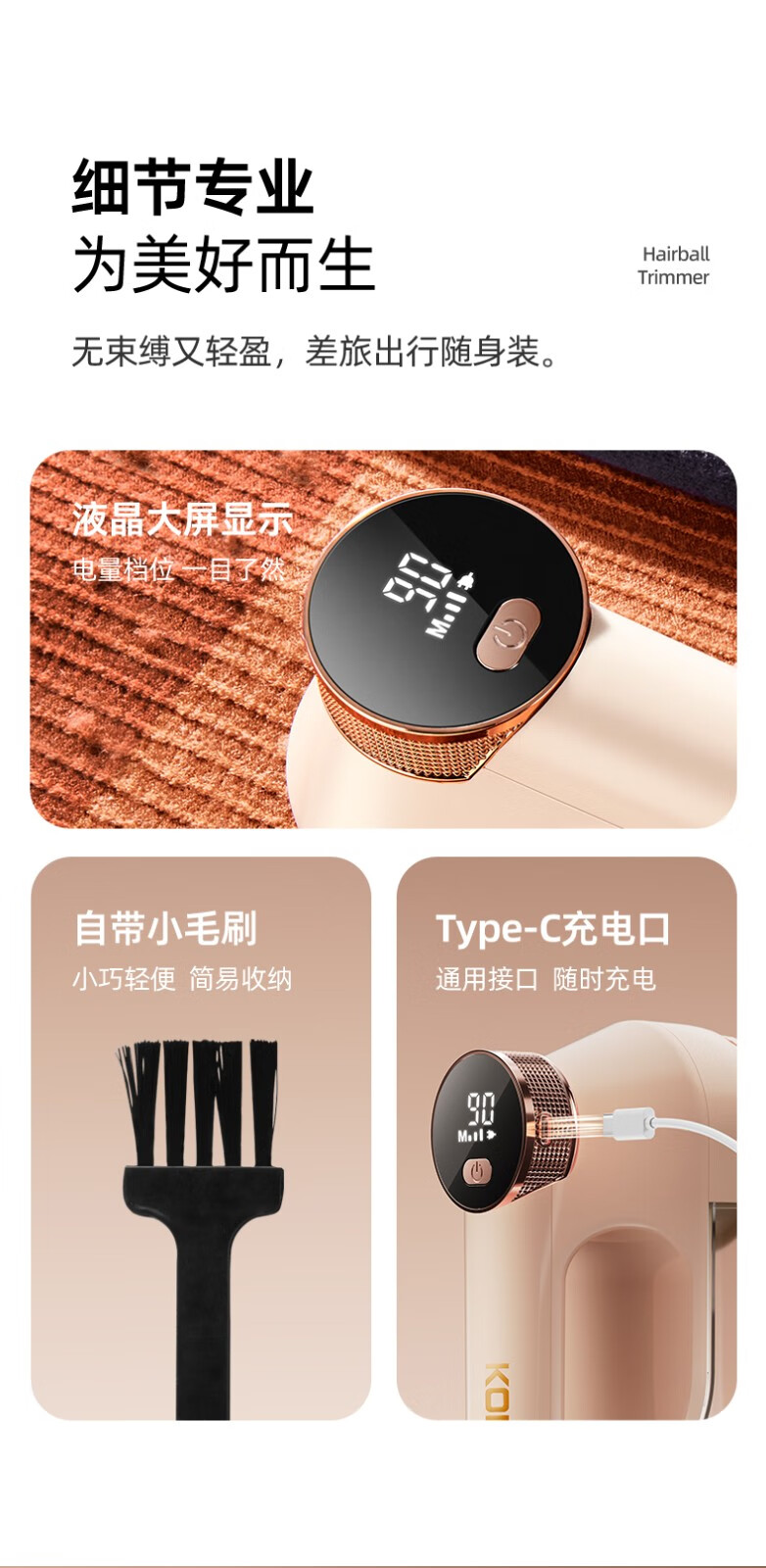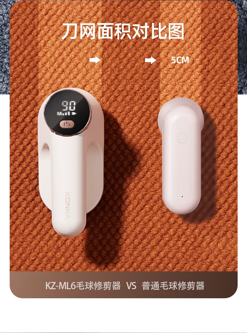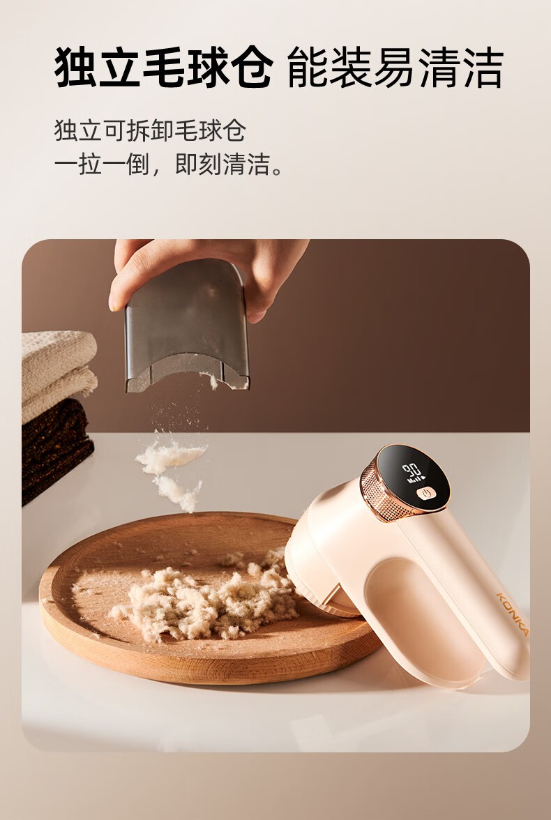 KONKA hair ball trimmer, ball remover, high-power household shaver, rechargeable large-capacity dust collection, three-speed adjustment, equipped with original replacement spare blade head, digital display large-capacity automatic dust collection + spare blade head*3