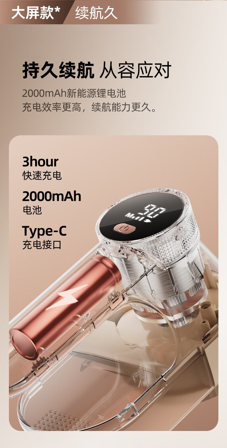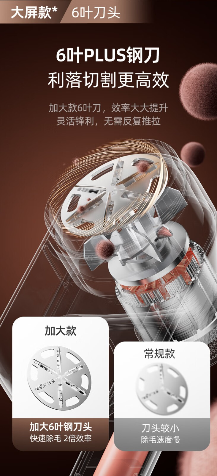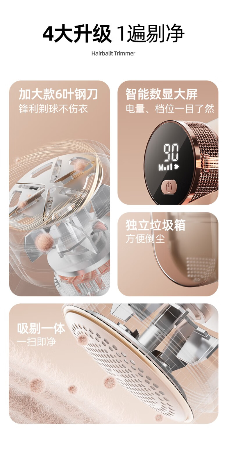 KONKA hair ball trimmer, ball remover, high-power household shaver, rechargeable large-capacity dust collection, three-speed adjustment, equipped with original replacement spare blade head, digital display large-capacity automatic dust collection + spare blade head*3