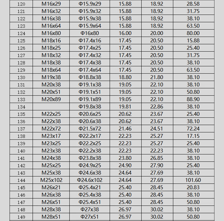 76.2 81.3 86.4 91.5 96.5 101.6 106.7 112 117 122 127 132 137 142