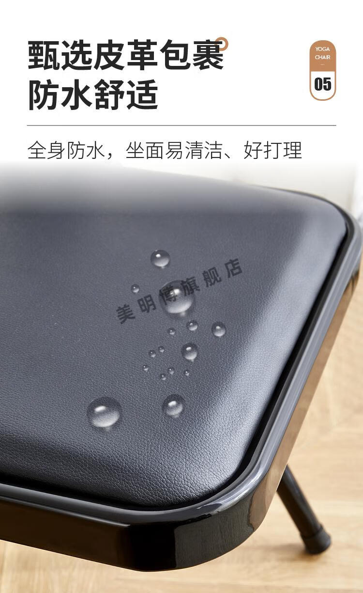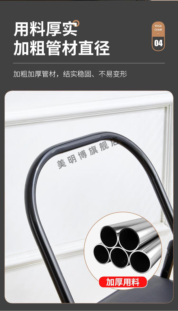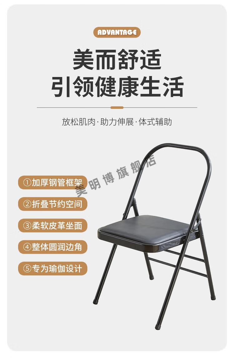 Meimbo yoga chair Yoga Iyengar assistive Pilates chair PU surface special folding yoga stool rear double beam black cloth surface with waist support 1.5 tube wall special c