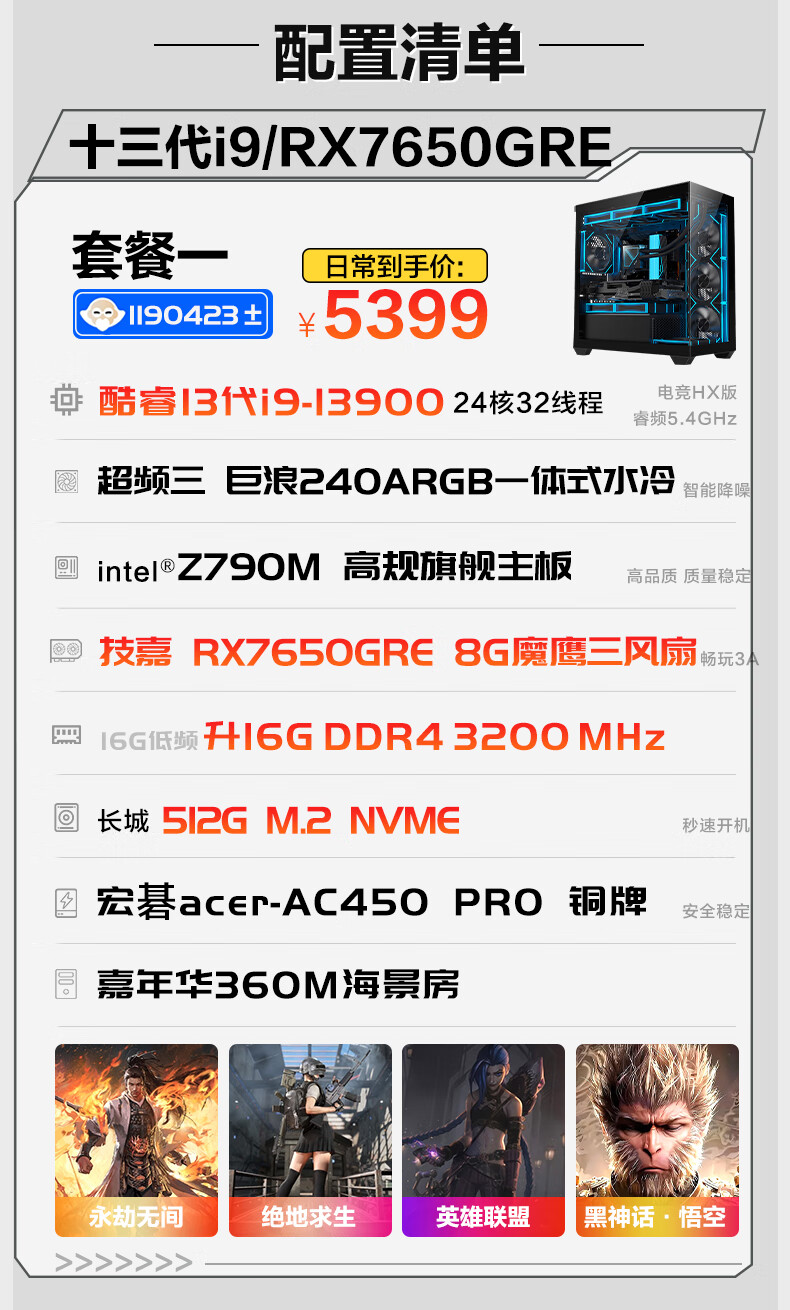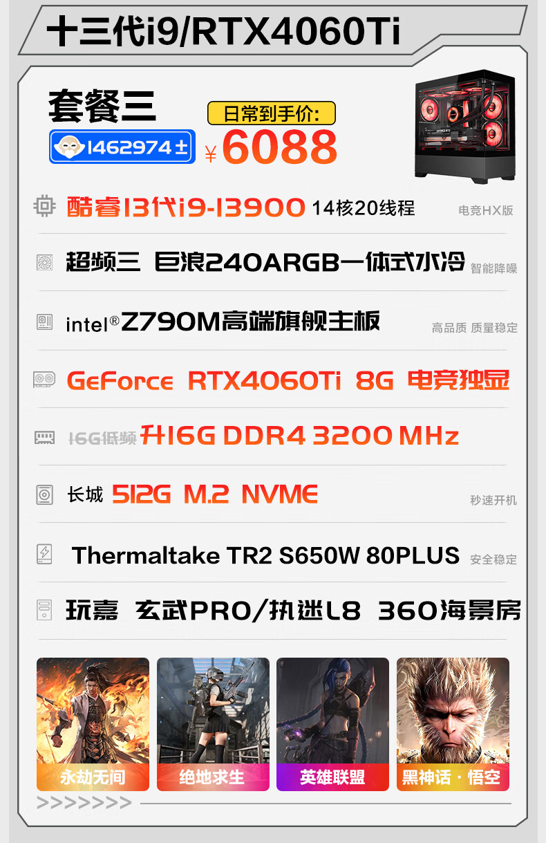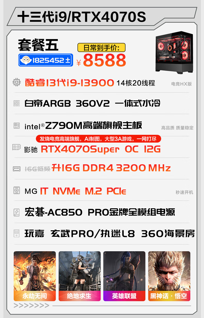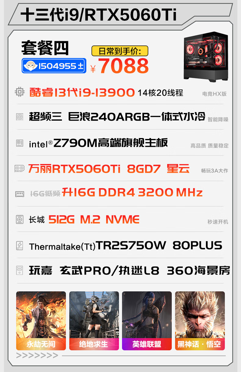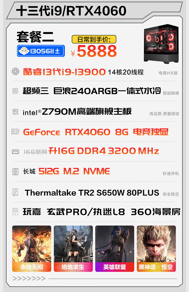 Shuoyang 13th Generation Core i9/RTX4070S/RX7700XT/16G Memory/Chicken Game E-Sports Live Water-cooled Desktop DIY Assembly Computer Host Assembly Host Configuration Four 13th Generation i9丨RTX5060Ti Standard Configuration