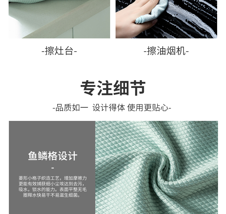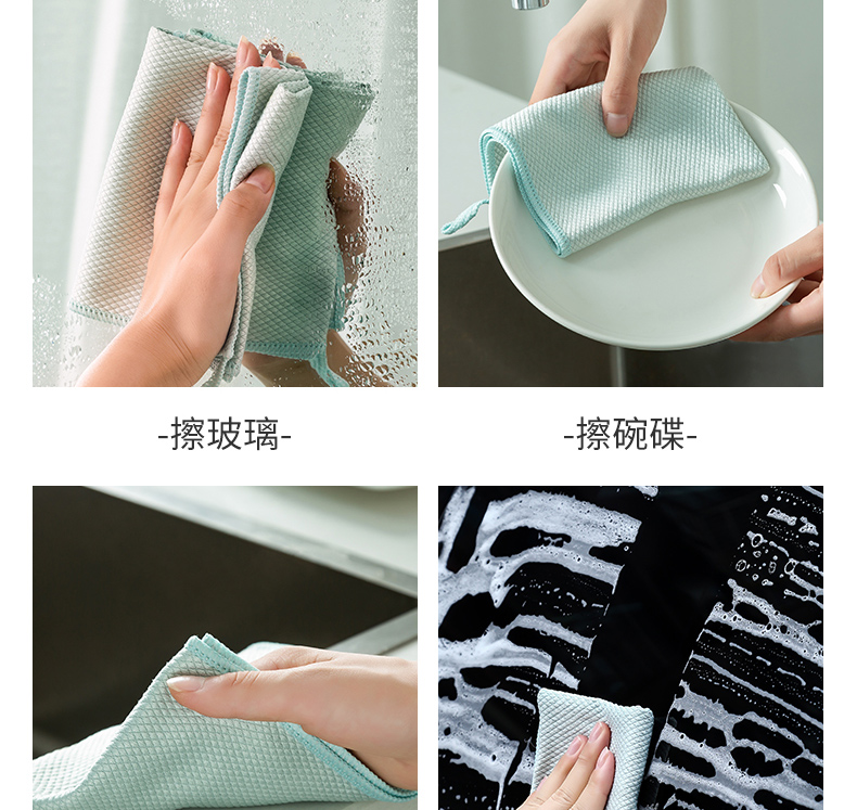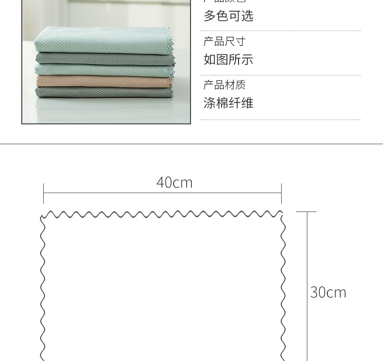 Jiayoumeng special fish scale rag for cleaning glass, no trace, housekeeping cleaning cloth, oil removal, traceless water absorption, not easy to shed lint towel, 3 pack, double-sided 30*60 color remarks