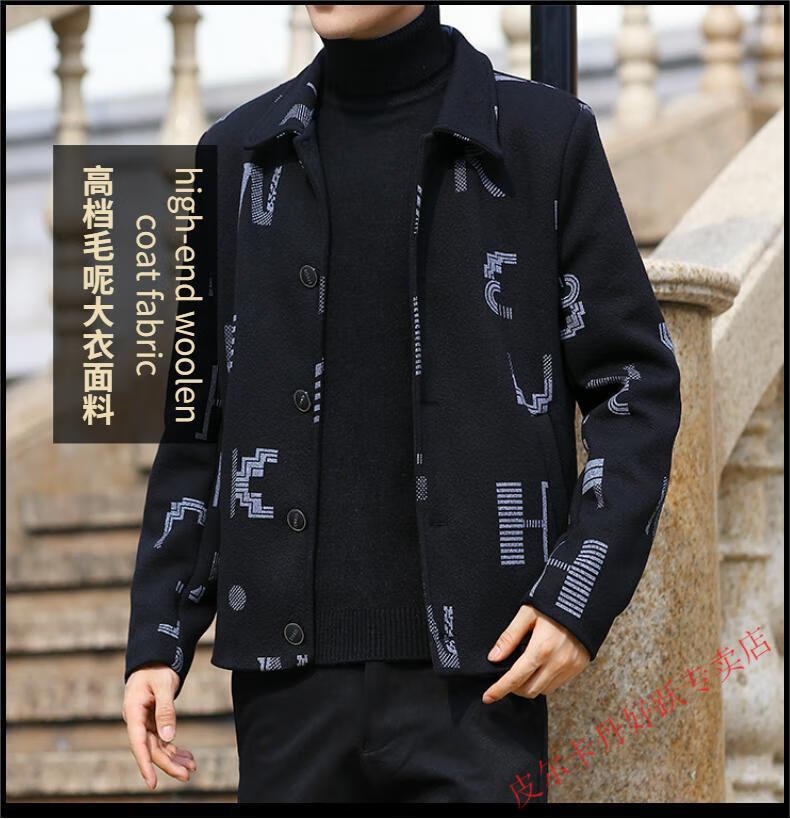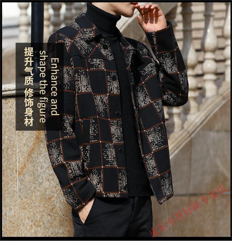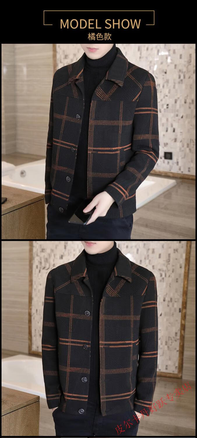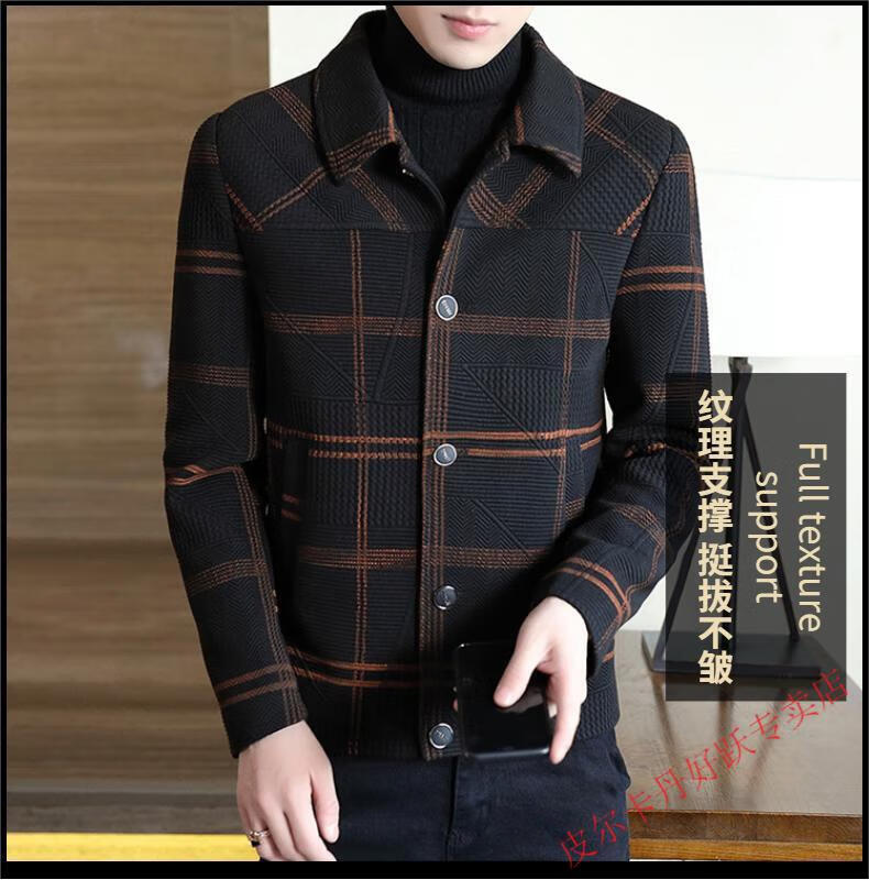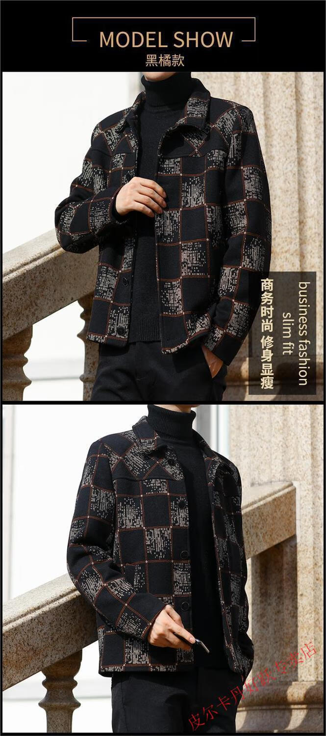 Pierre Cardin men's high-end short lapel jacket spring and autumn casual business color-blocked executive plaid buttoned top black regular XL 120-135Jin Jin equals 0.5 kg