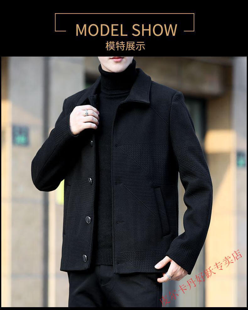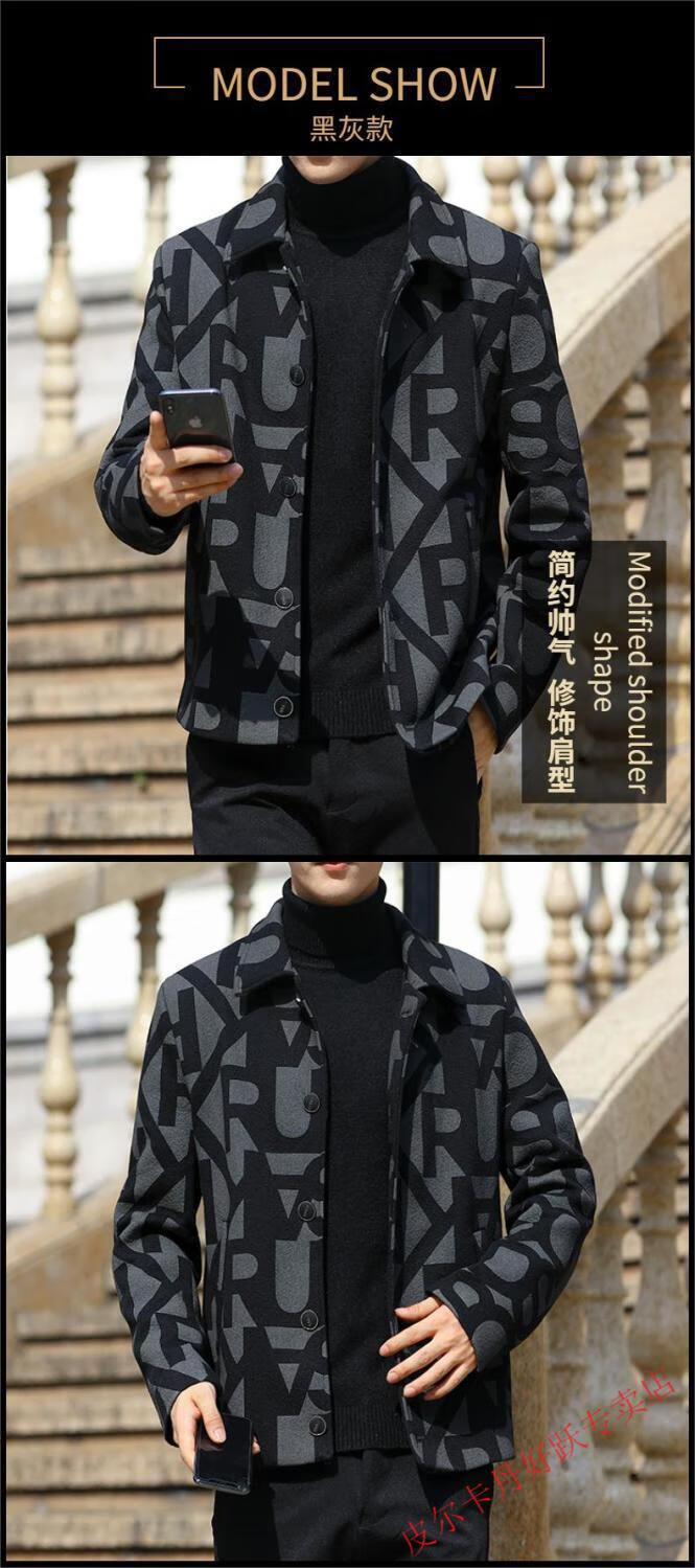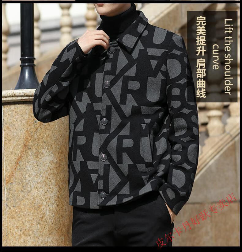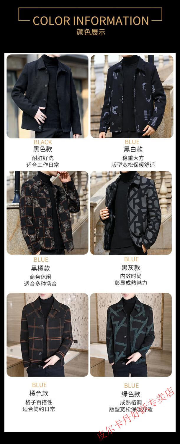 Pierre Cardin men's high-end short lapel jacket spring and autumn casual business color-blocked executive plaid buttoned top black regular XL 120-135Jin Jin equals 0.5 kg