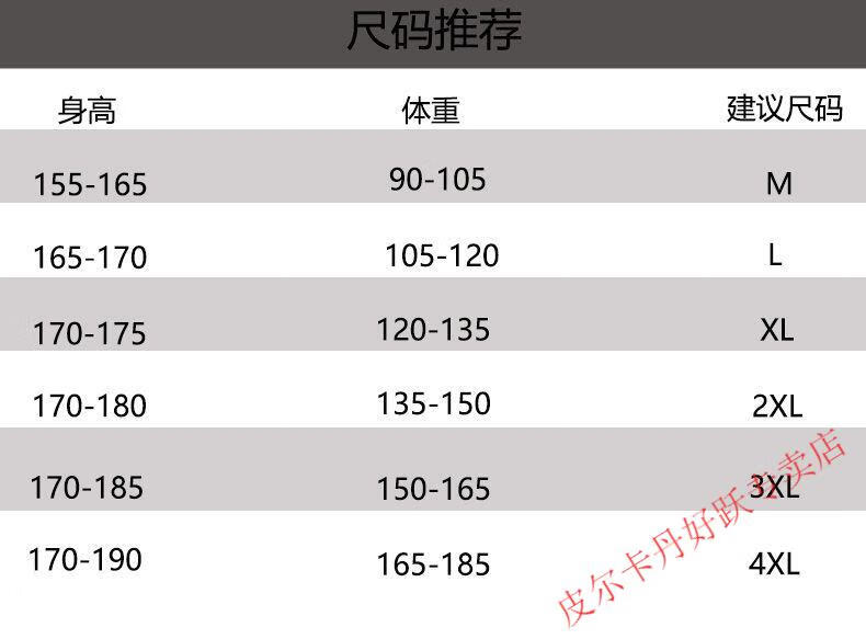 China (cm) 165 / 88-90 170 / 96-98 175 / 108-110 180 / 118-122 185 / 126-130