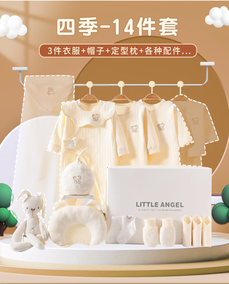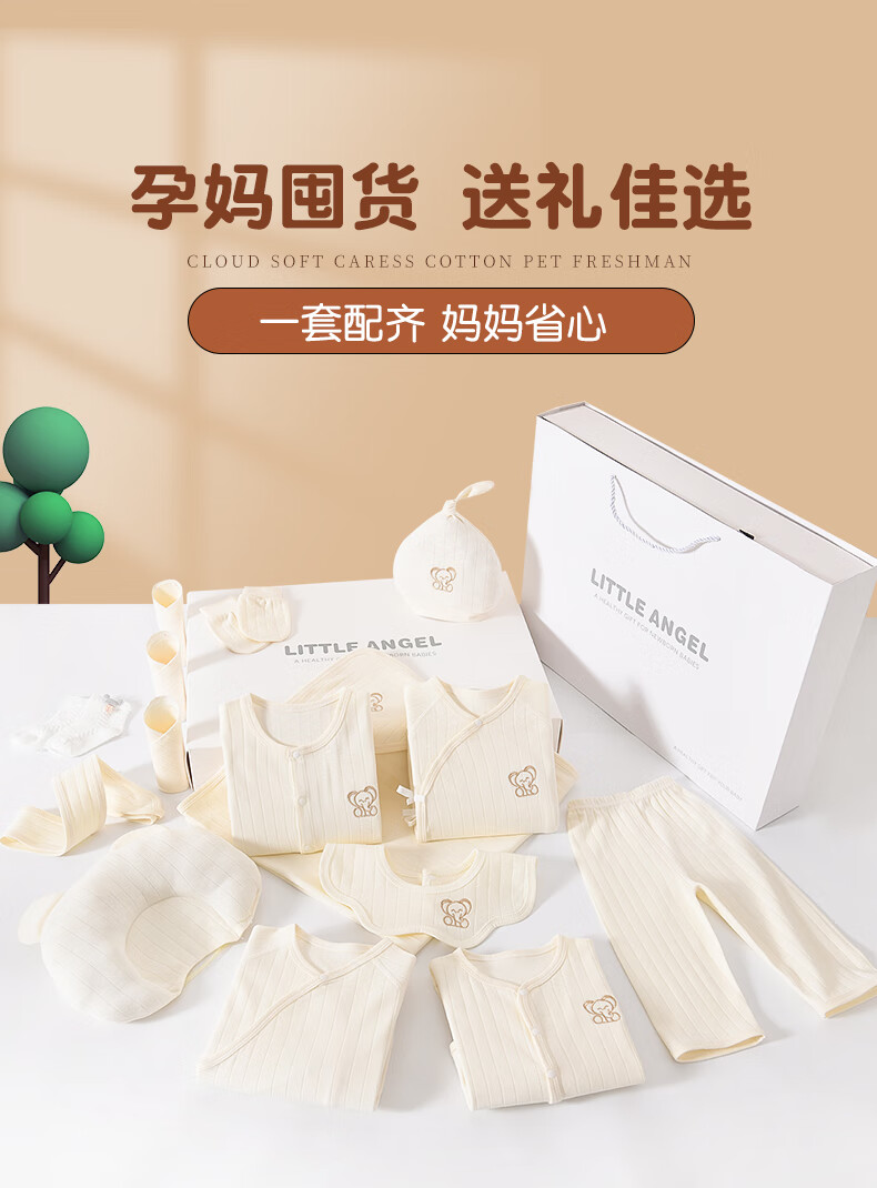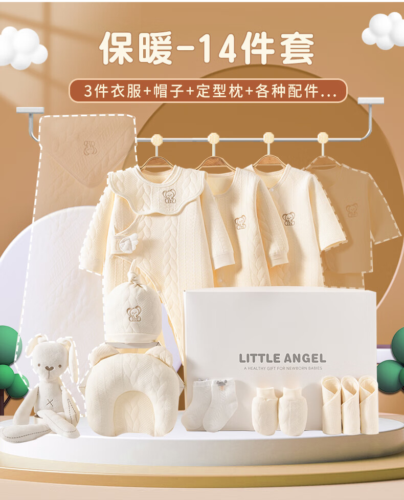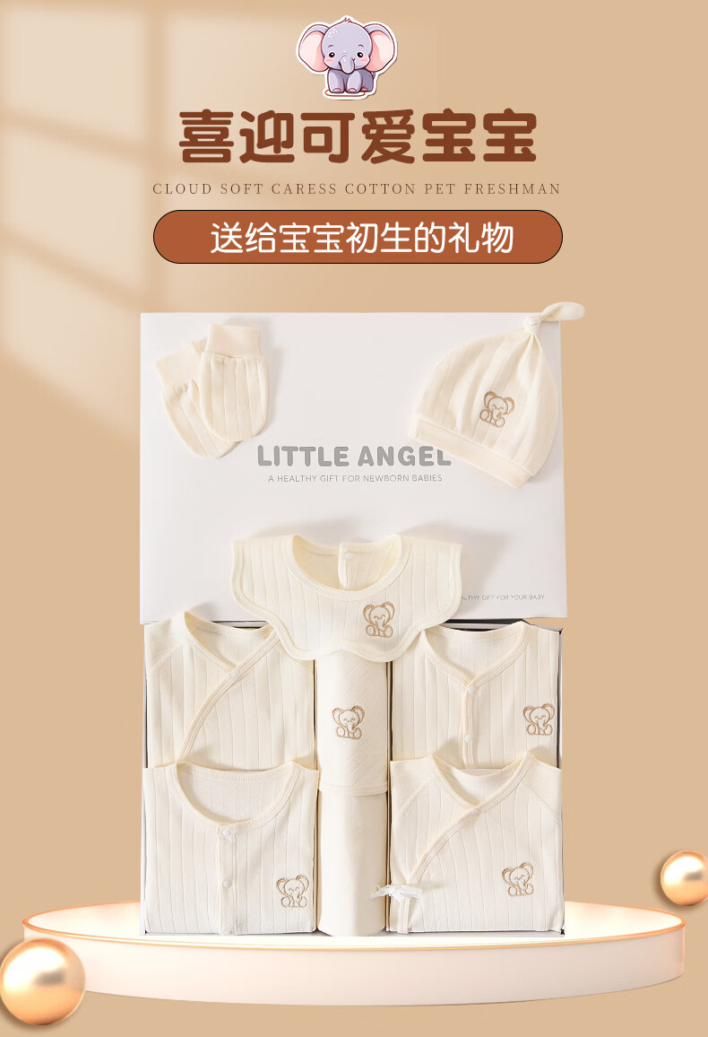 JOYNCLEON Baby Clothes Newborn Gift Box Autumn and Winter Suit Pure Cotton Newborn Full Moon Baby Meet Gift Collection Embroidered Baby Elephant 14 Pieces Warm Gift Box Newborn (0-6 Months)